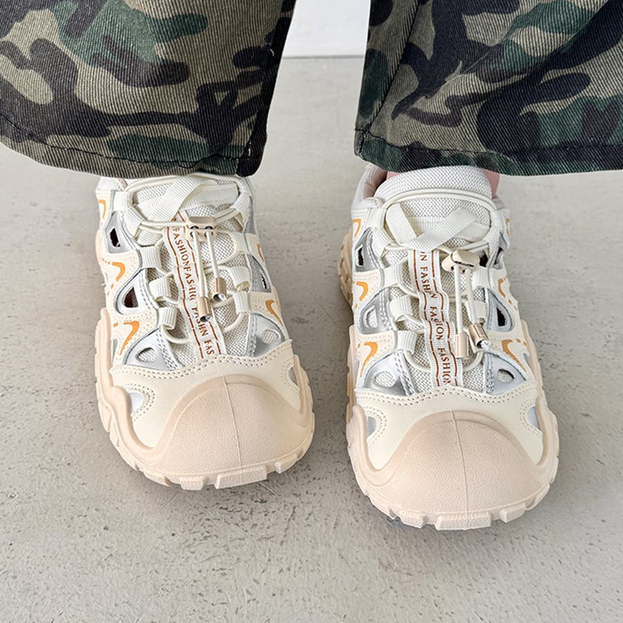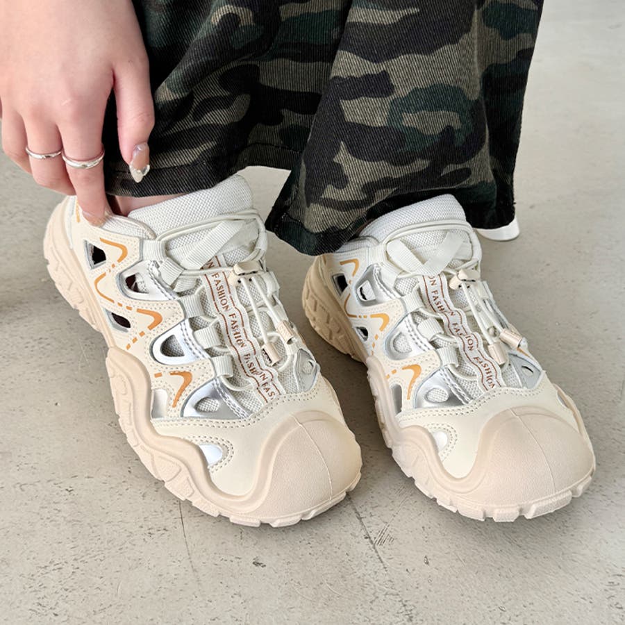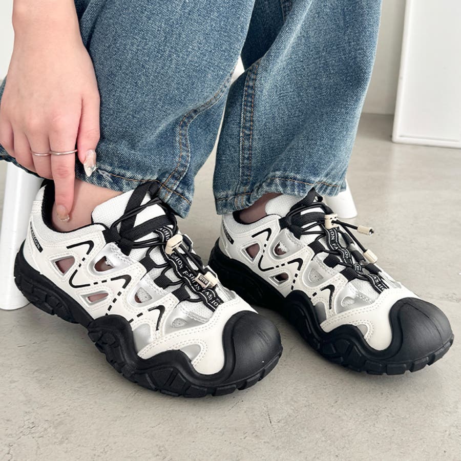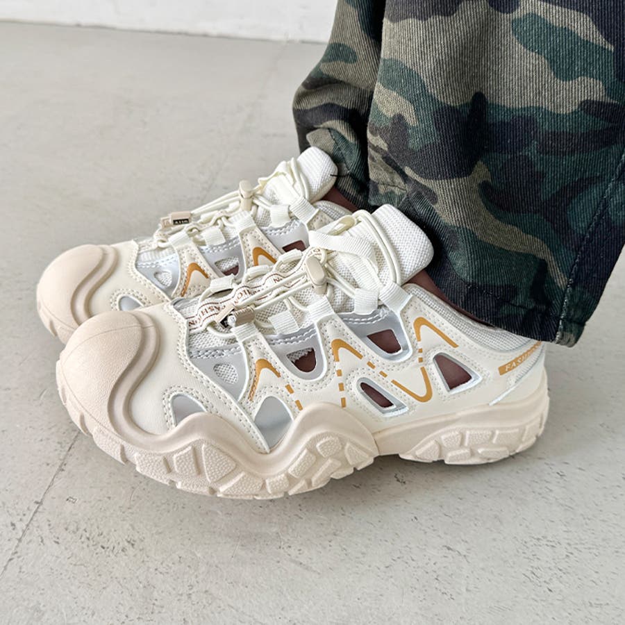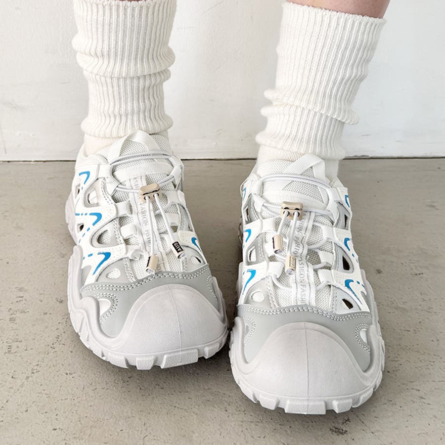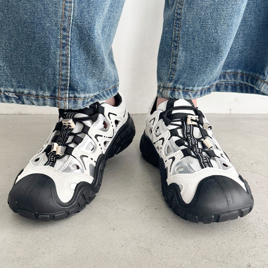 ・サイドのウェーブラインとアッパーのドローコードがスポーティーなスニーカーサンダル