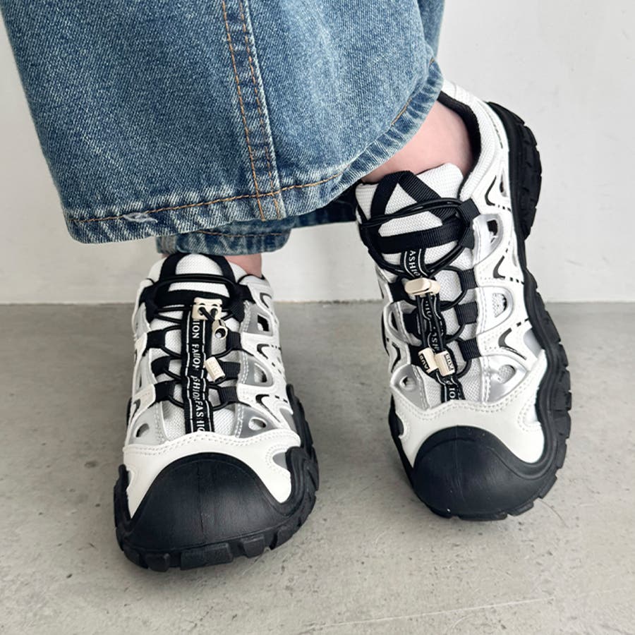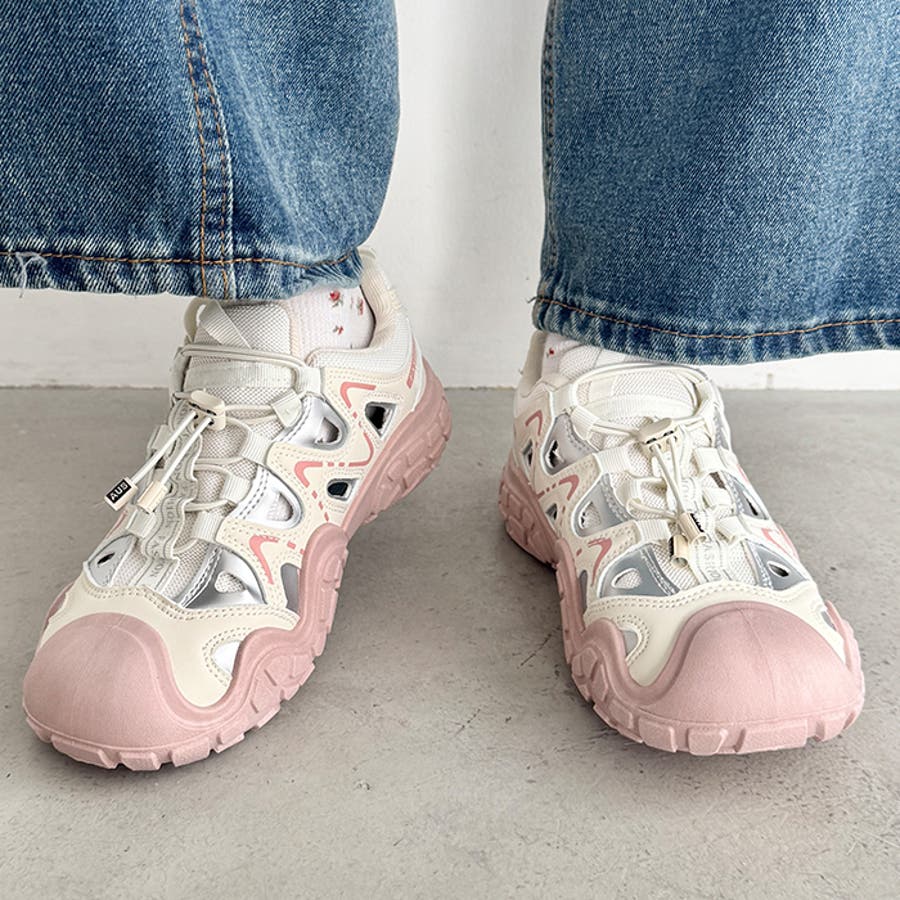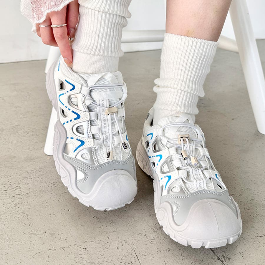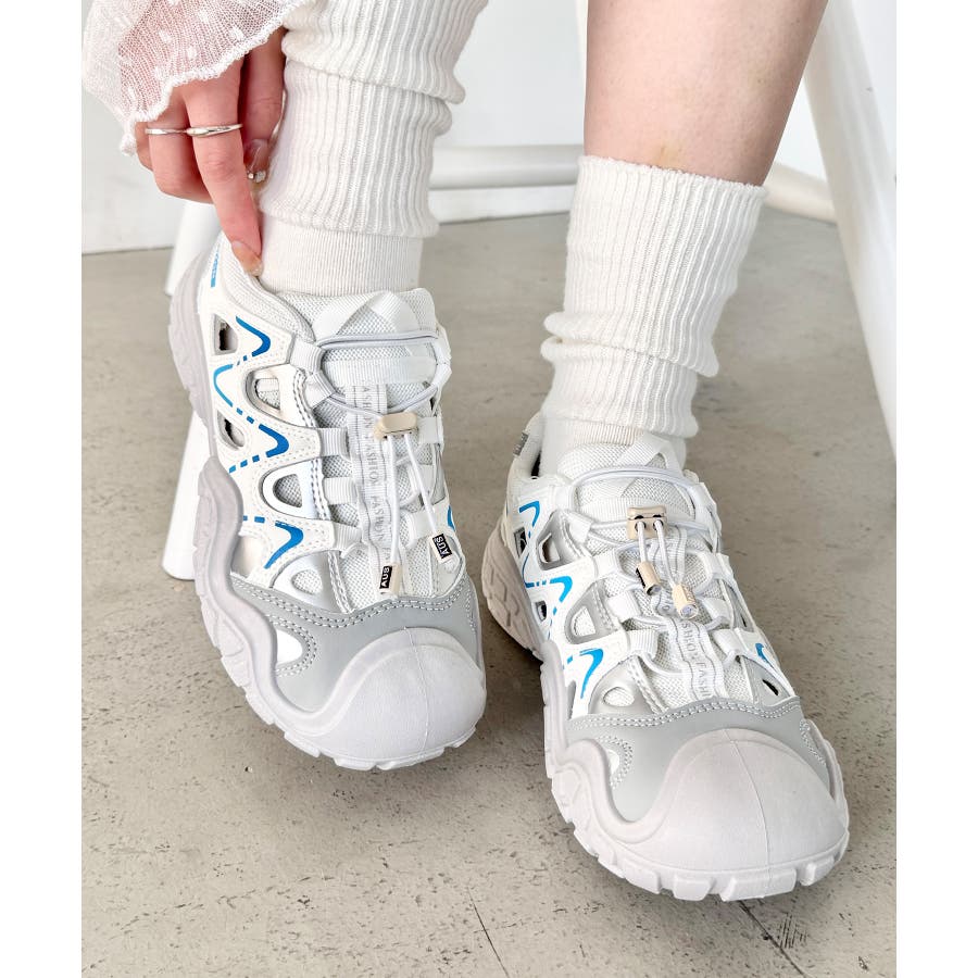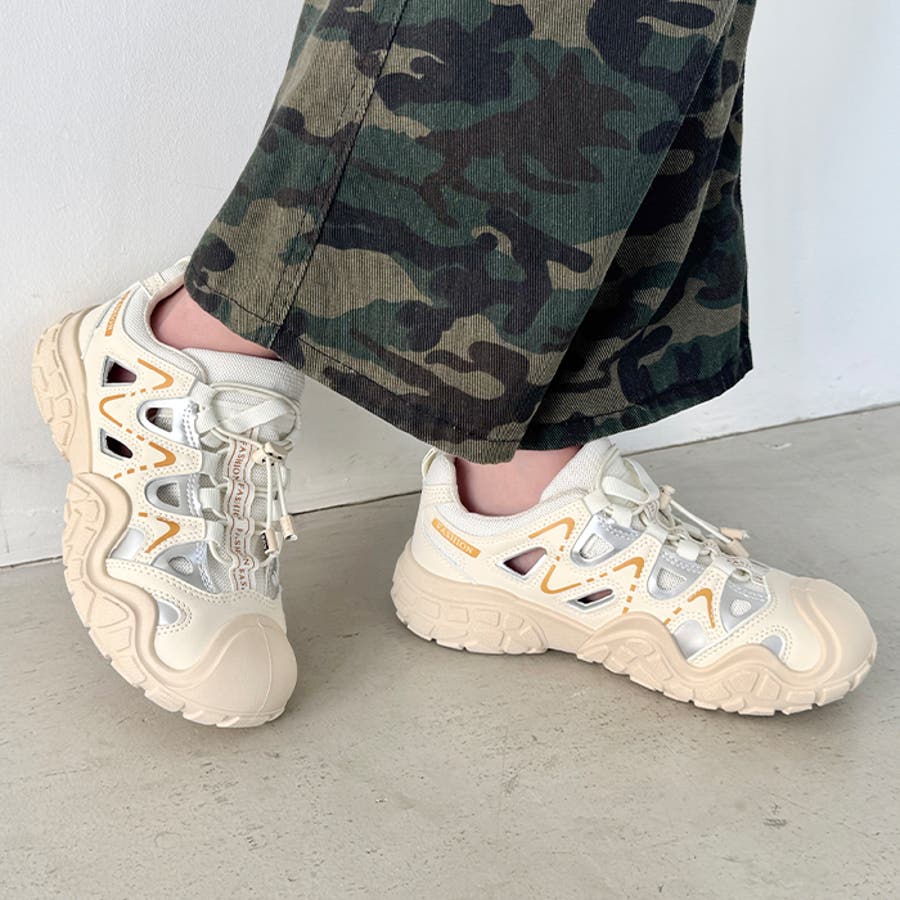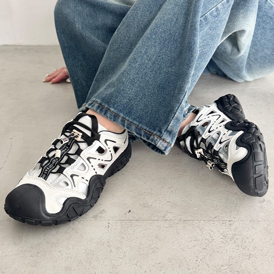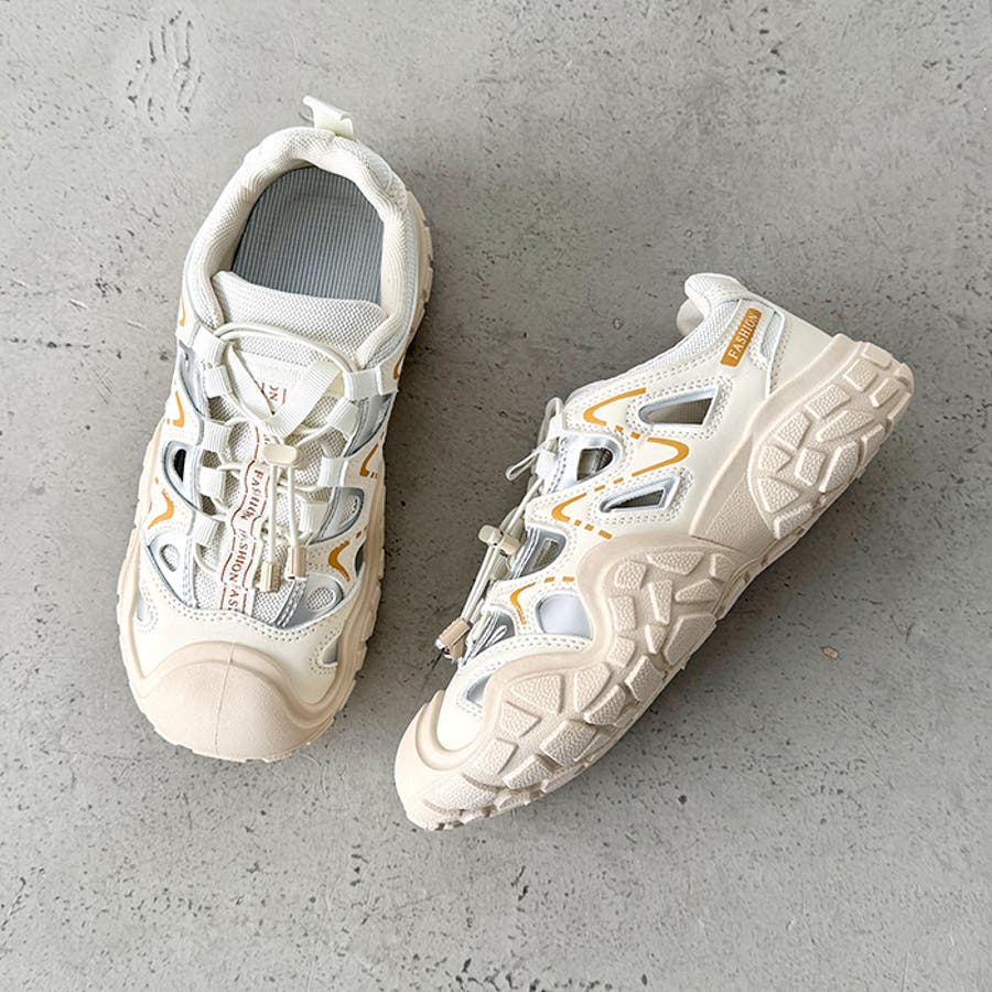 ・サイドのウェーブラインとアッパーのドローコードがスポーティーなスニーカーサンダル