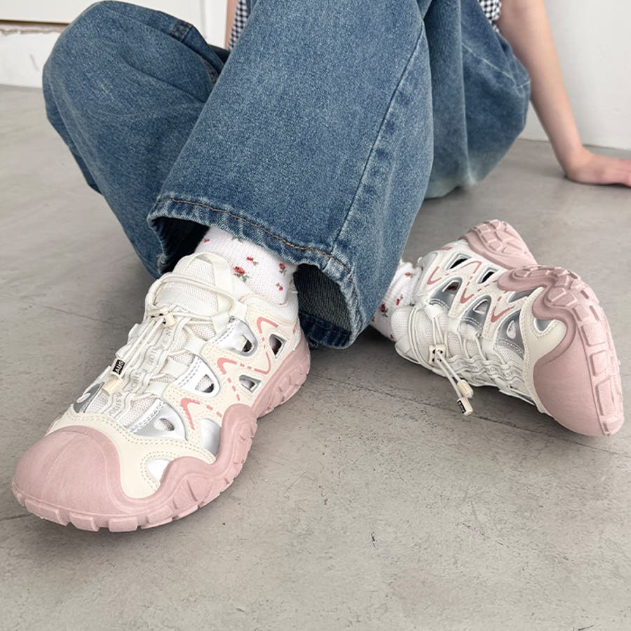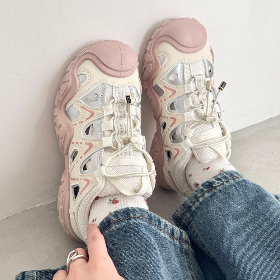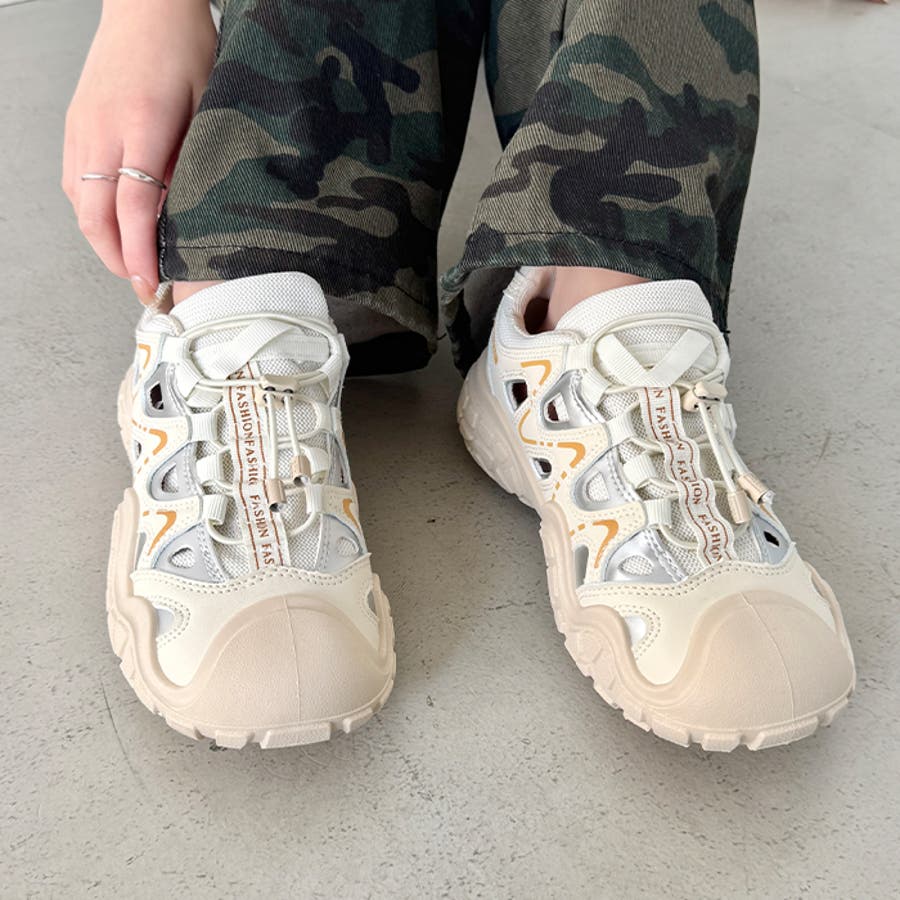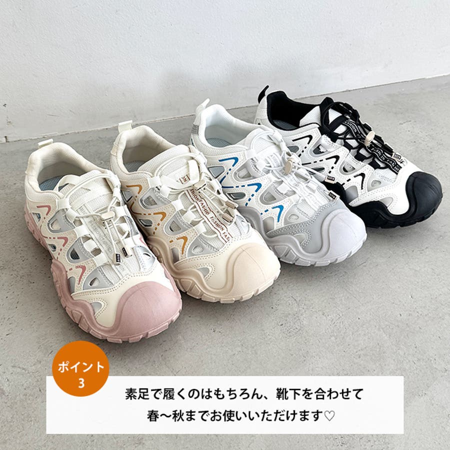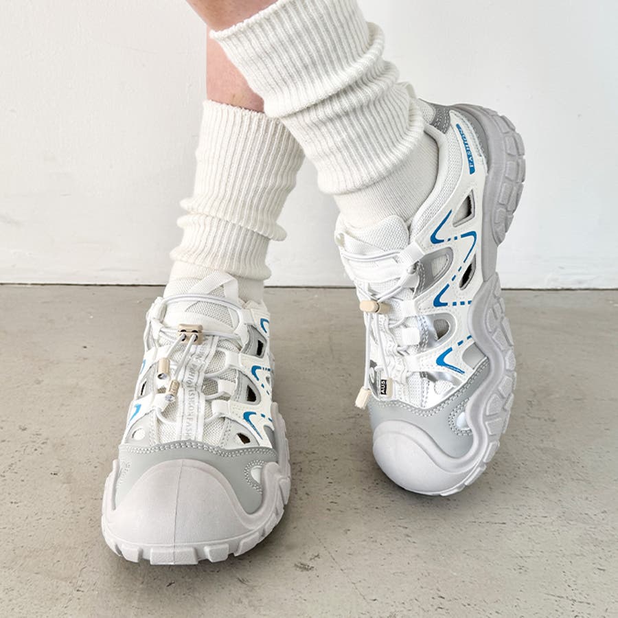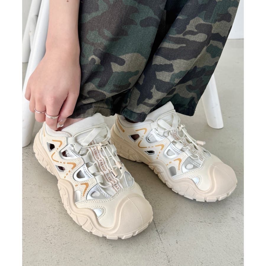 ・サイドのウェーブラインとアッパーのドローコードがスポーティーなスニーカーサンダル