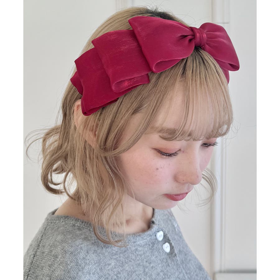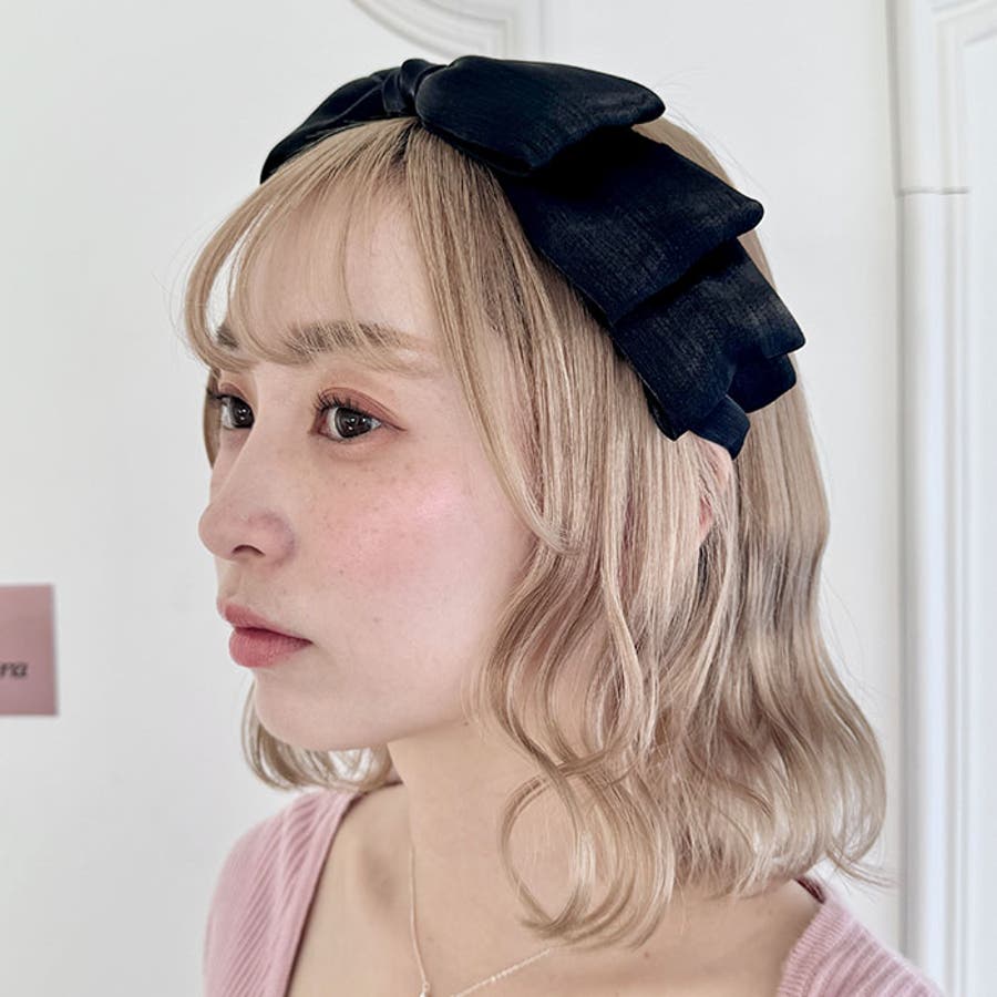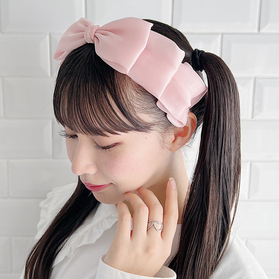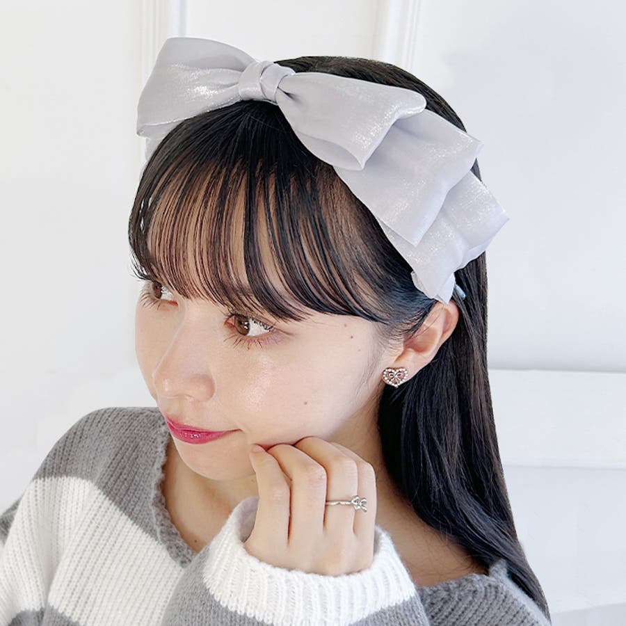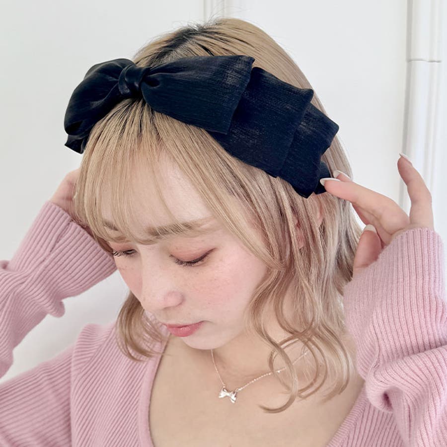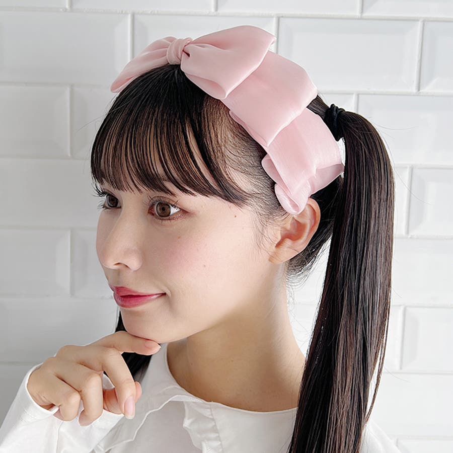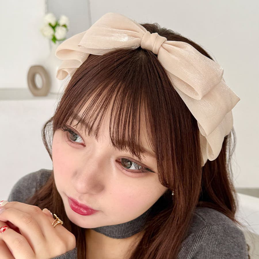 顔まわりを華やかにする大きめリボンカチューシャ。