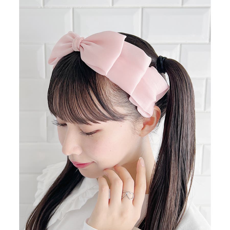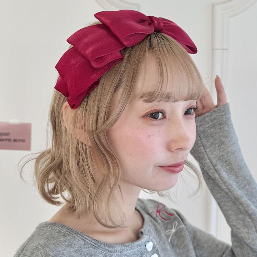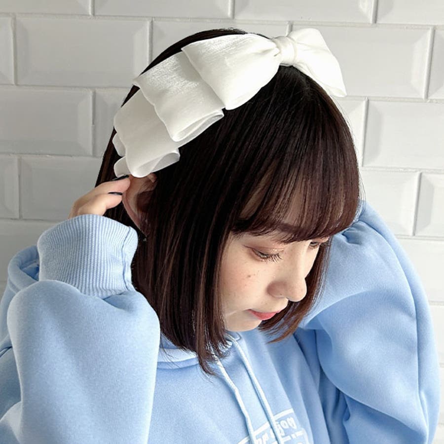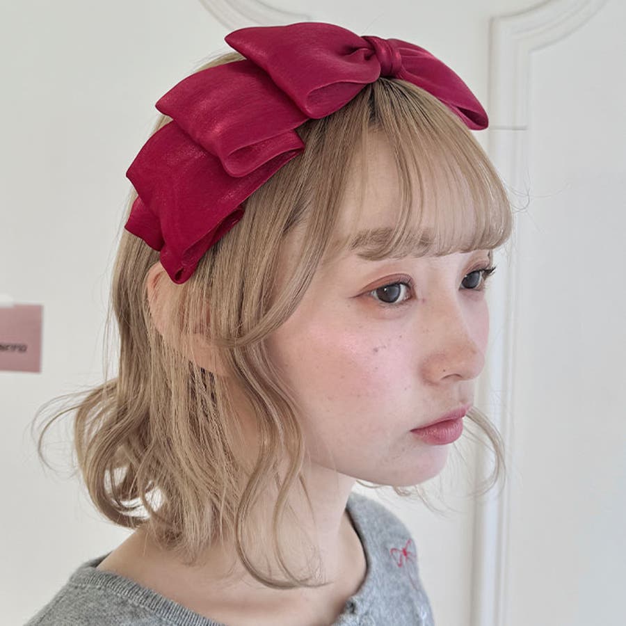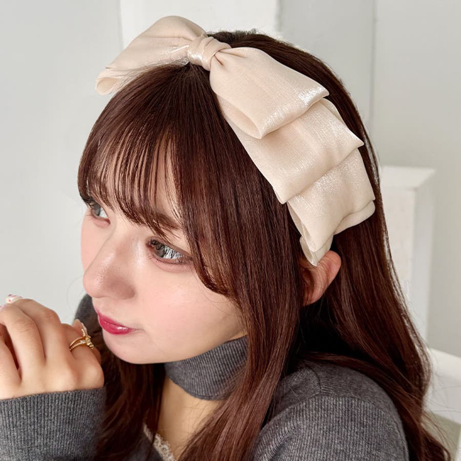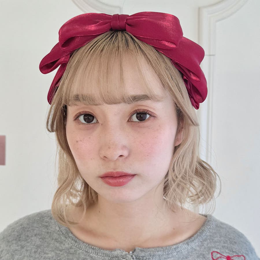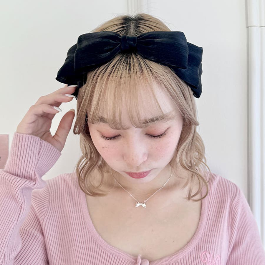 顔まわりを華やかにする大きめリボンカチューシャ。