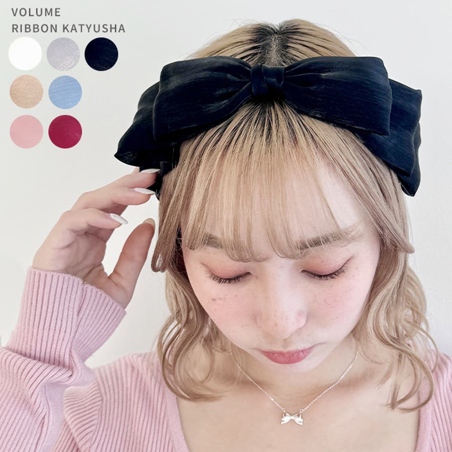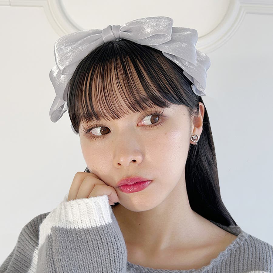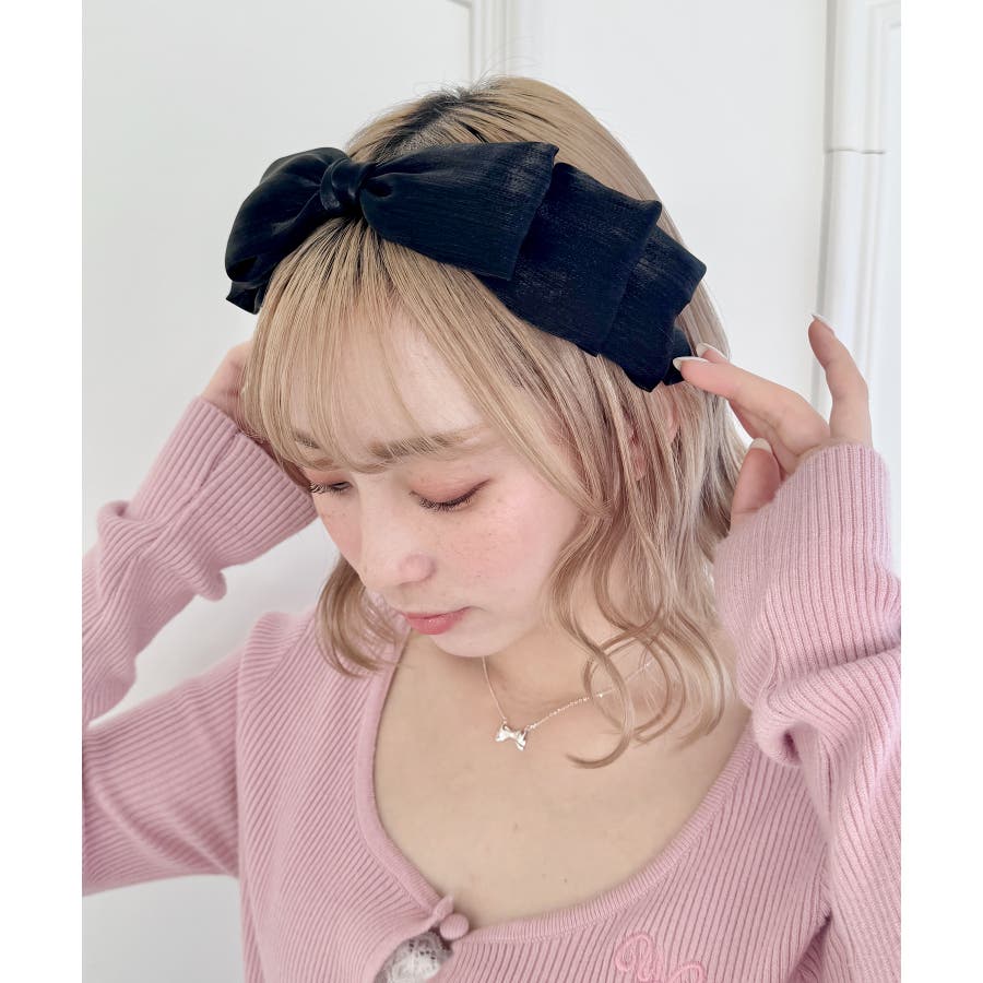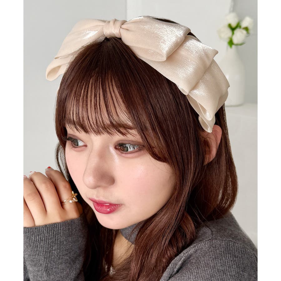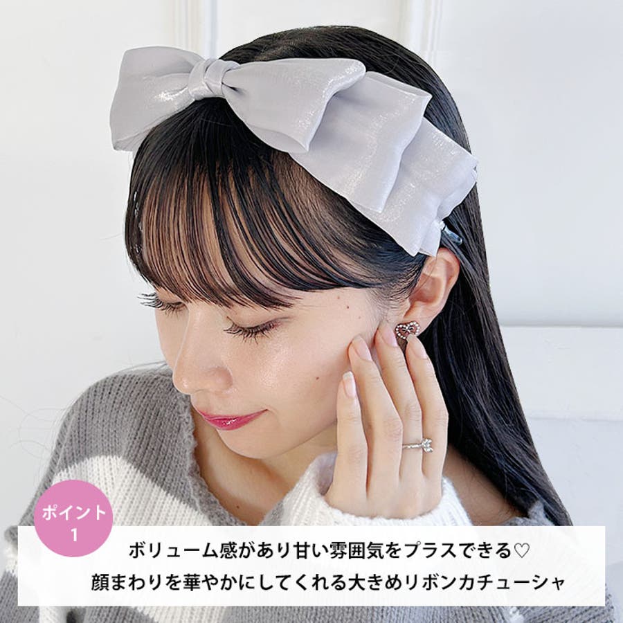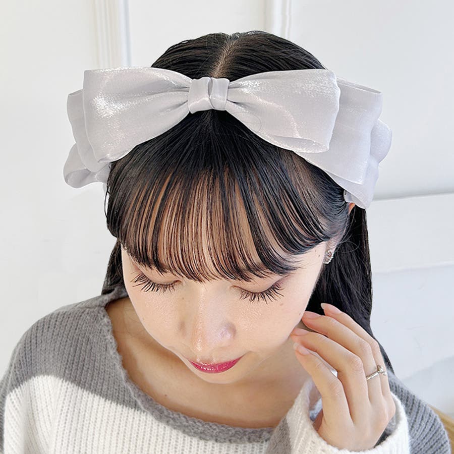 顔まわりを華やかにする大きめリボンカチューシャ。
