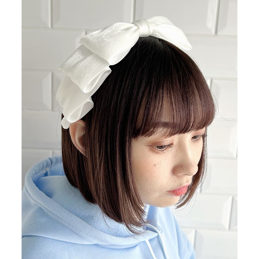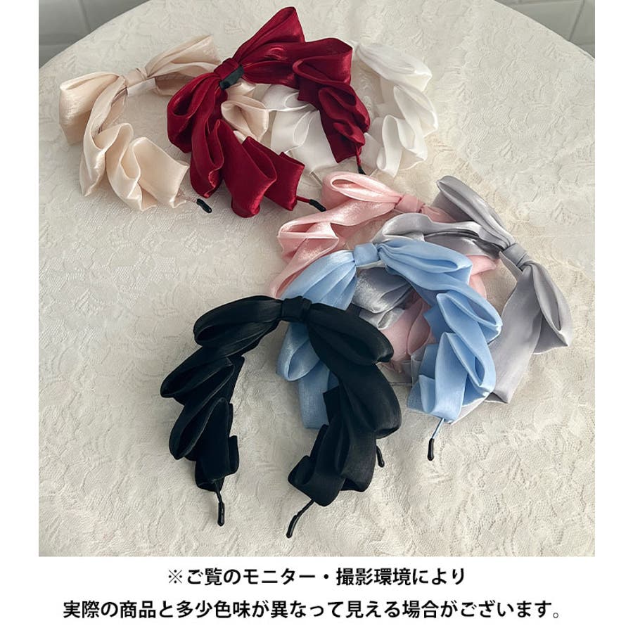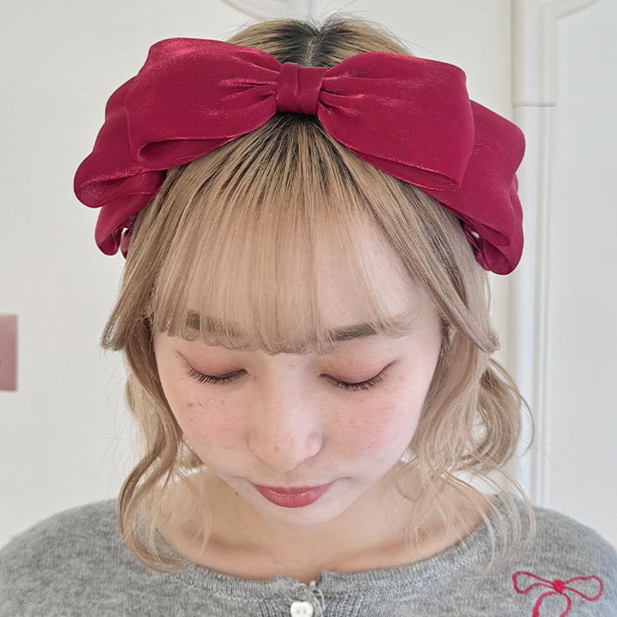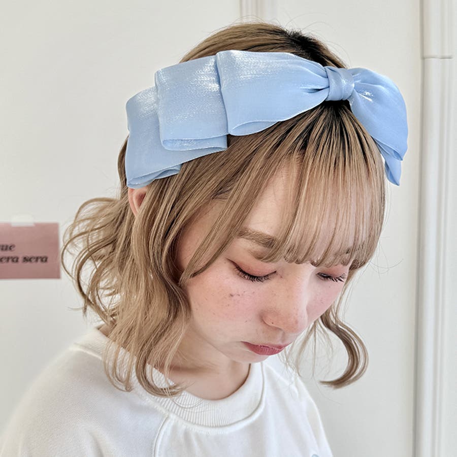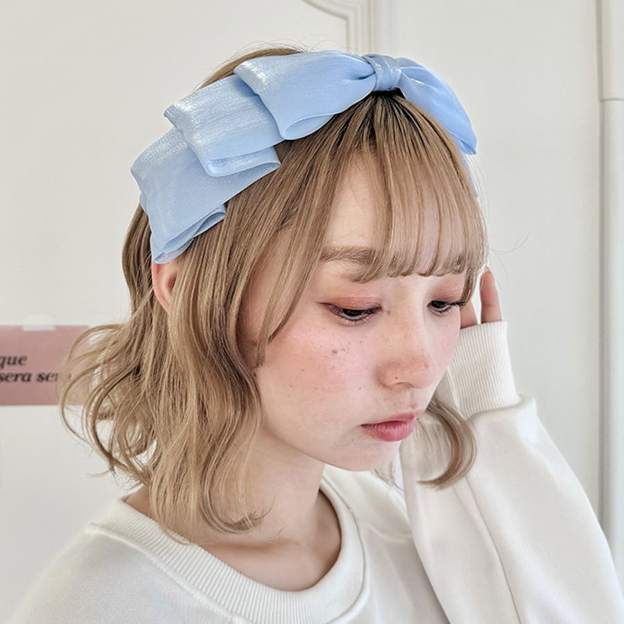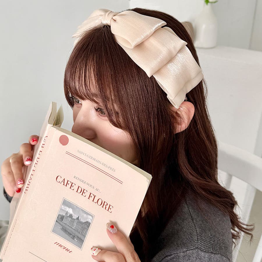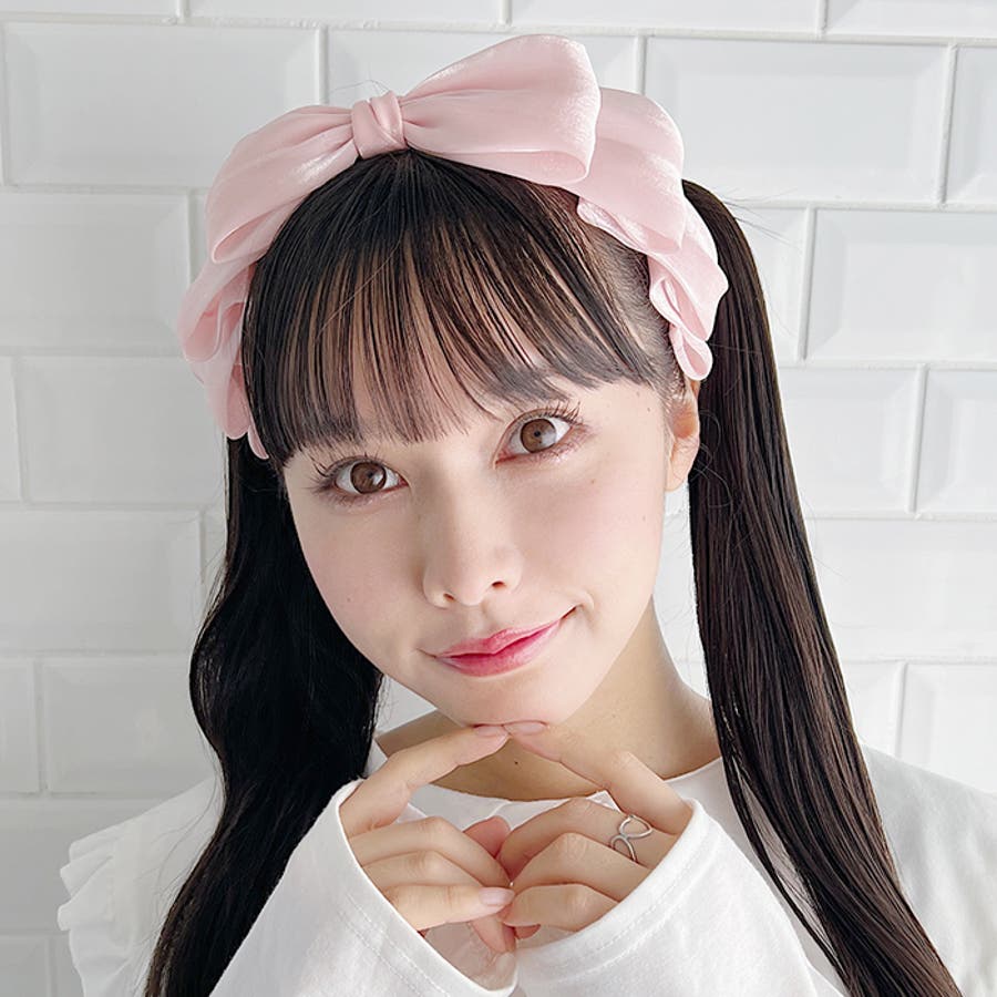 顔まわりを華やかにする大きめリボンカチューシャ。