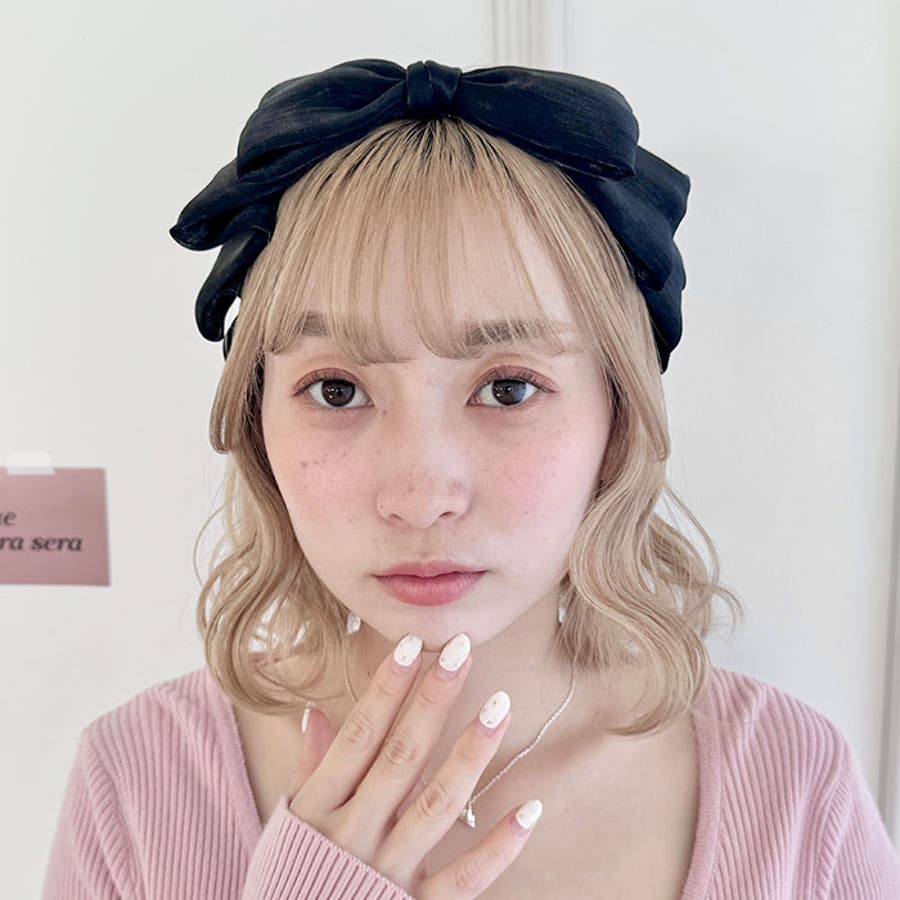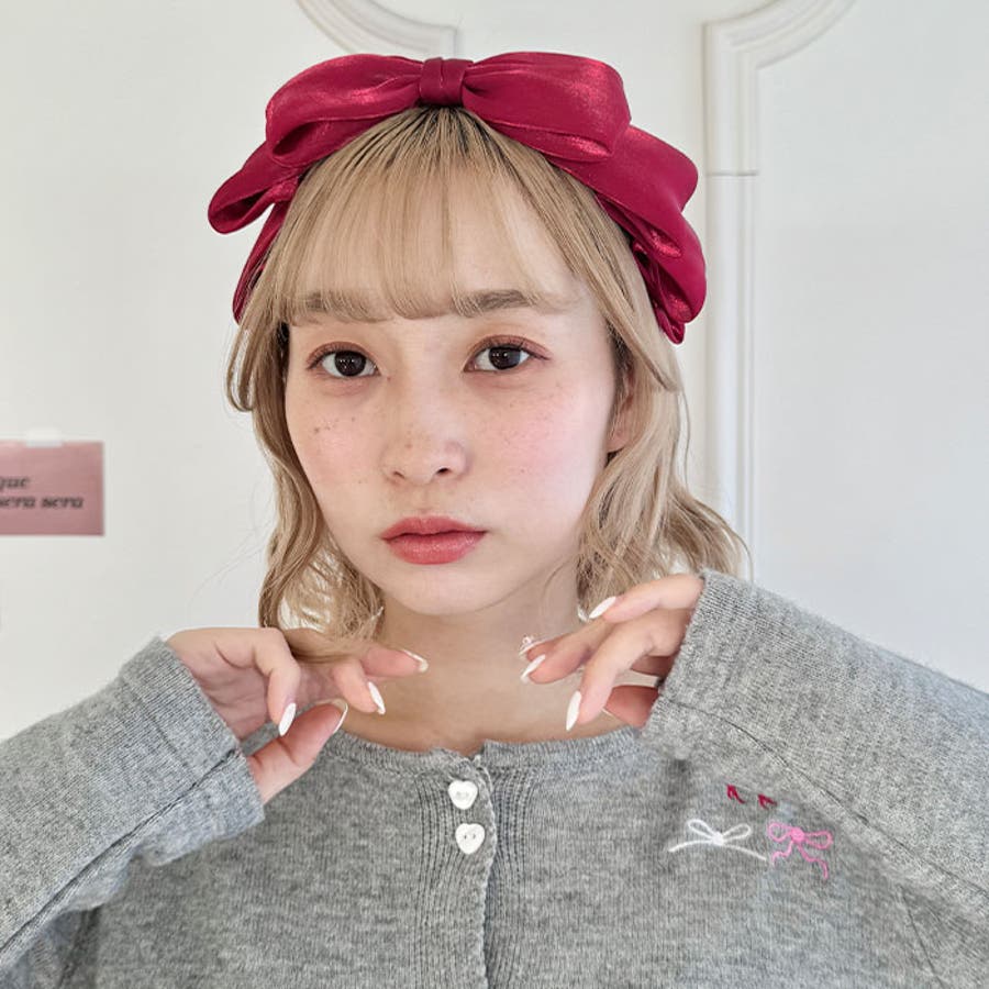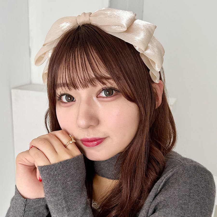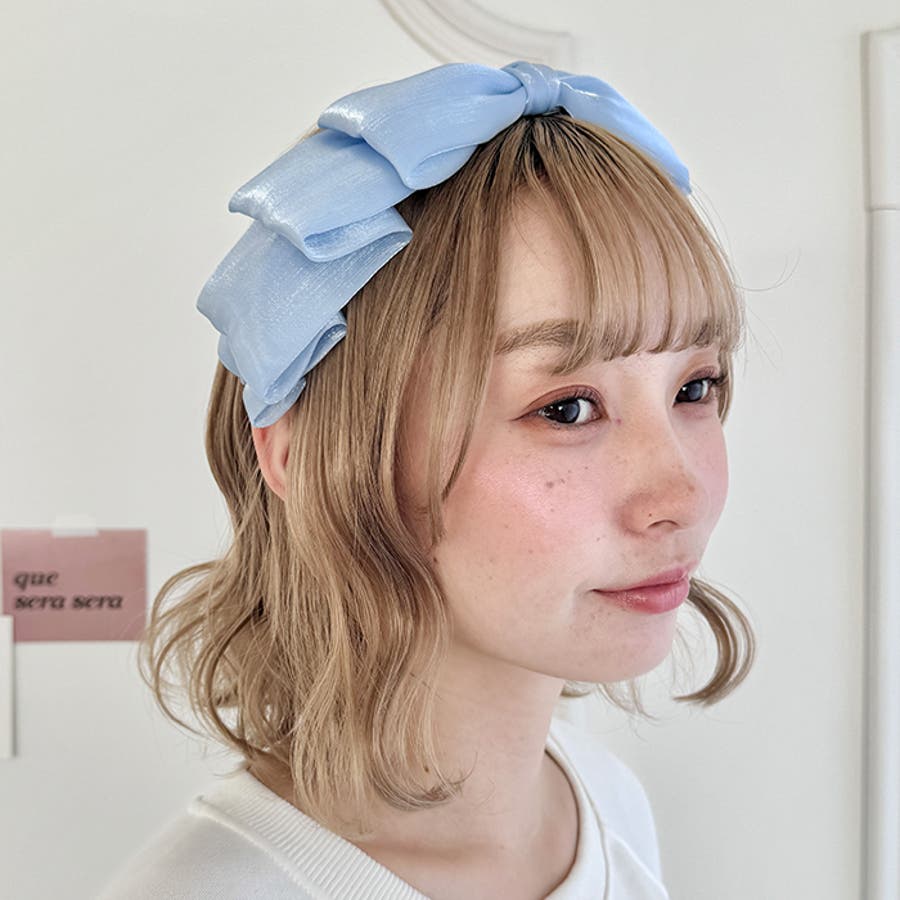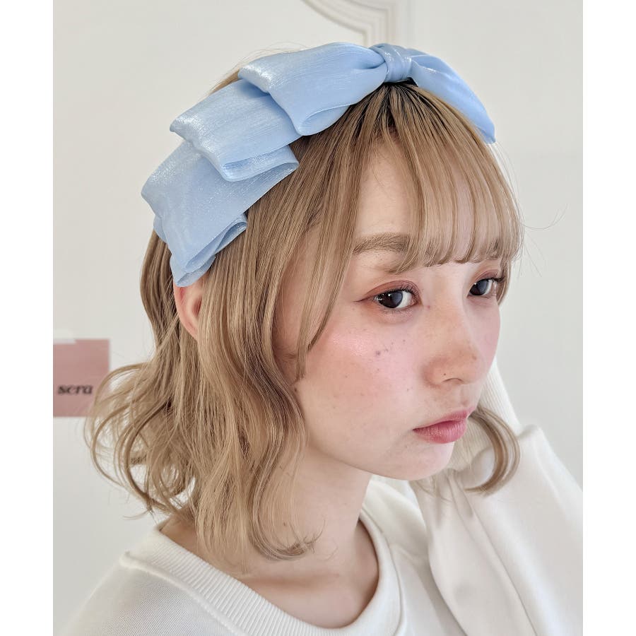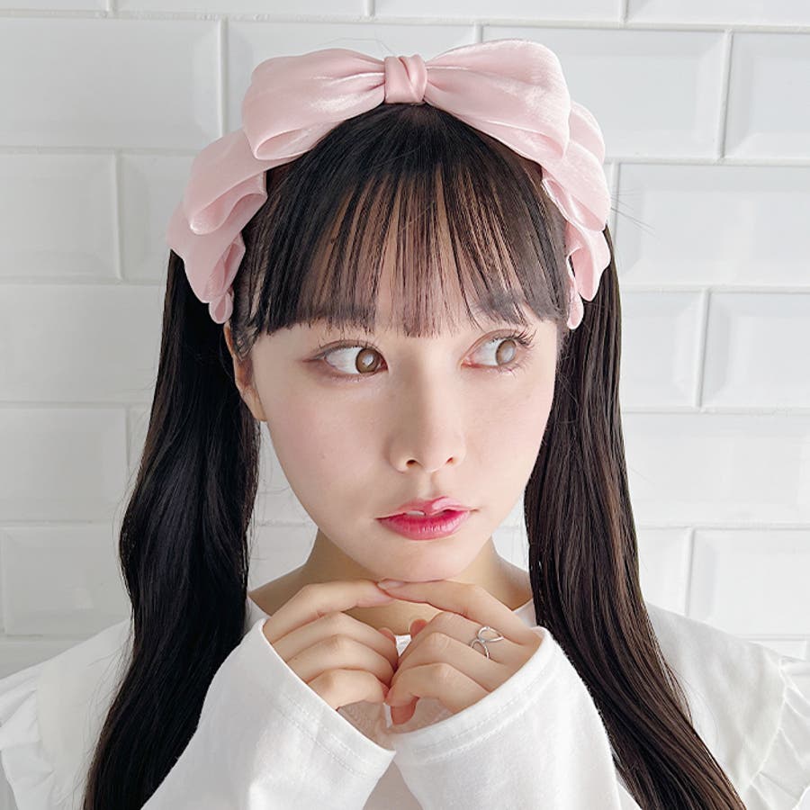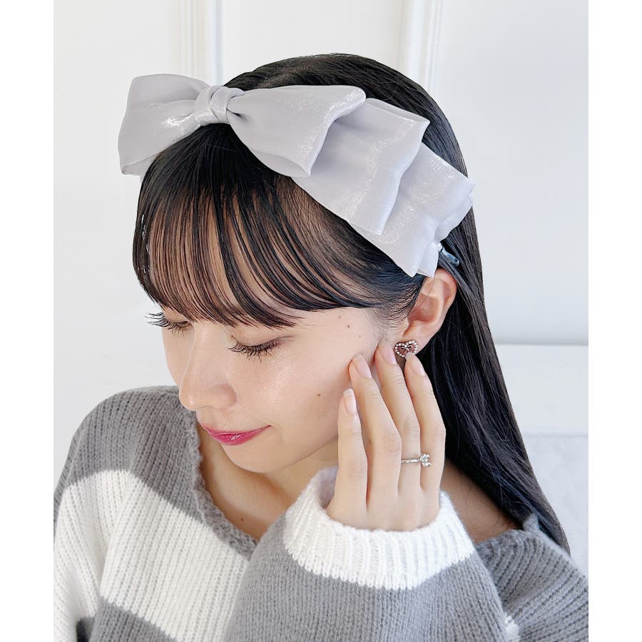 顔まわりを華やかにする大きめリボンカチューシャ。