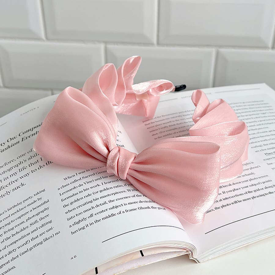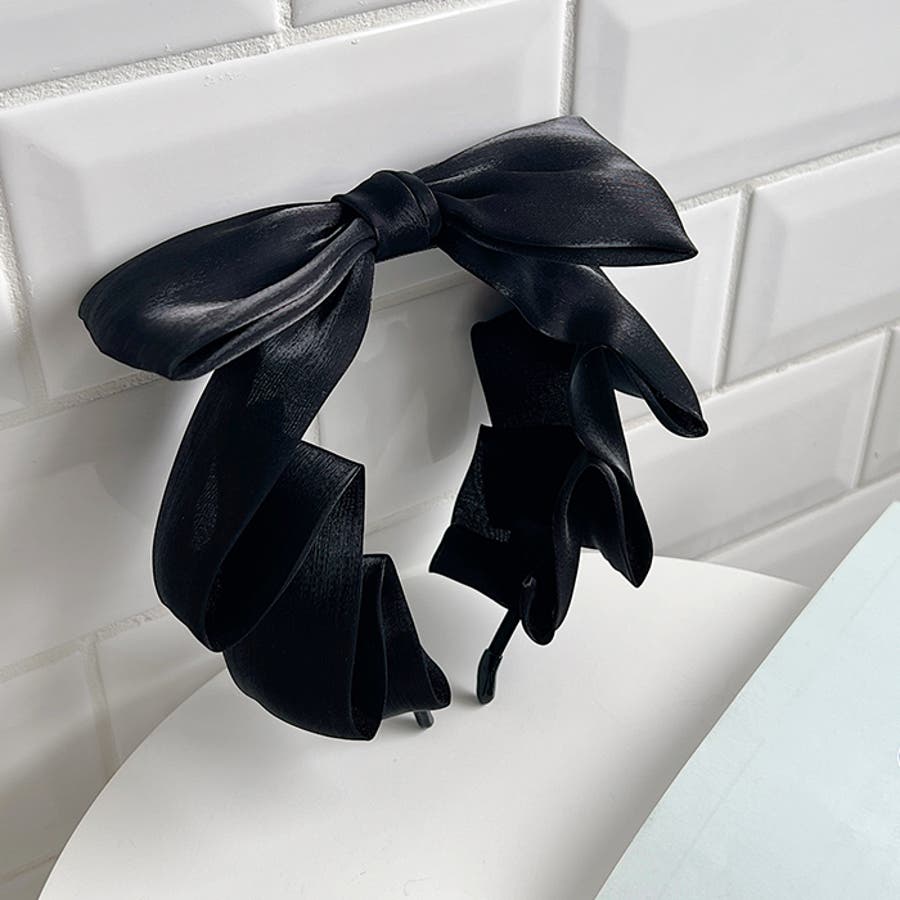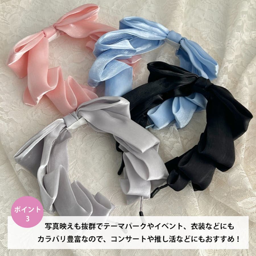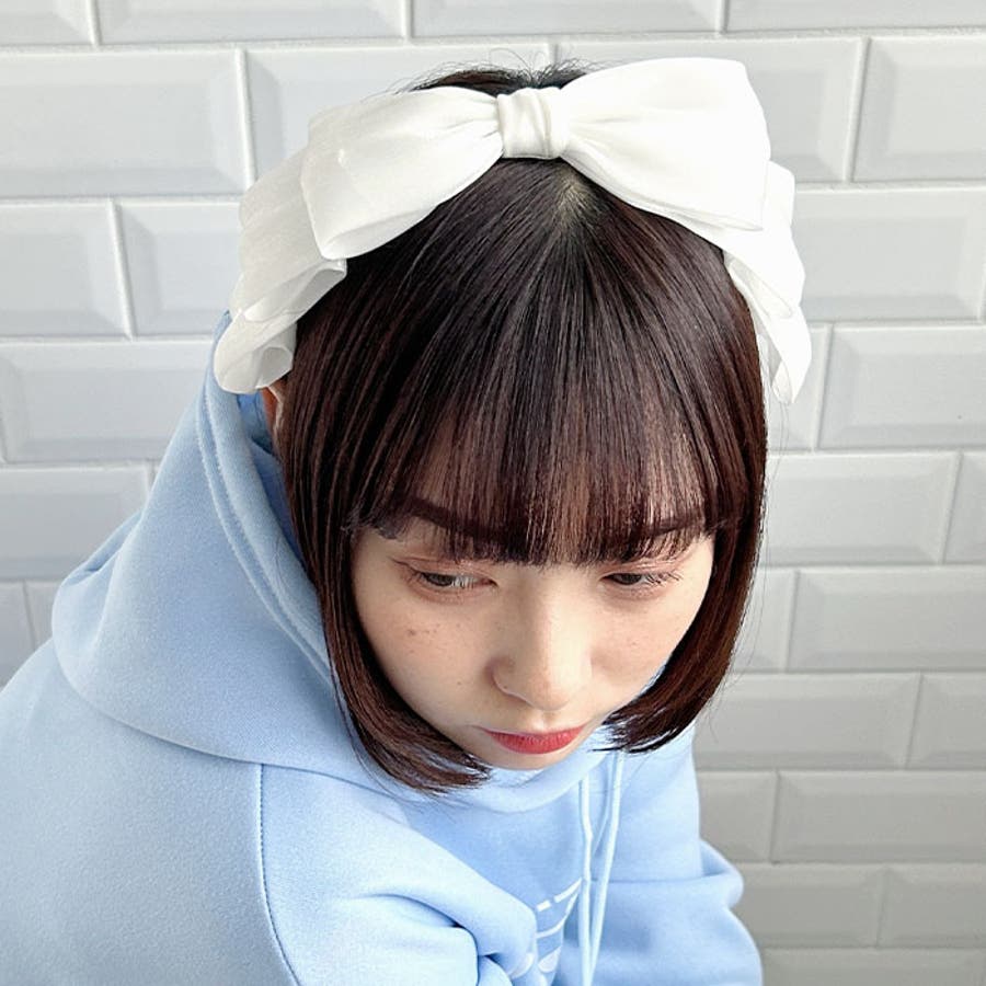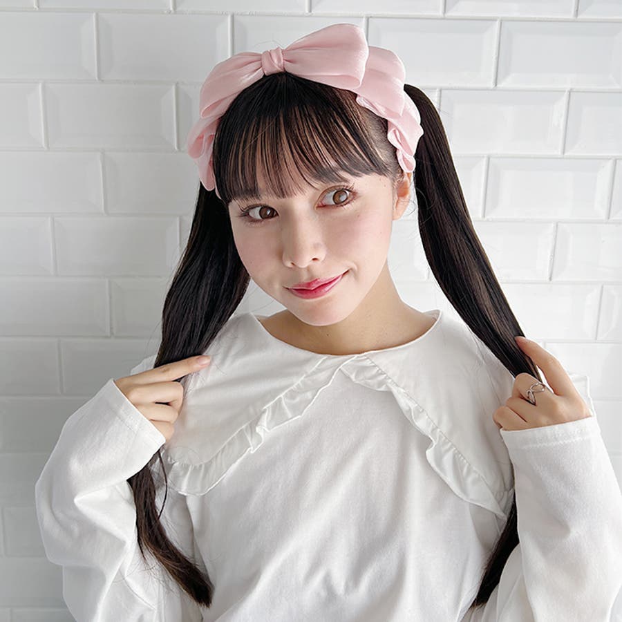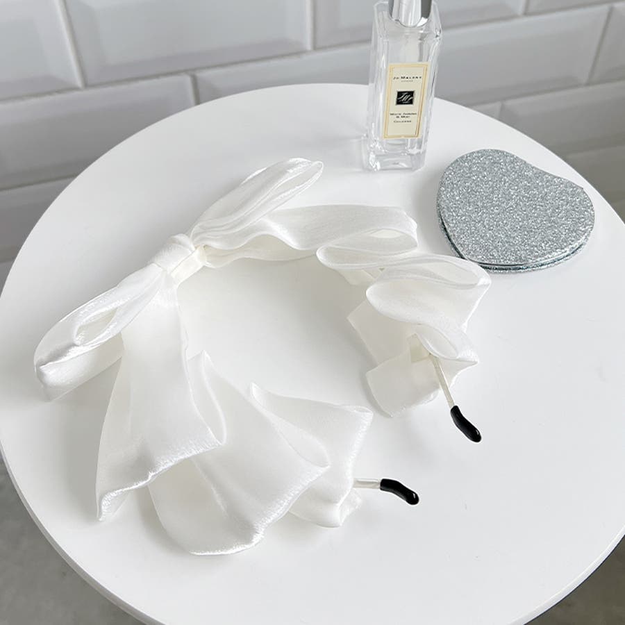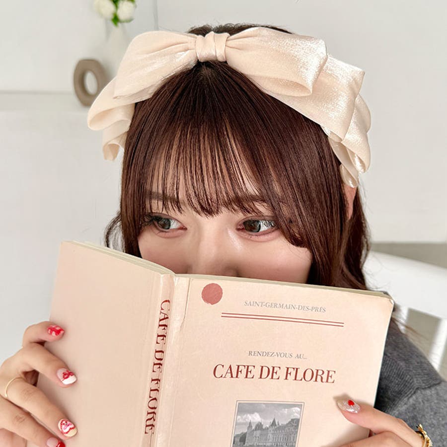 顔まわりを華やかにする大きめリボンカチューシャ。
