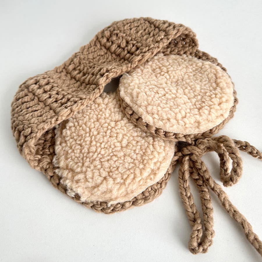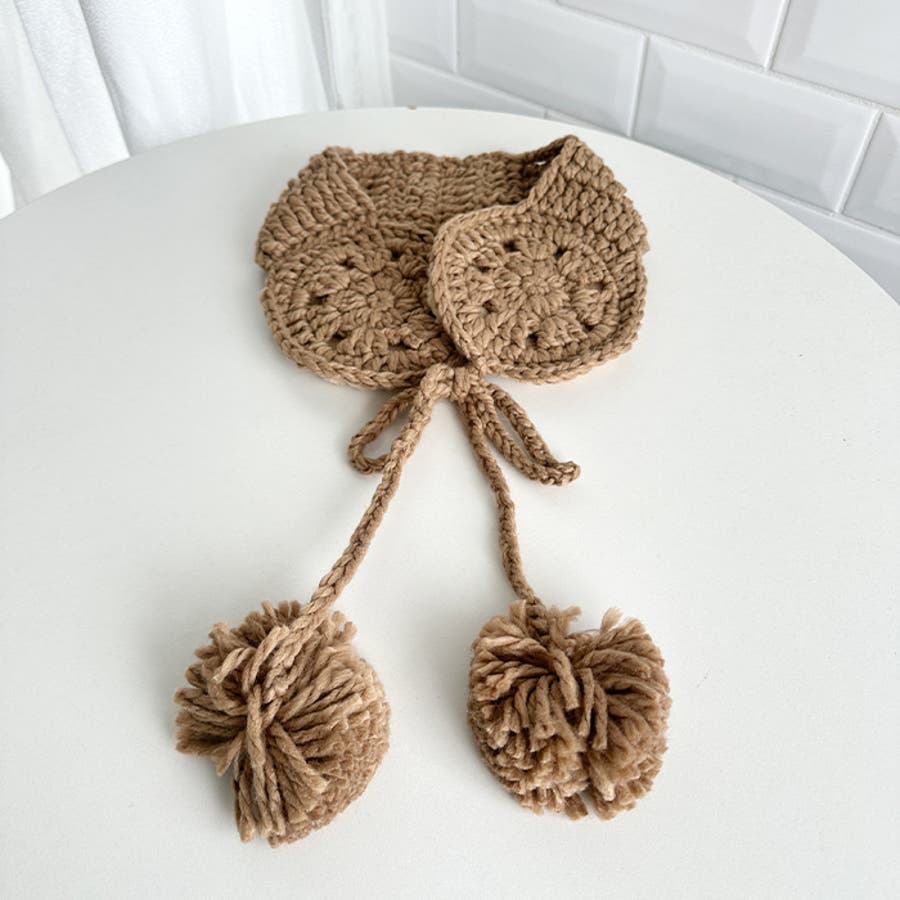 クロシェ編みポンポンイヤーマフ