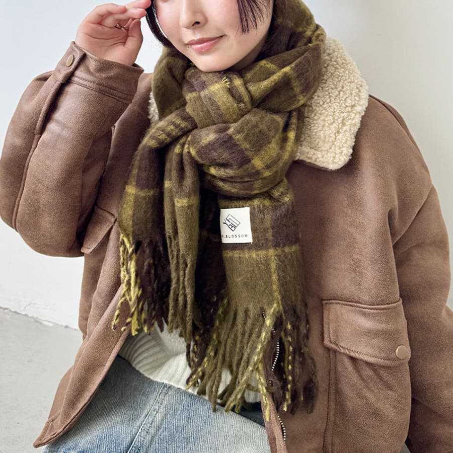・ビッグサイズなのでマフラーとしてだけでなく膝掛けとしても使用可能