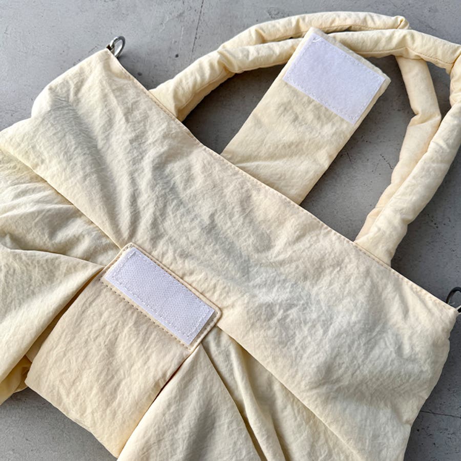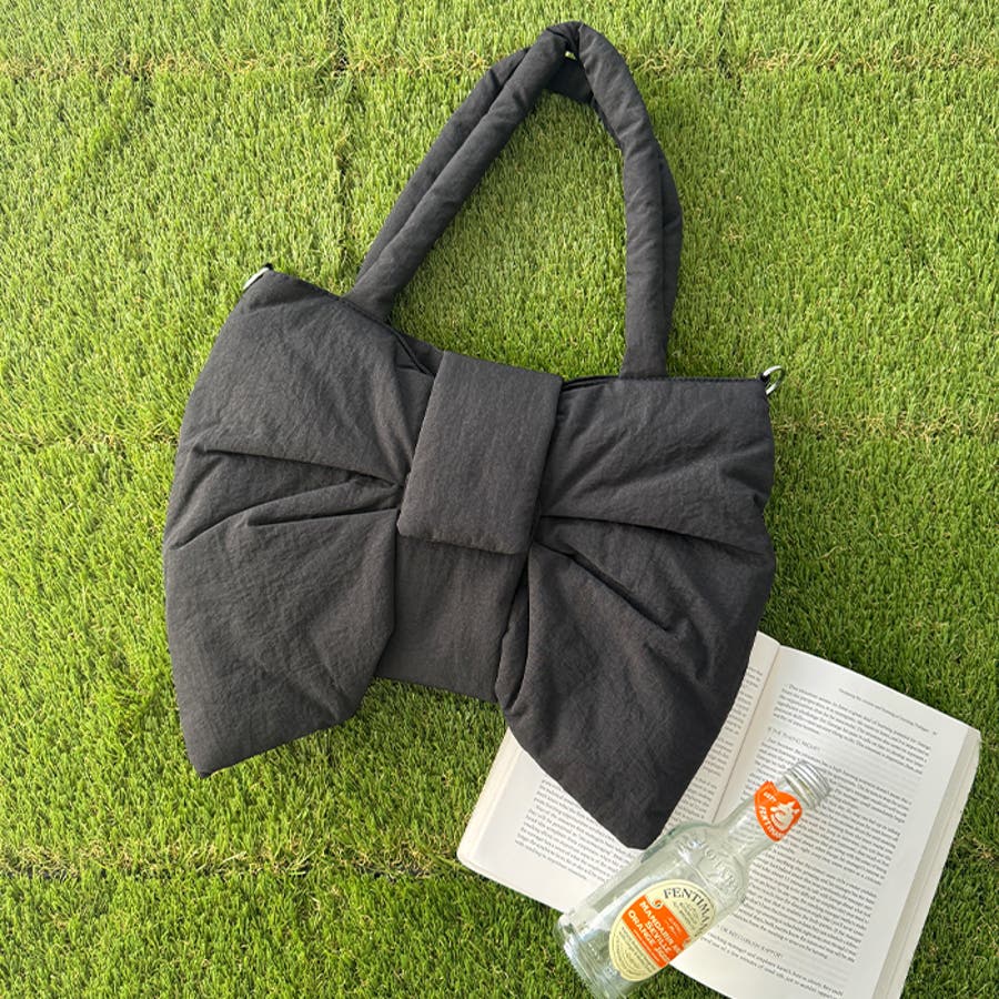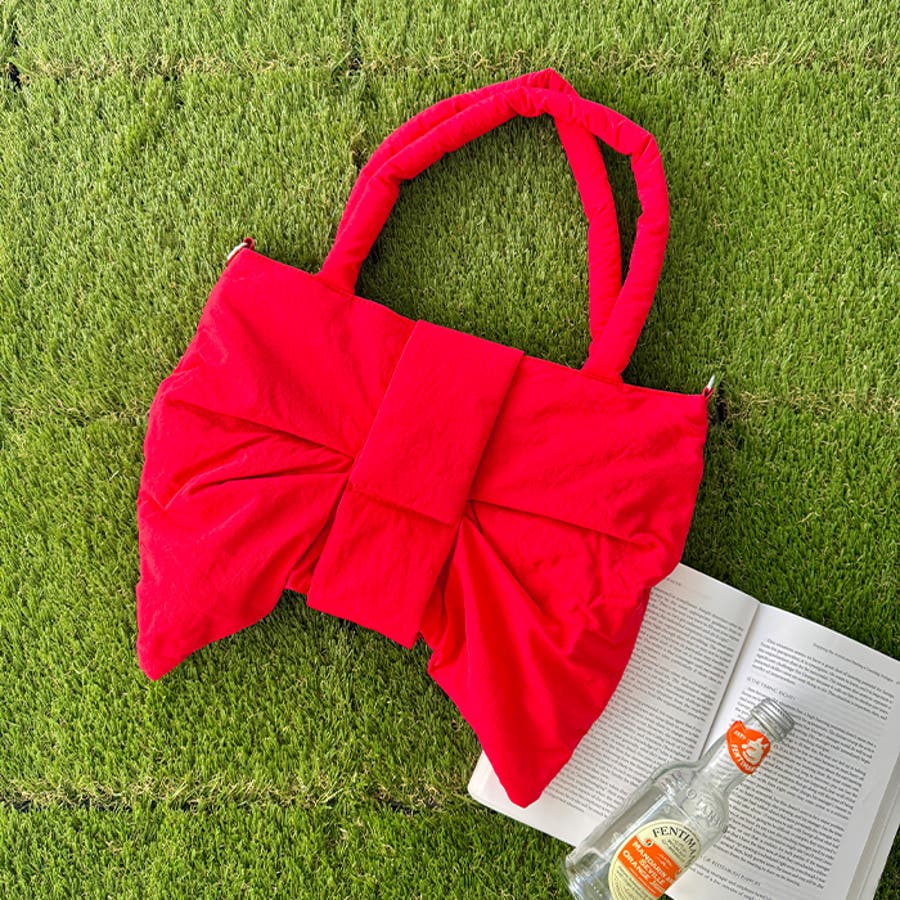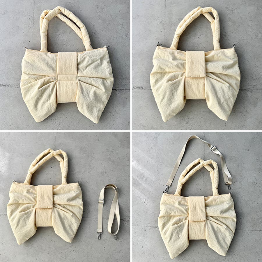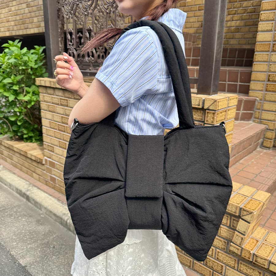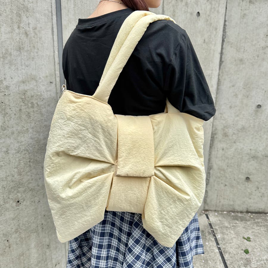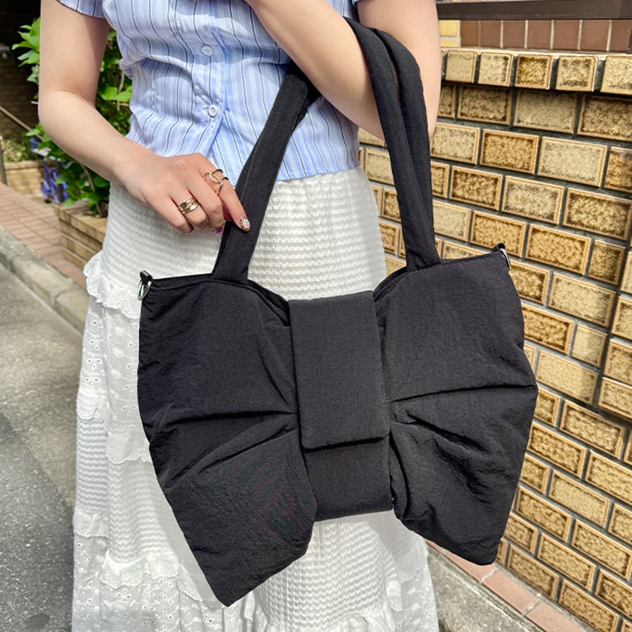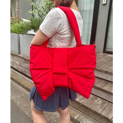 ・ぽってりしたりぼん型が可愛らしく、PCや500mlのペットボトルも入る大容量サイズが嬉しい