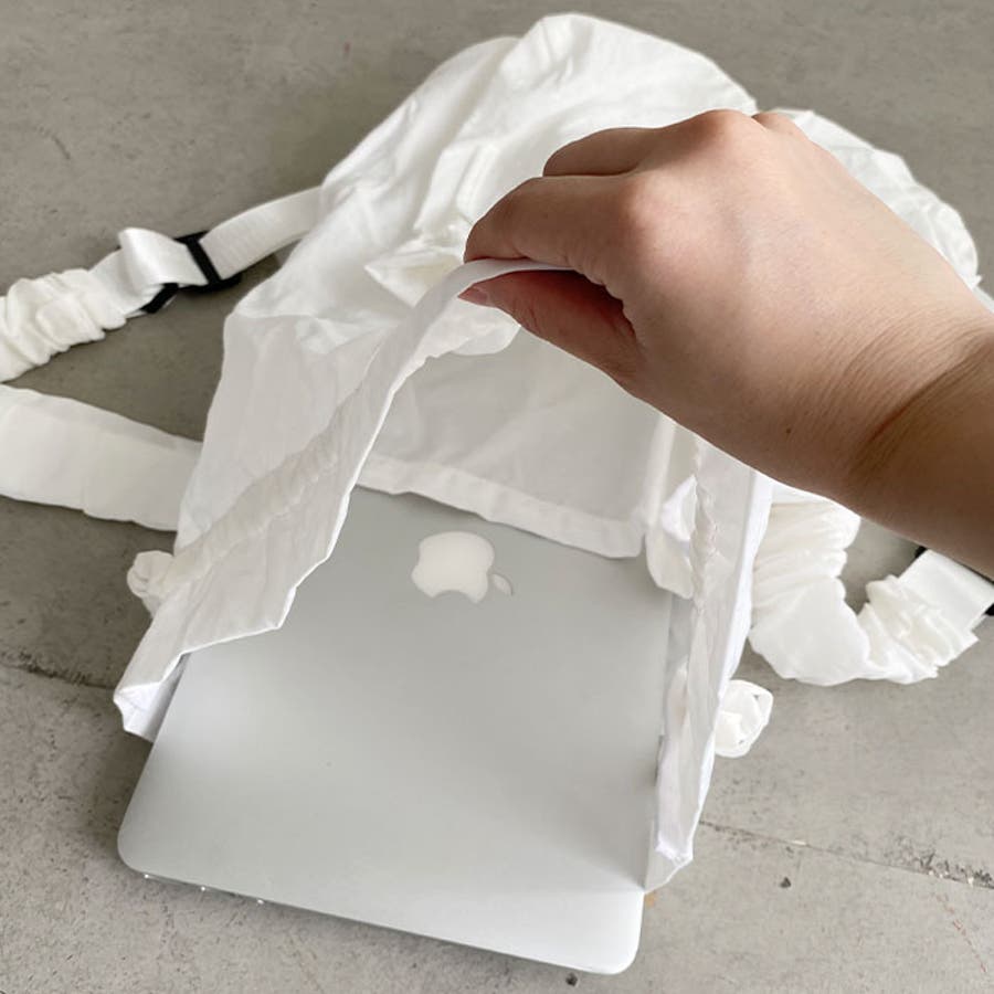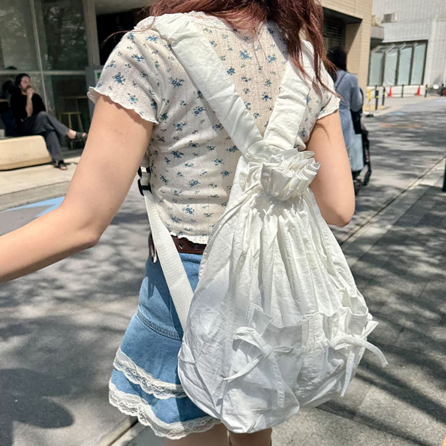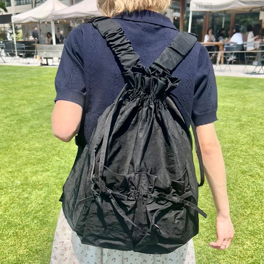 ・カジュアルな印象のリュックですが、リボンやギャザーがガーリーさんでも使いやすいデザイン