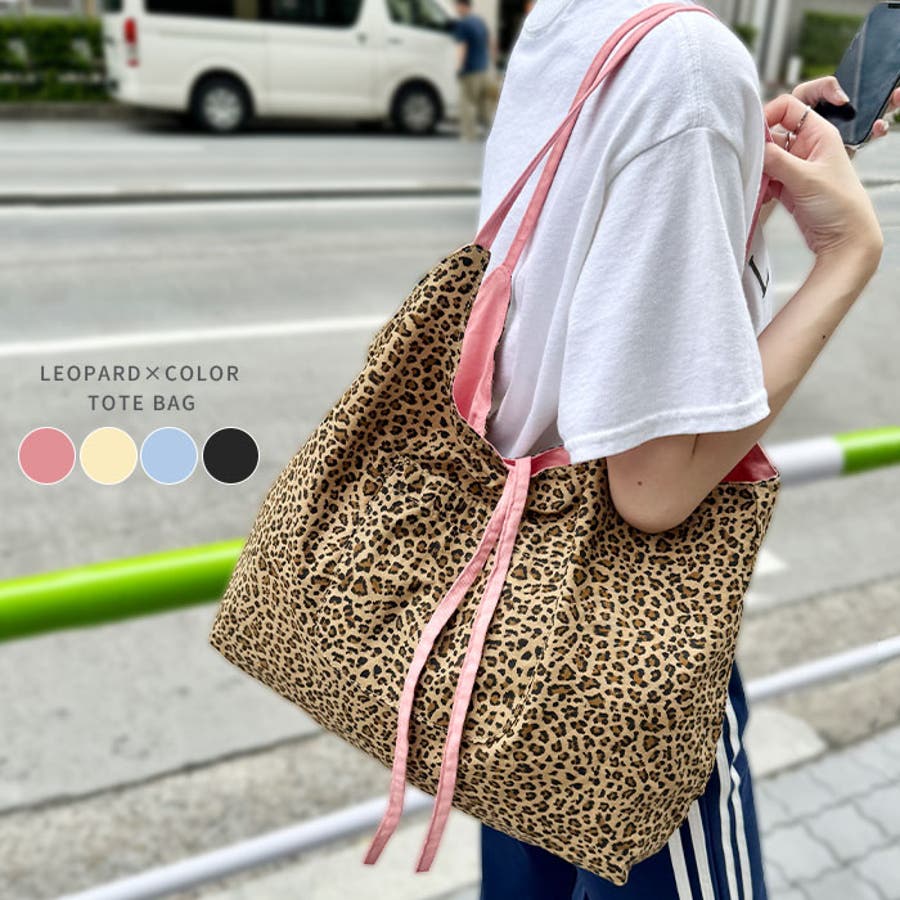 【大容量】レオパード×カラートートバッグ