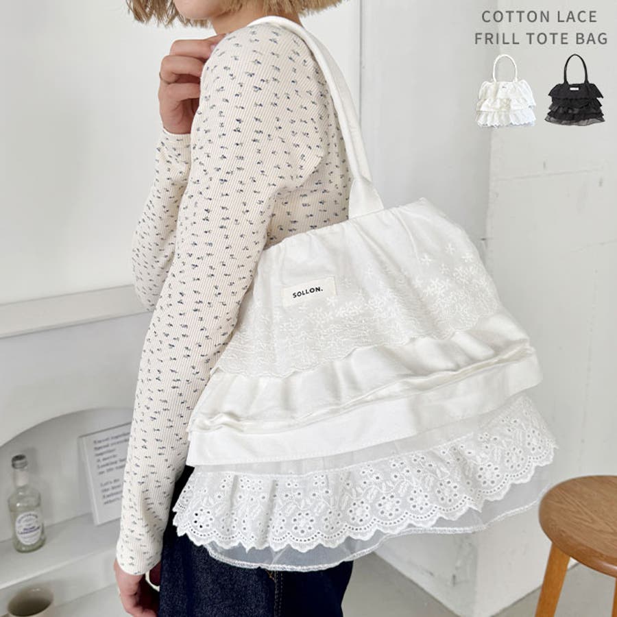 コットンレースフリルトートバッグ