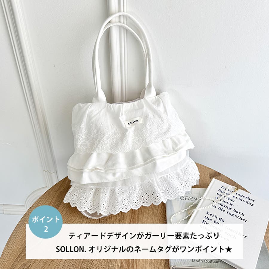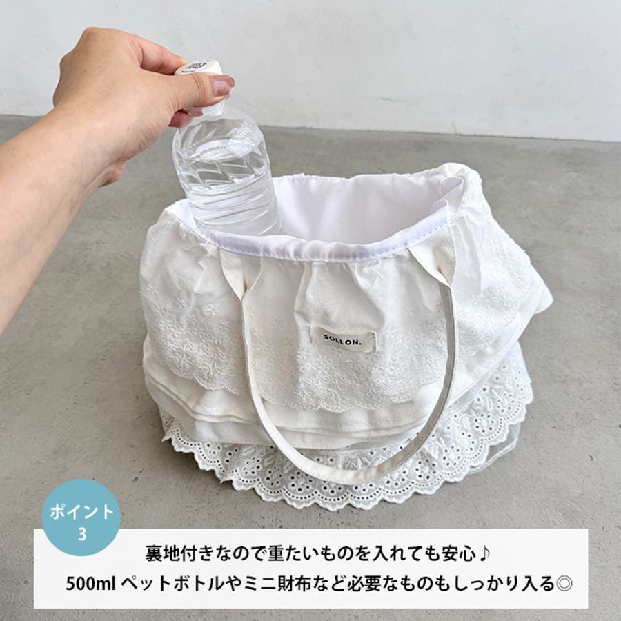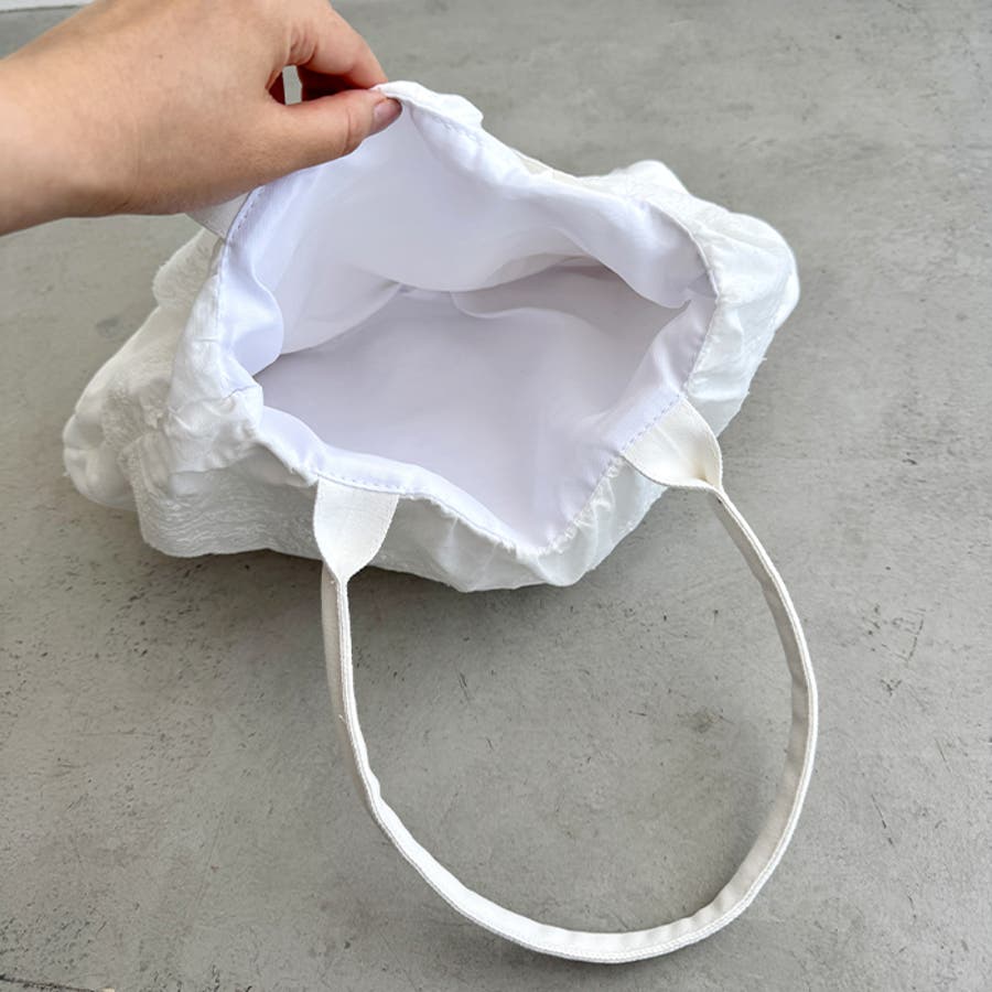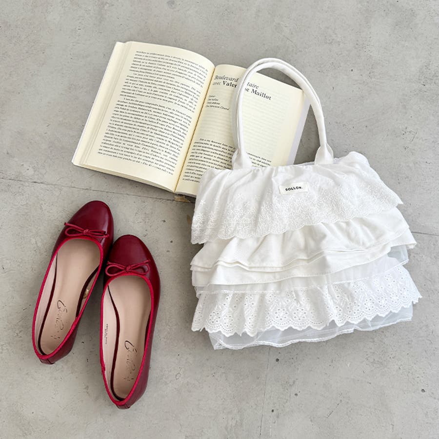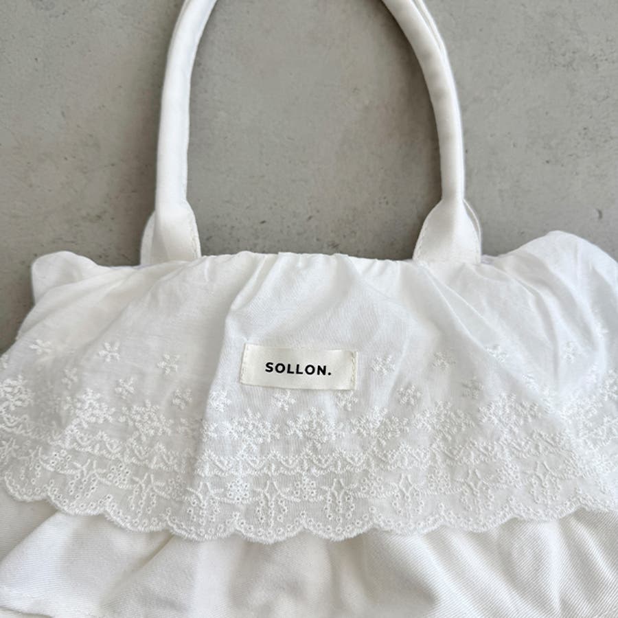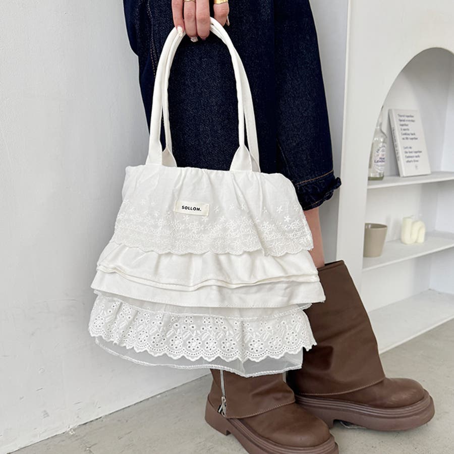 ・フラワーコットンレースやコットンフリルが贅沢に使われたトートバッグ