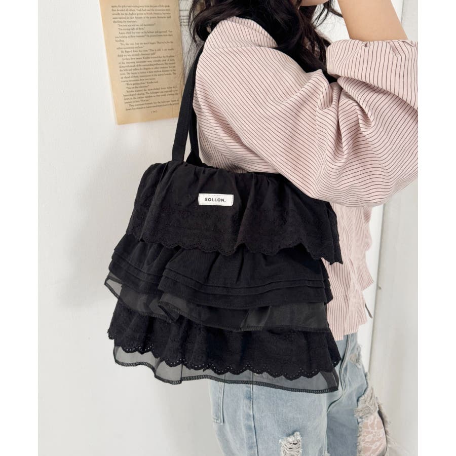 フリルがたっぷりあしらわれたショルダーバッグ