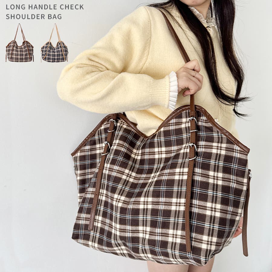 ロングハンドルチェックショルダーバッグ