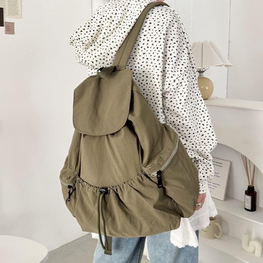 ・外側にドロスト付きポケットとファスナー付きポケットが付いており収納力抜群