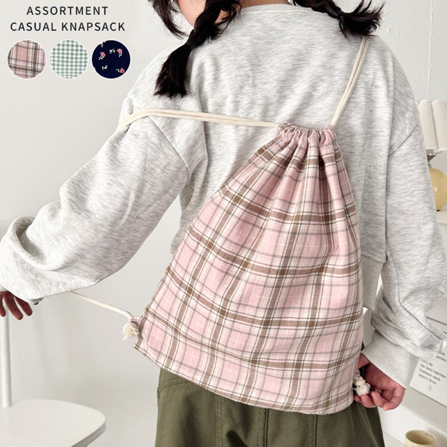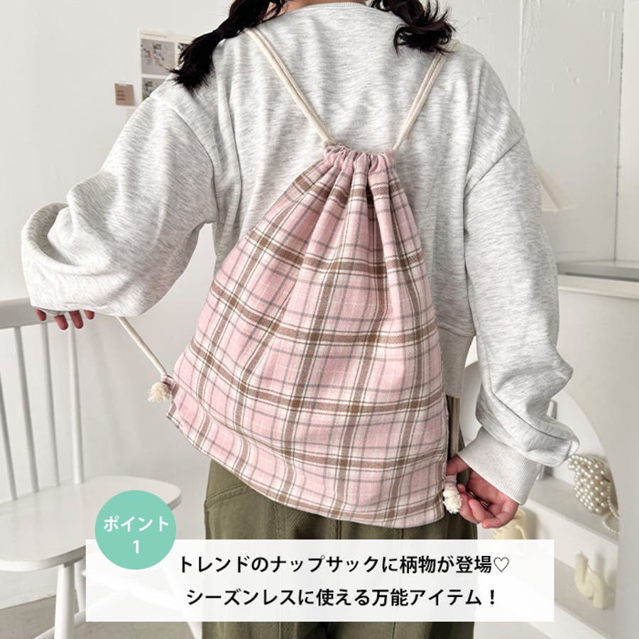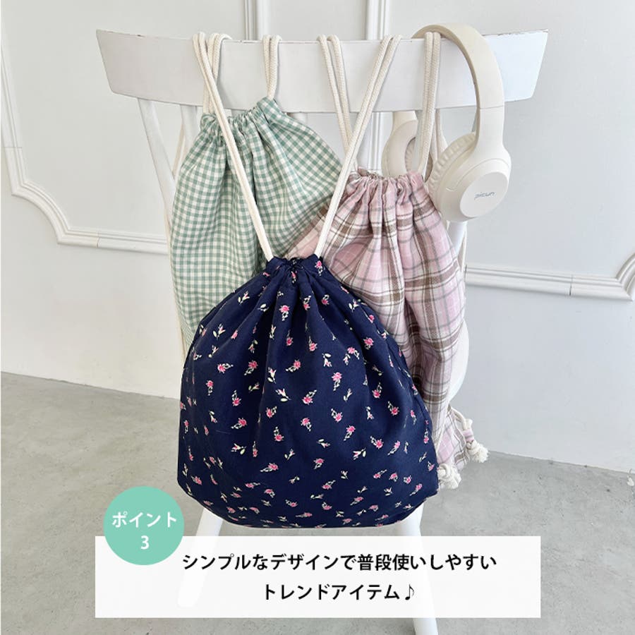 ・可愛らしいチェック柄のピンク、ギンガムチェック柄で爽やかなミント、カジュアルな小花柄のネイビーの3色展開