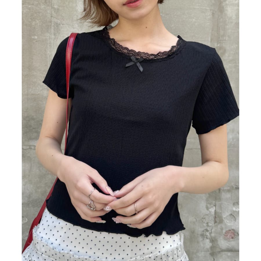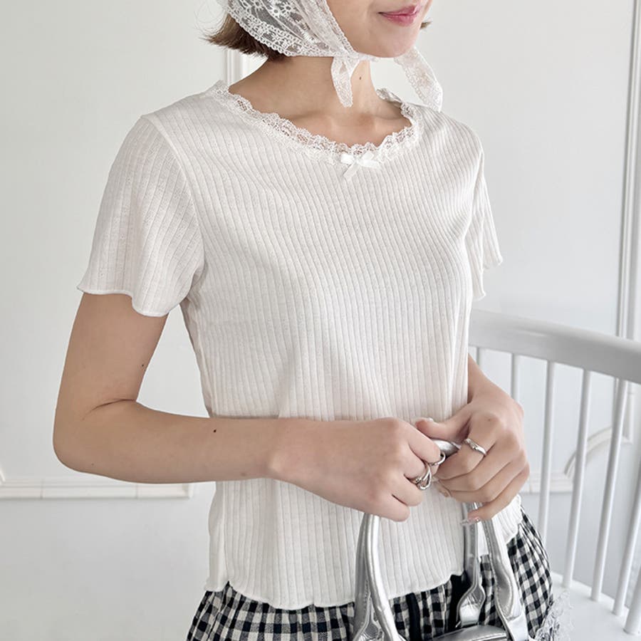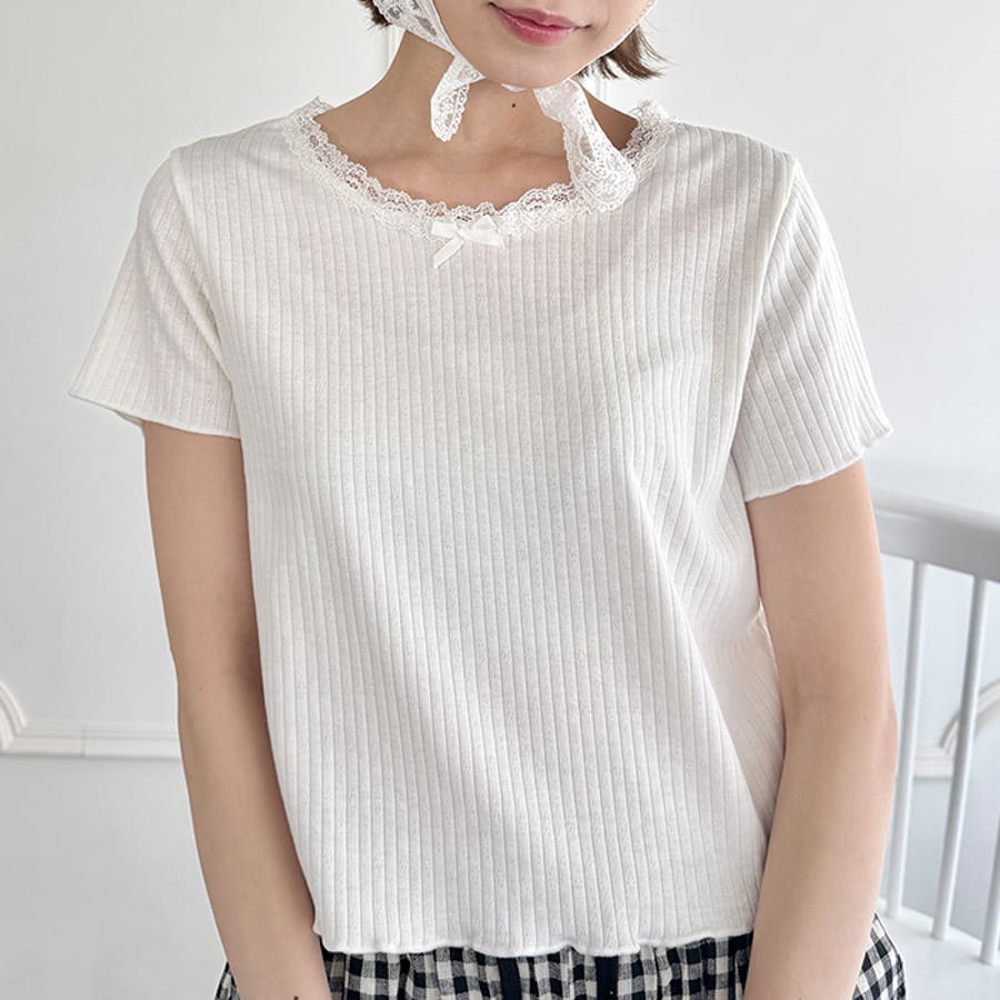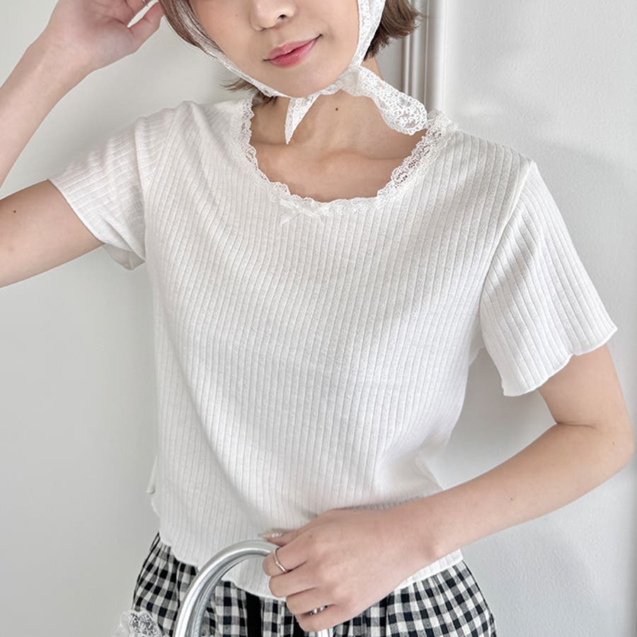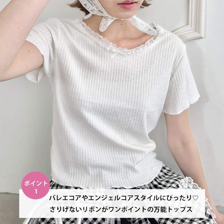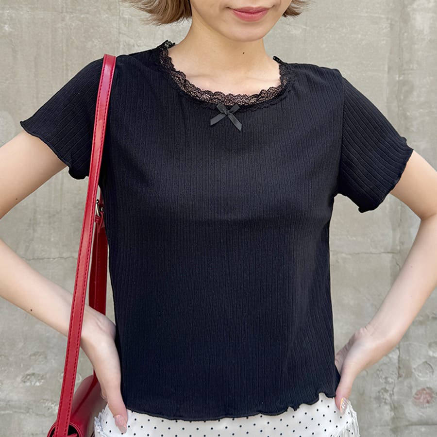 ・プチリボンとレースが主張しすぎず、レディな印象のコンパクトトップス