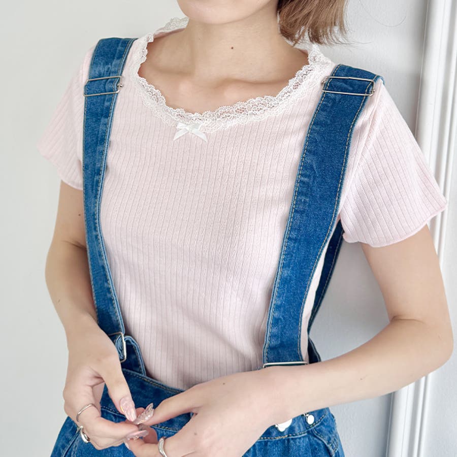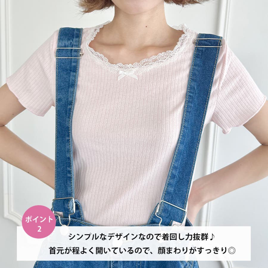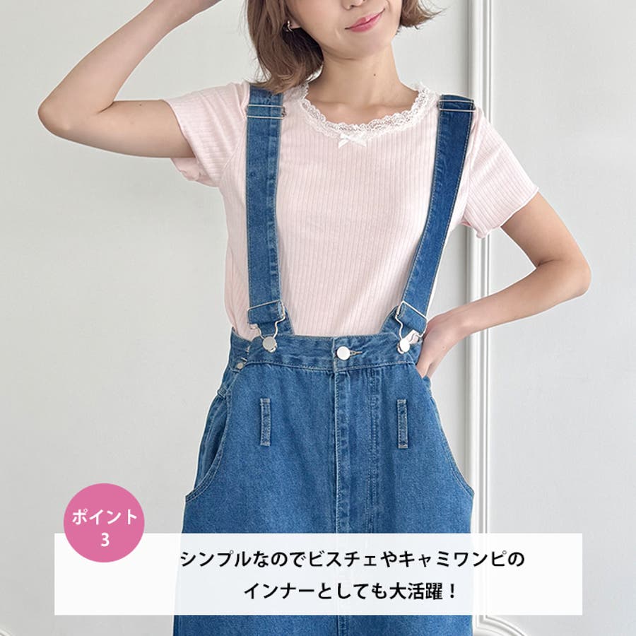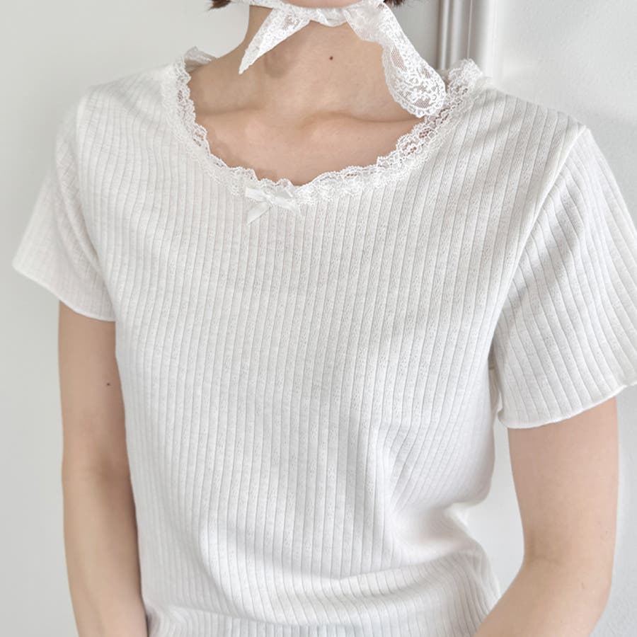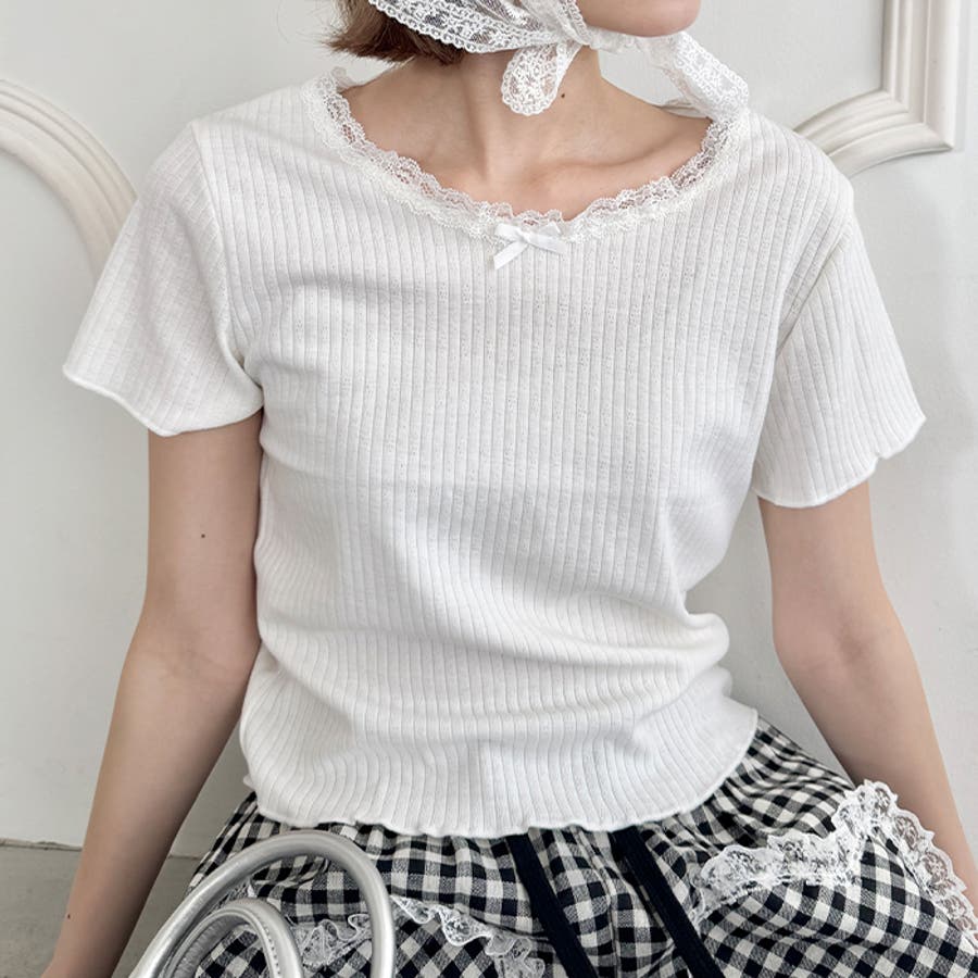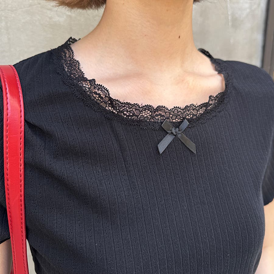 ・プチリボンとレースが主張しすぎず、レディな印象のコンパクトトップス