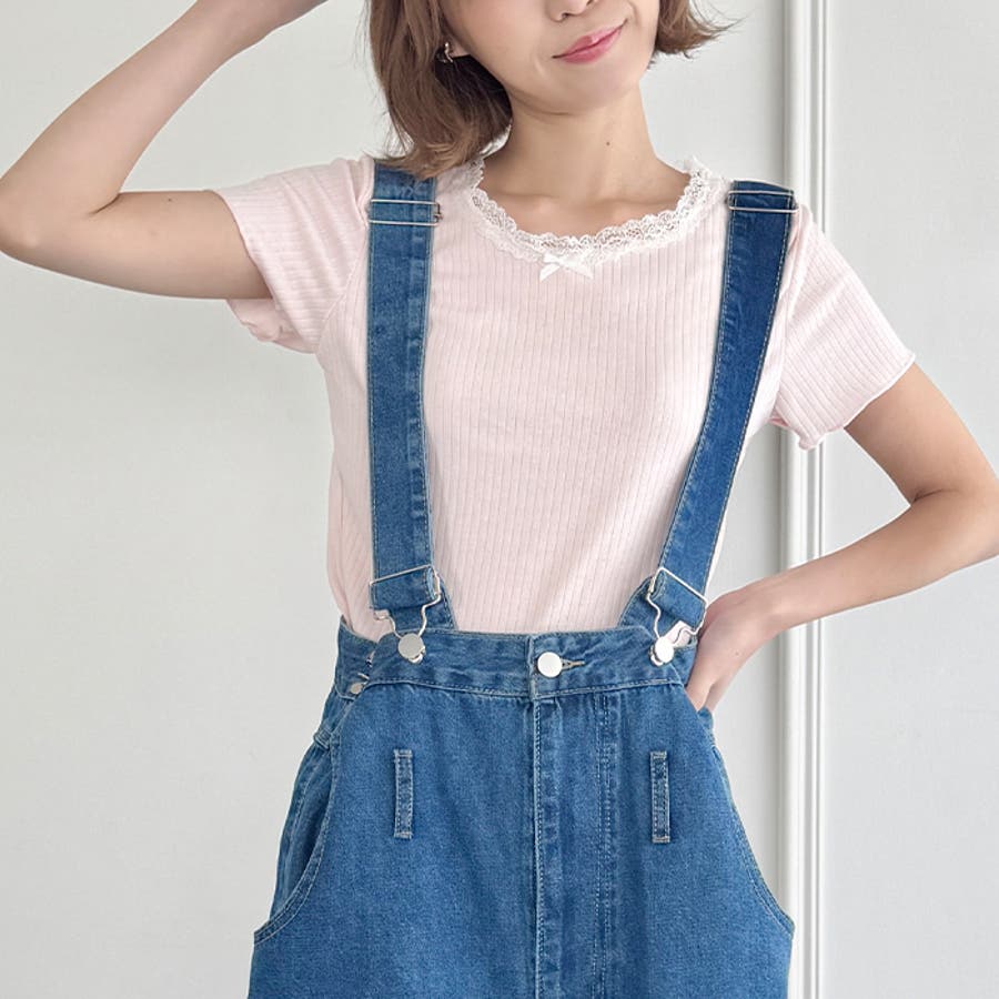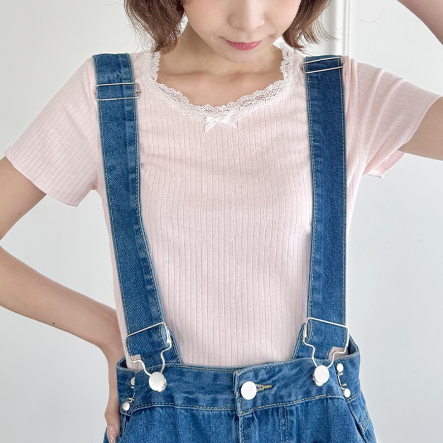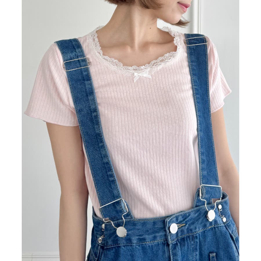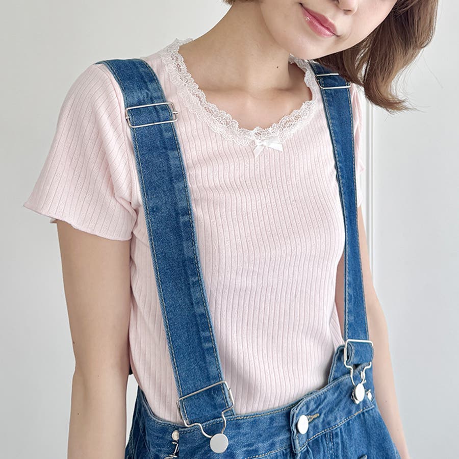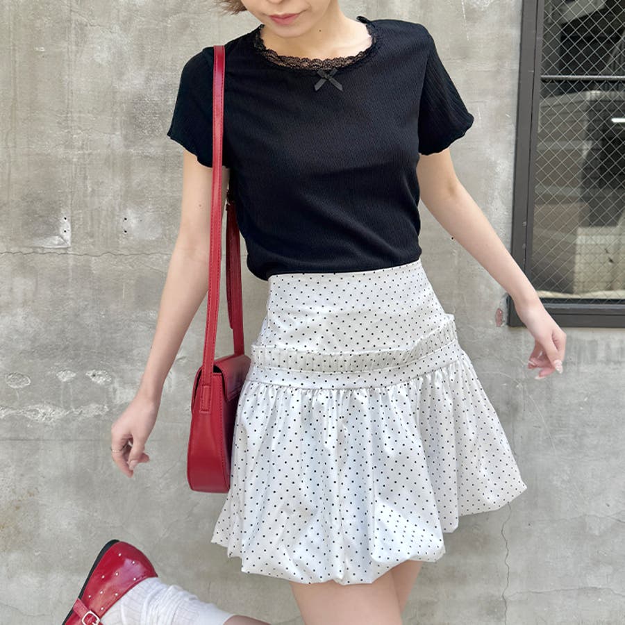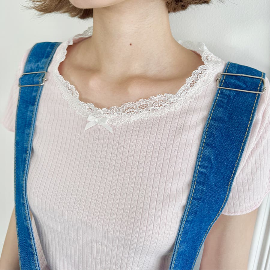 ・プチリボンとレースが主張しすぎず、レディな印象のコンパクトトップス