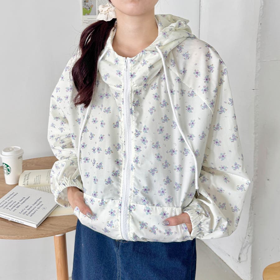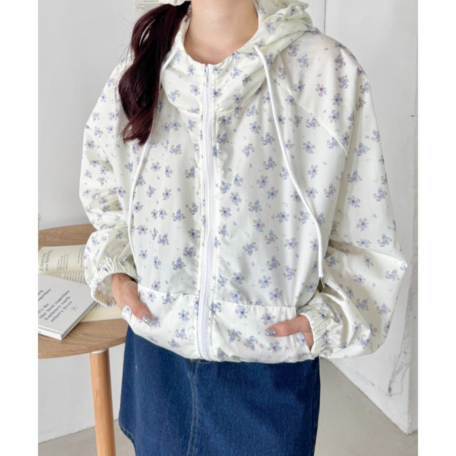 ・旬のフラワー柄が目を惹くマウンテンパーカー