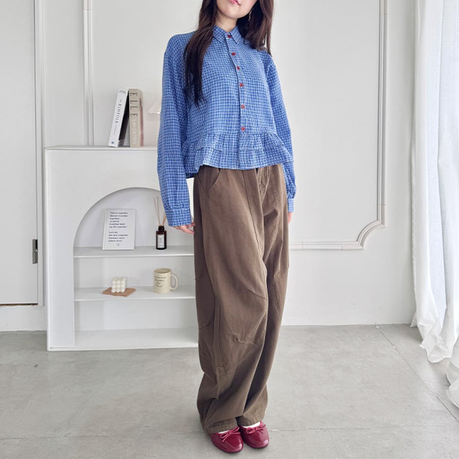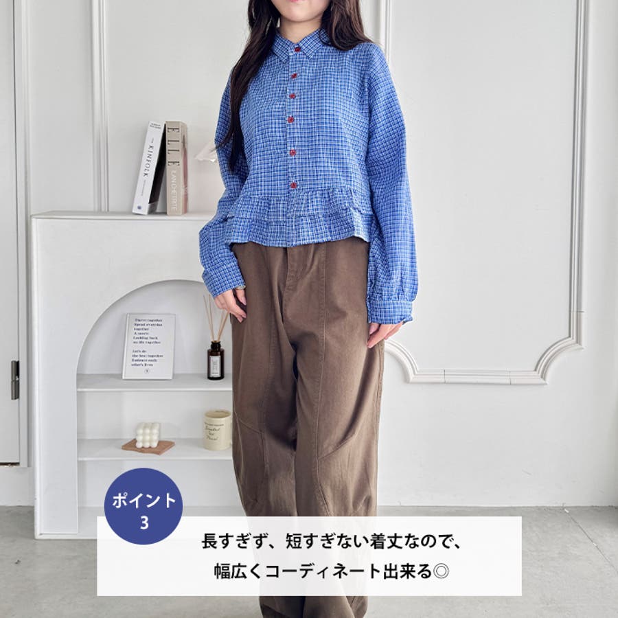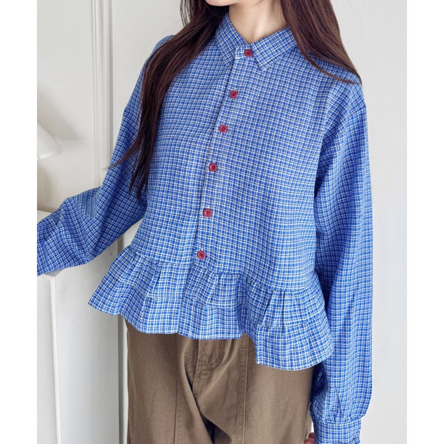 ・裾にフリルが施されたトレンド感溢れるチェックシャツ