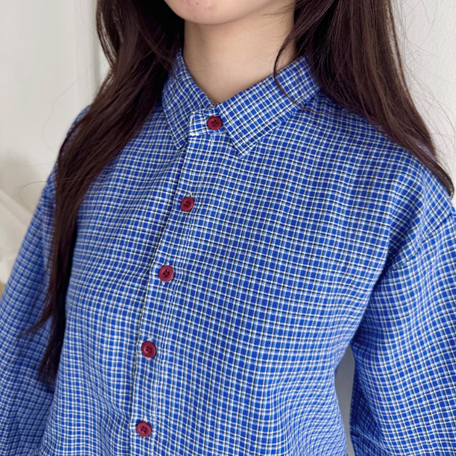 ・こっくり深めのブルーチェックシャツなので秋にも活躍
