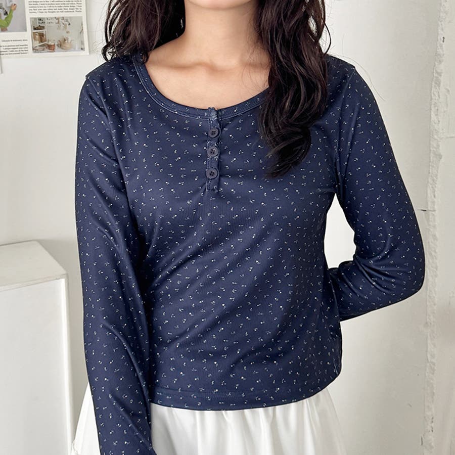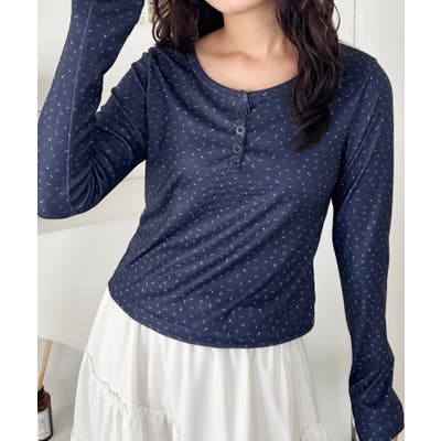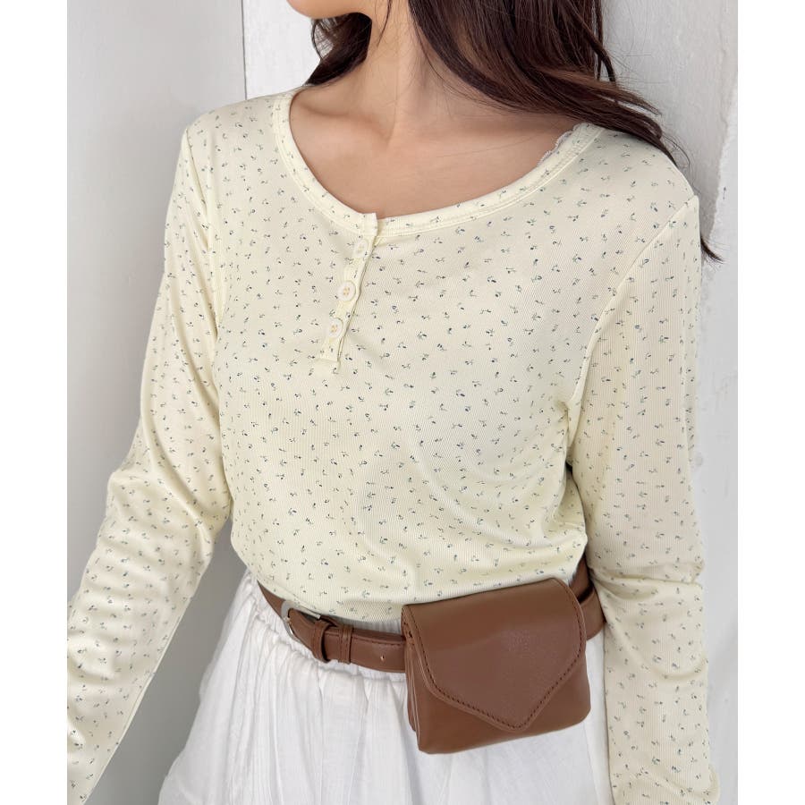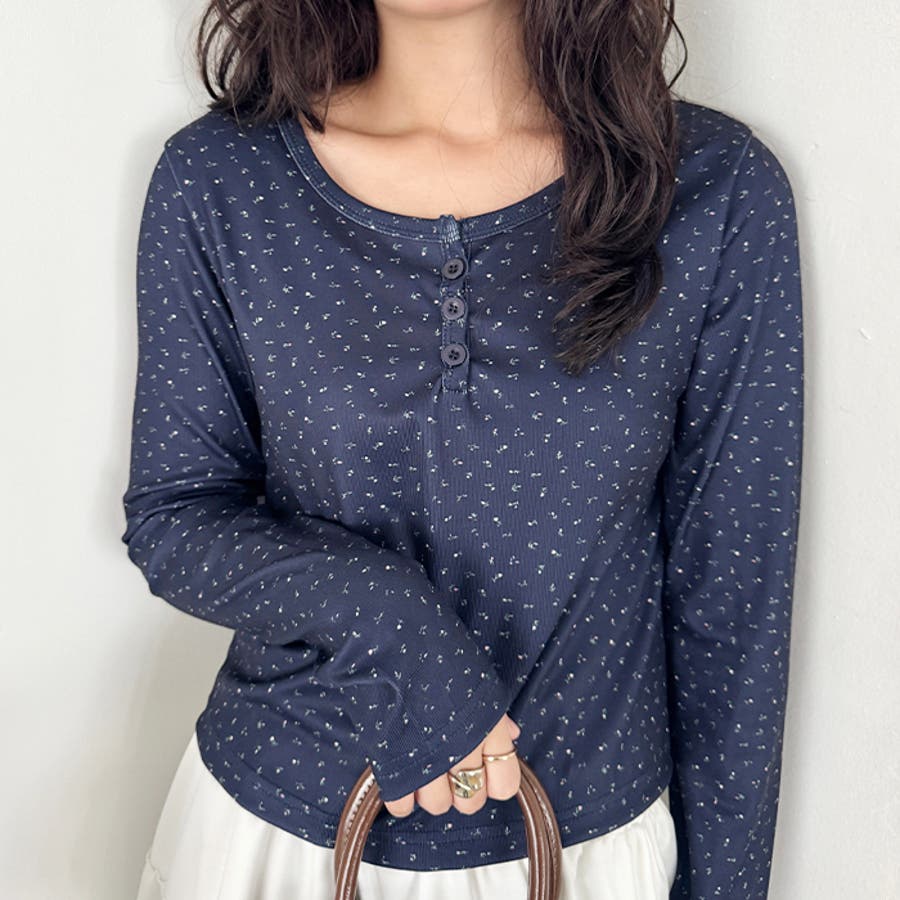 ・今季人気のヘンリーネックトップスに小花柄が登場