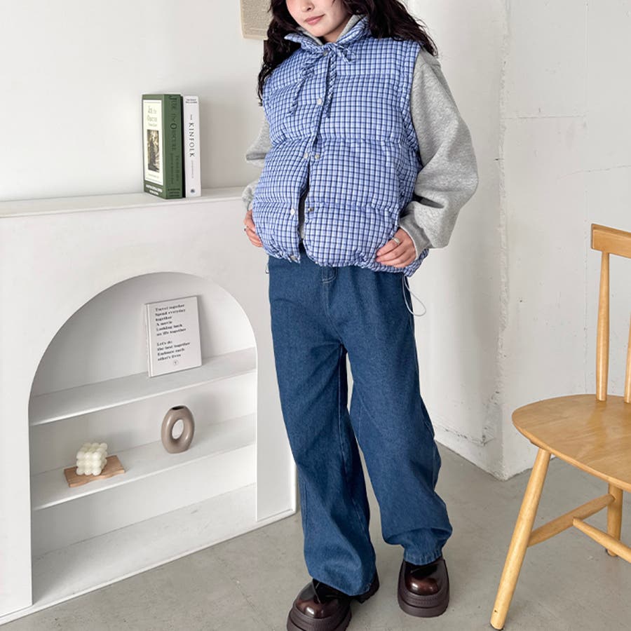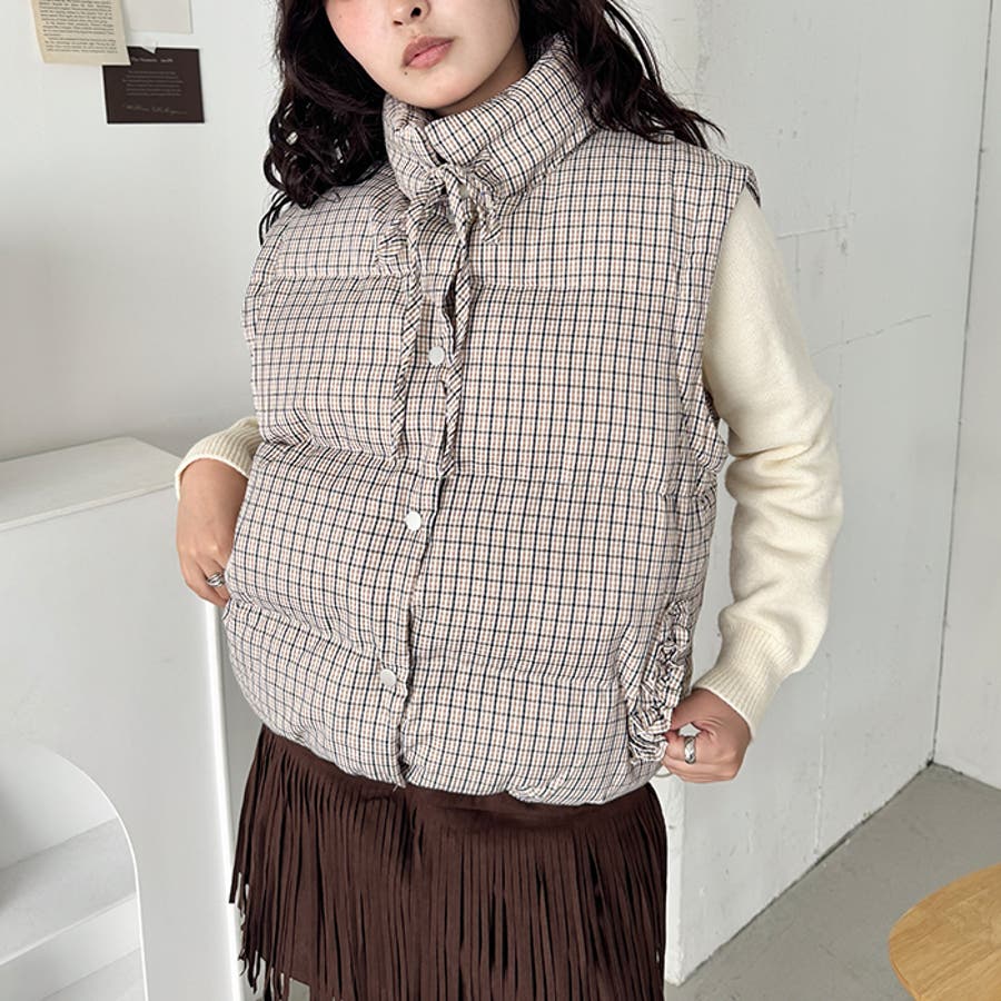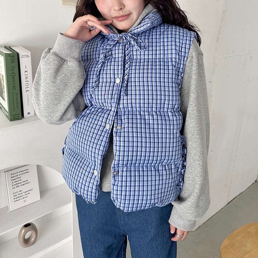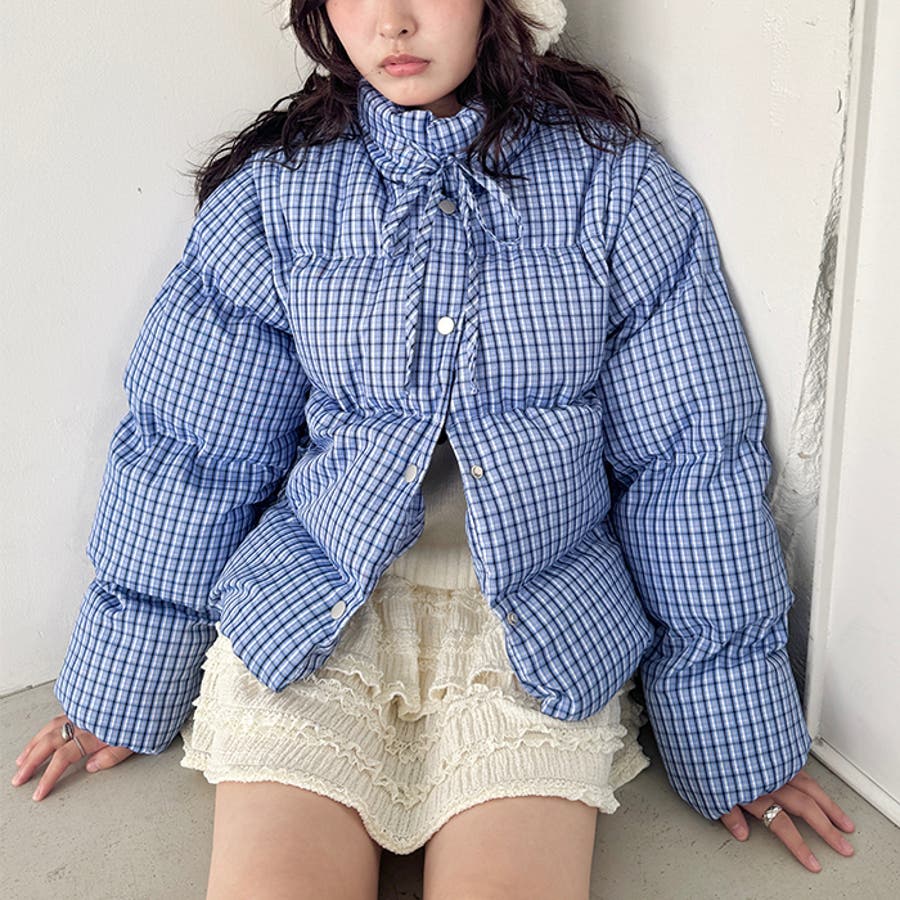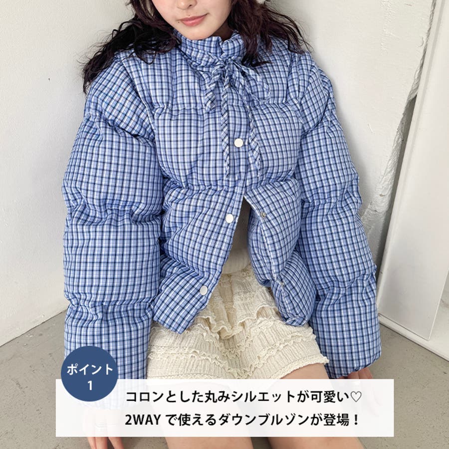 【袖取り外し可能】チェックリボンダウンジャケット/ダウンベスト