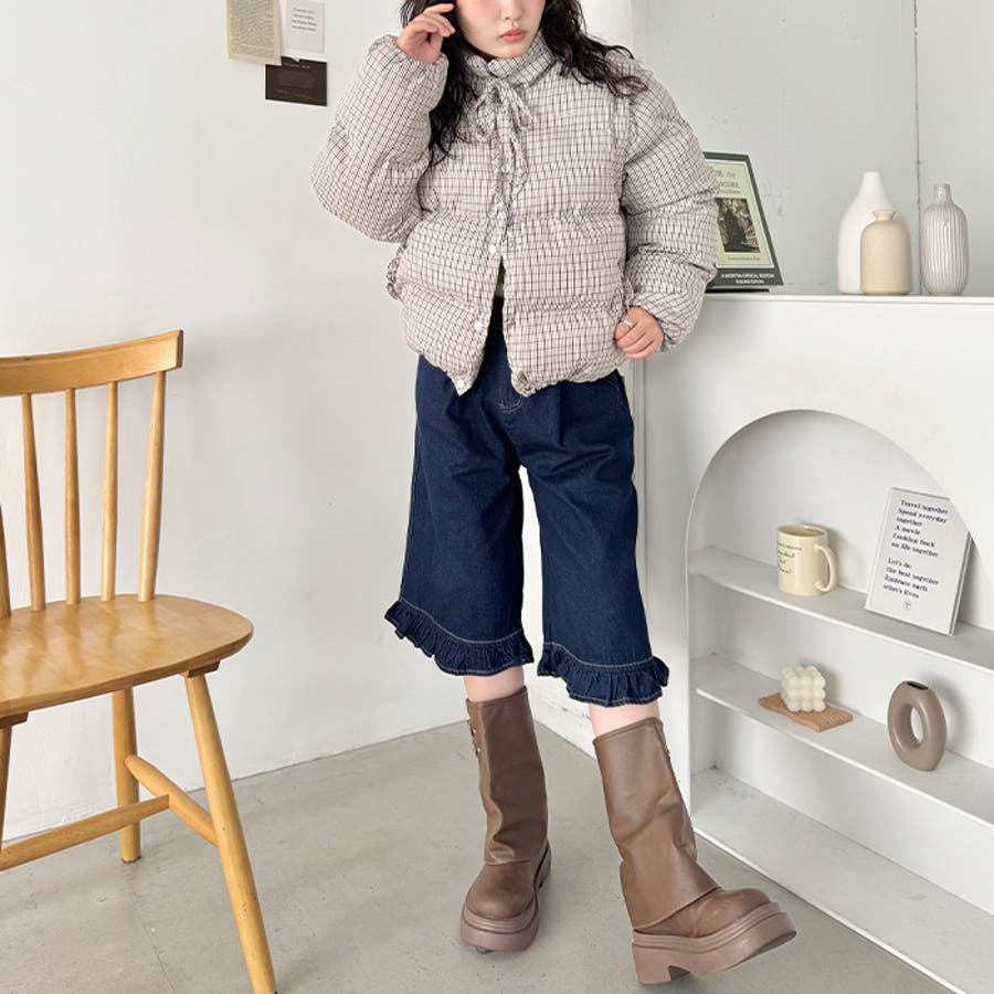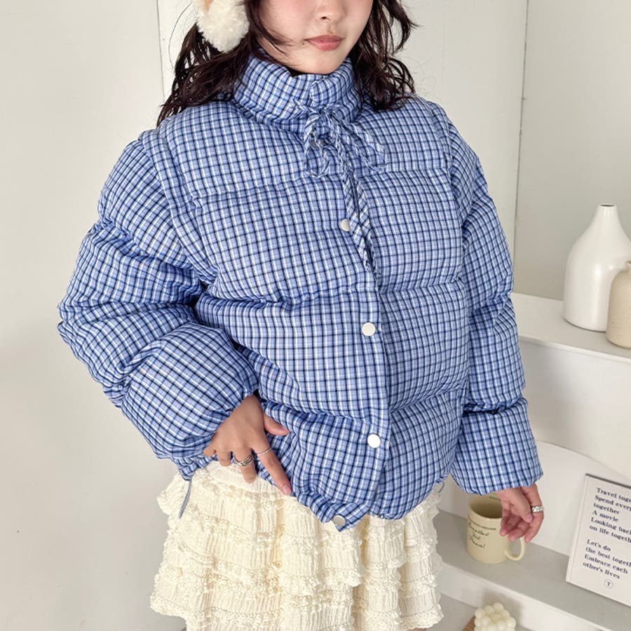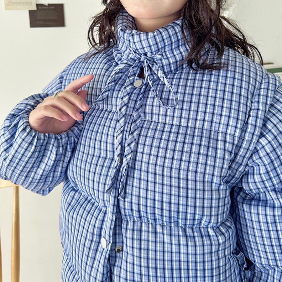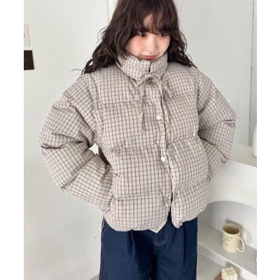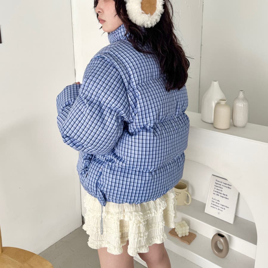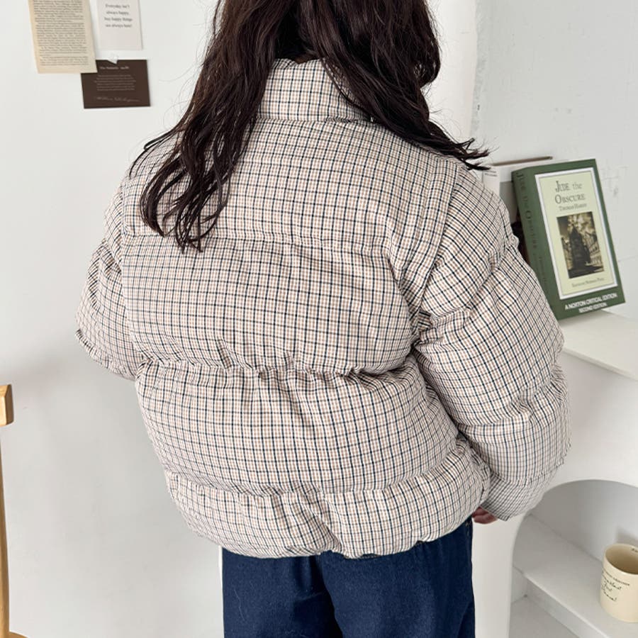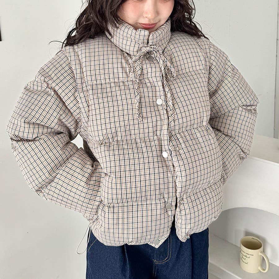 ・チェック柄印象的な中綿ダウンジャケット
