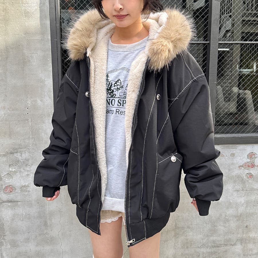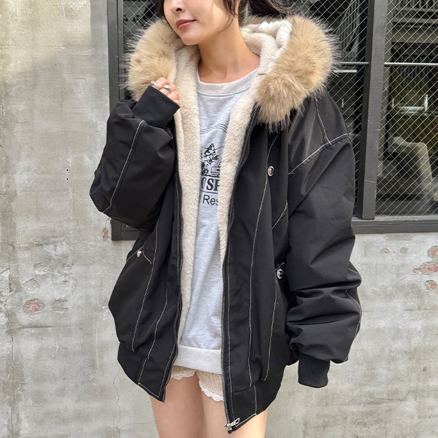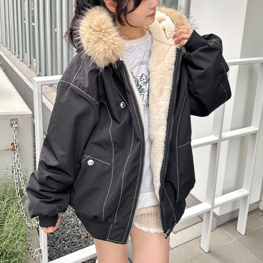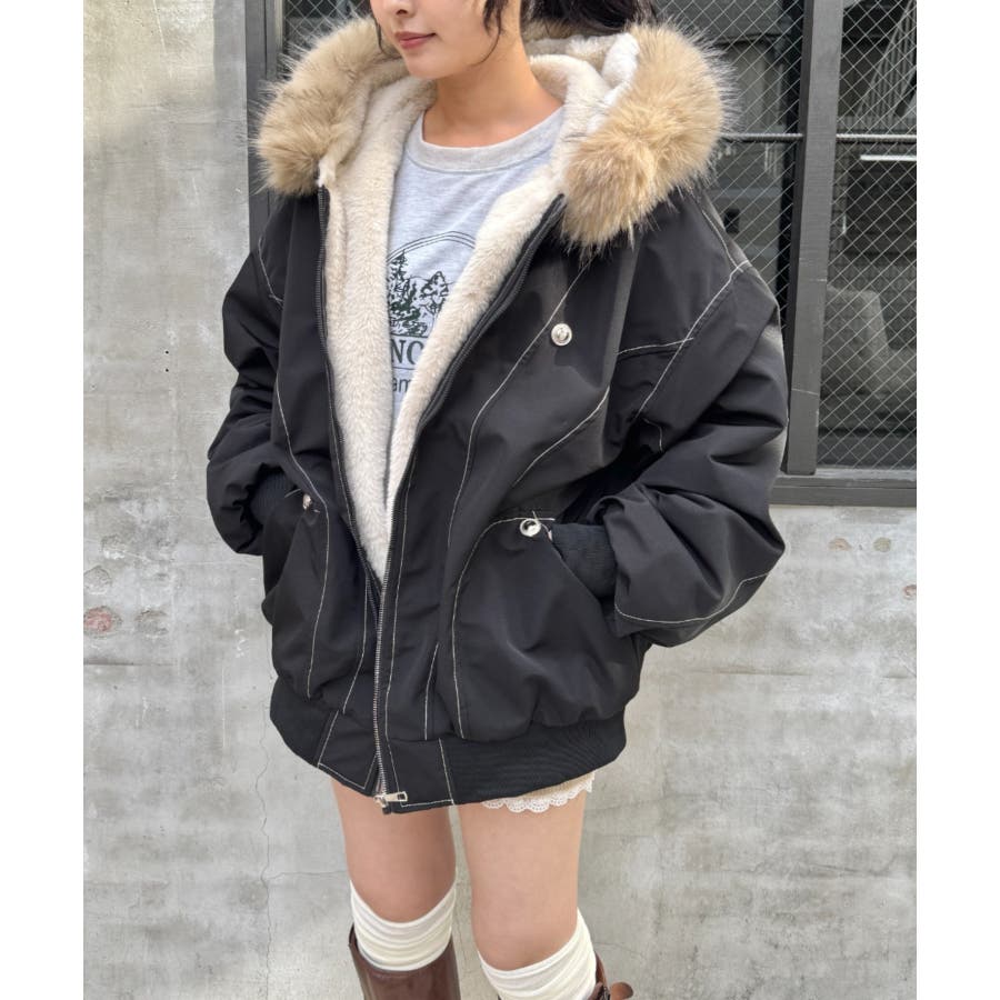 【取り外し可能】ファーフードステッチブルゾン