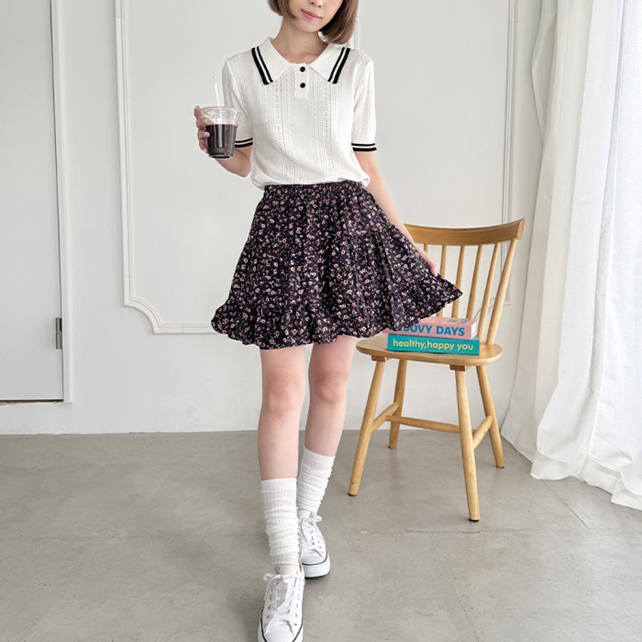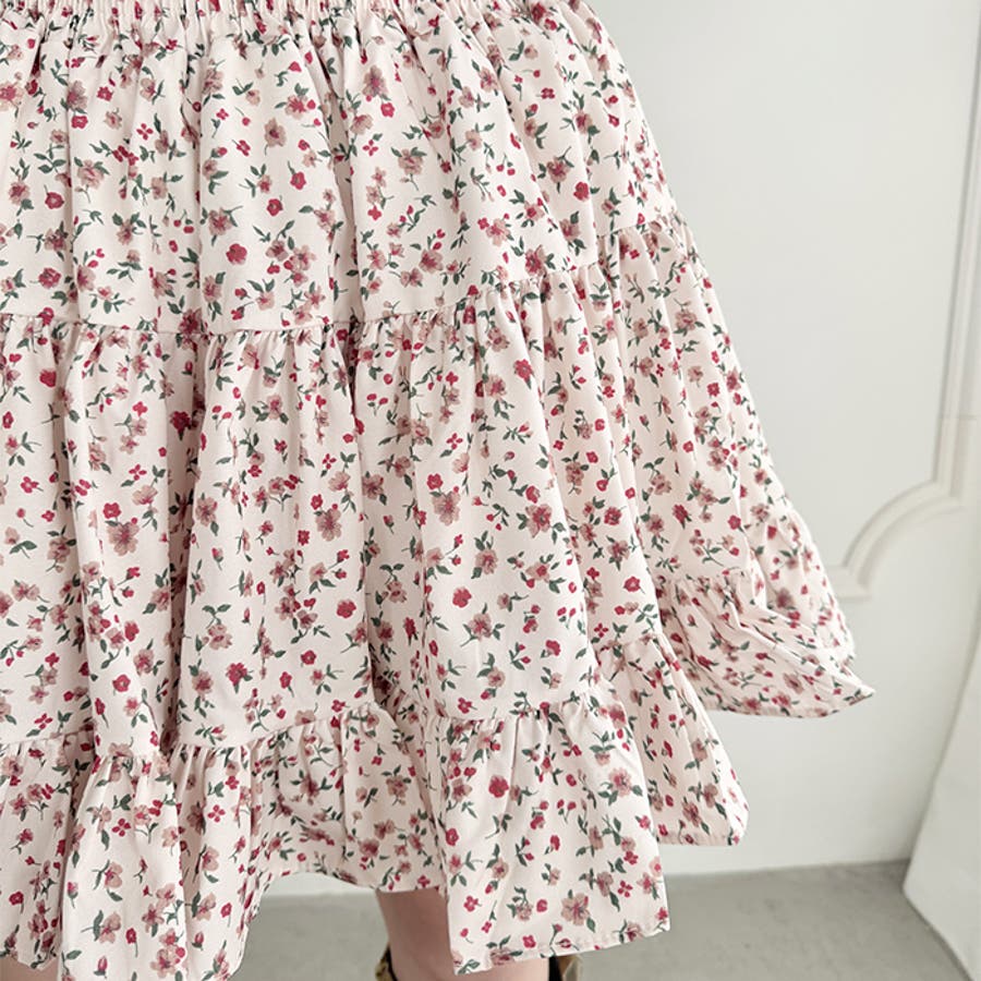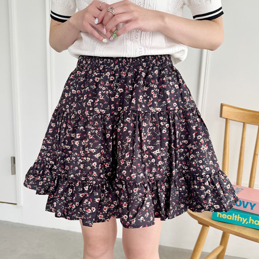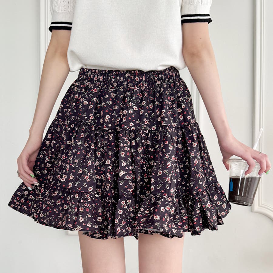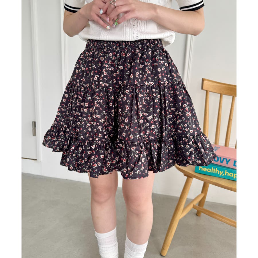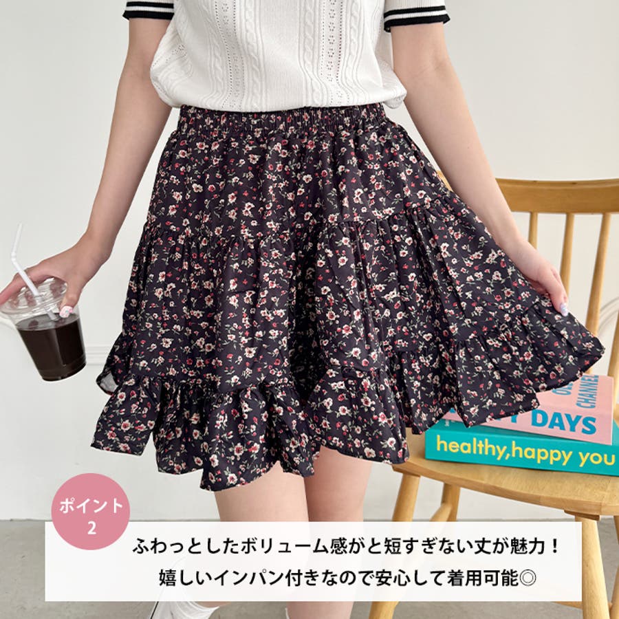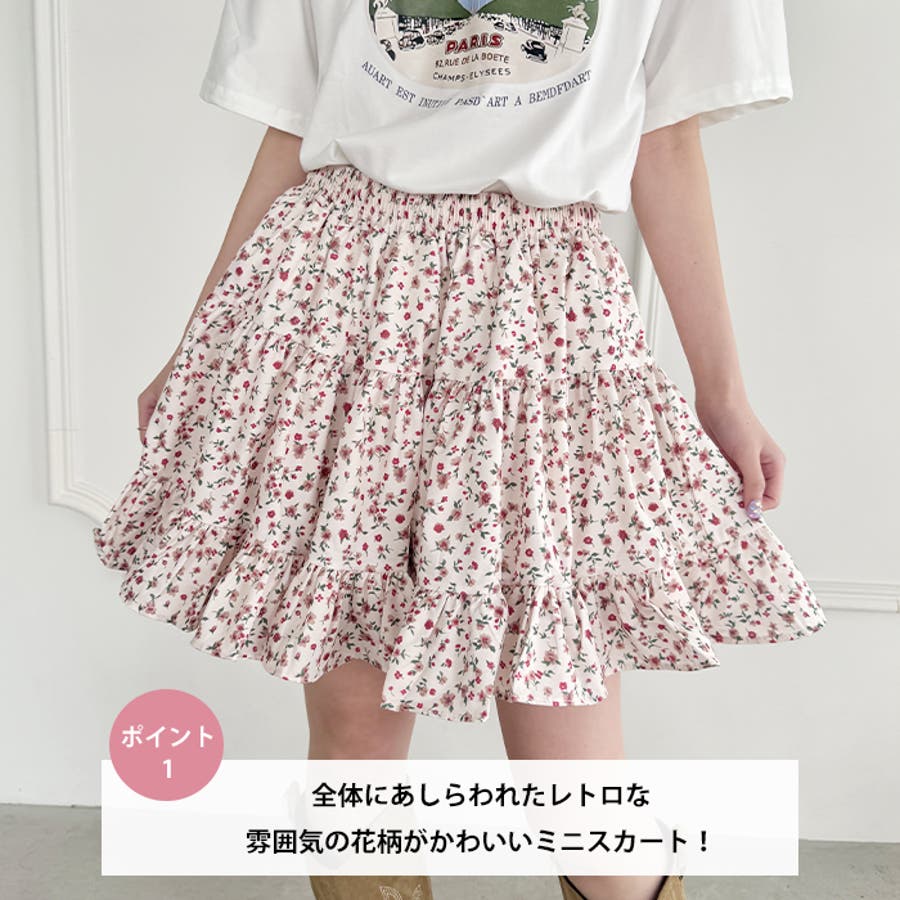 ・全体にあしらわれた花柄がレトロな雰囲気のミニスカート