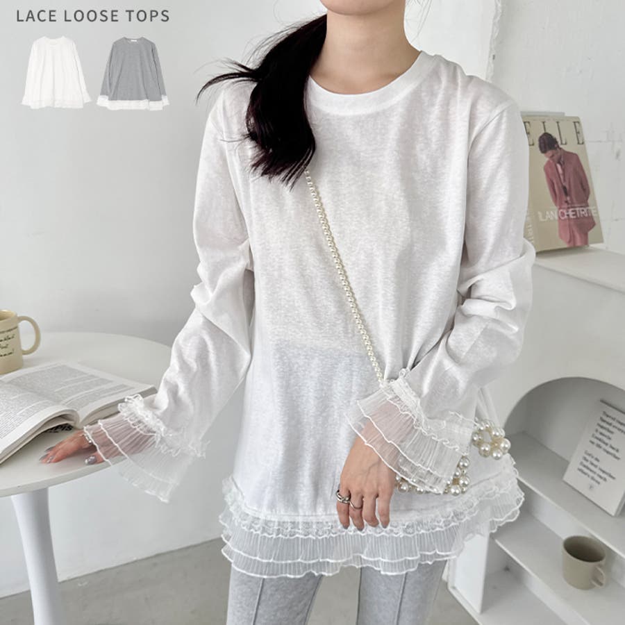 裾レースルーズトップス