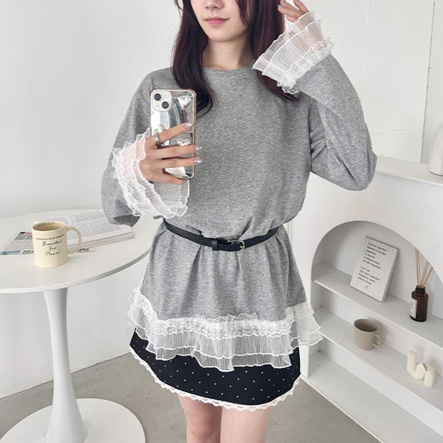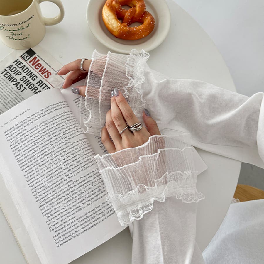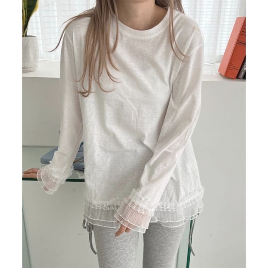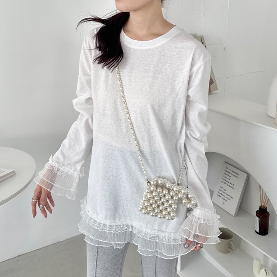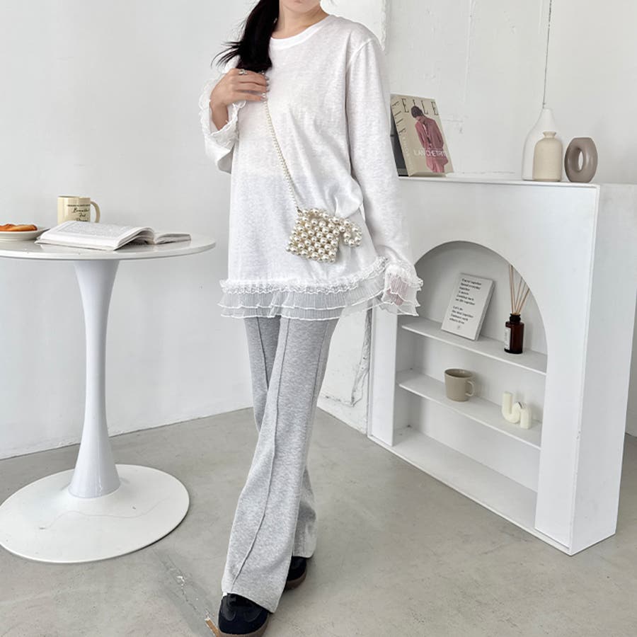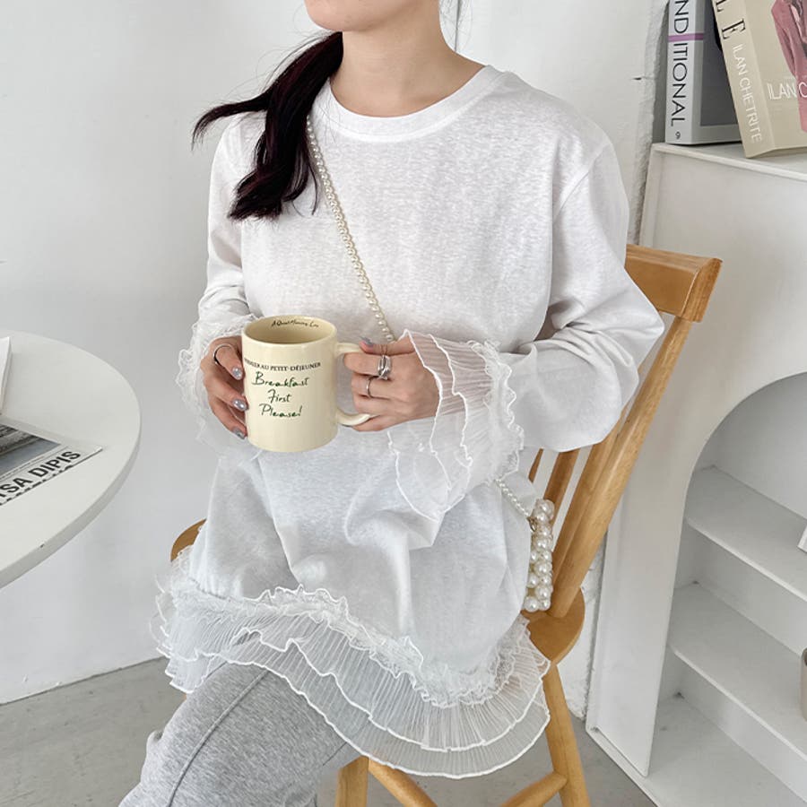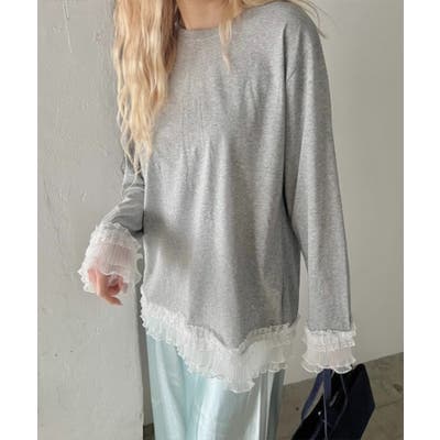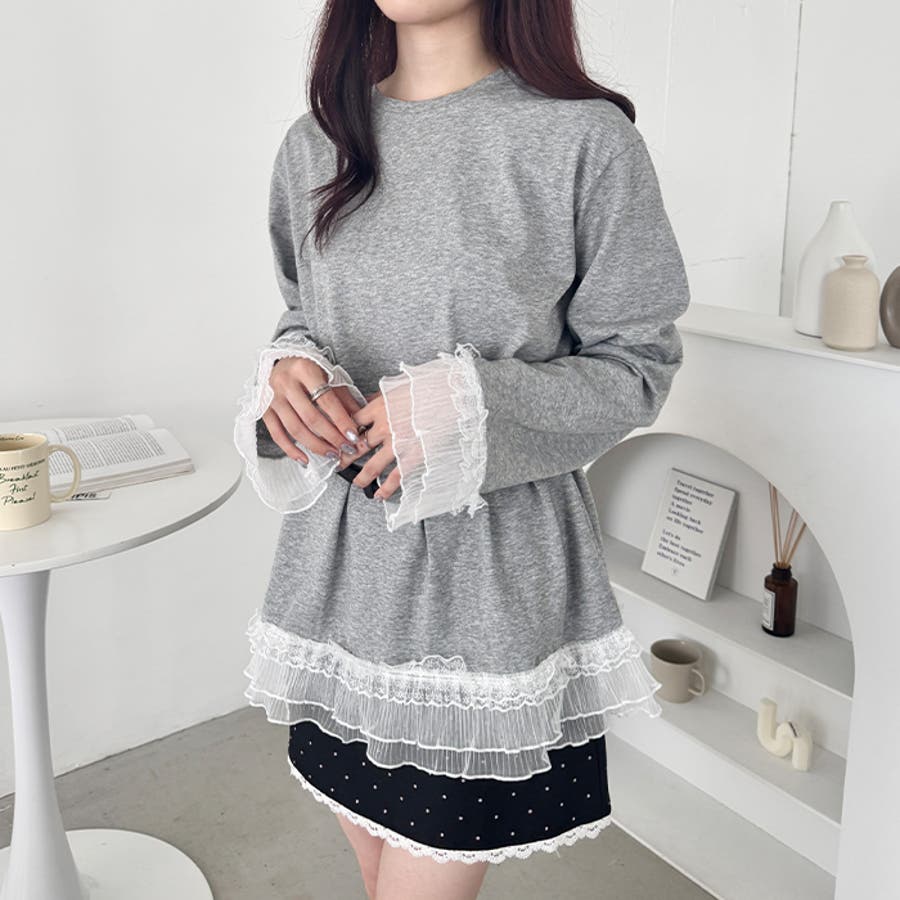 袖と裾のレースがシンプルなロンTを格上げしてくれる♡