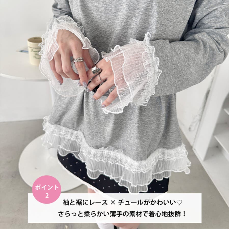 ・袖と裾にレース×チュールがあしらわれた主役級トップス