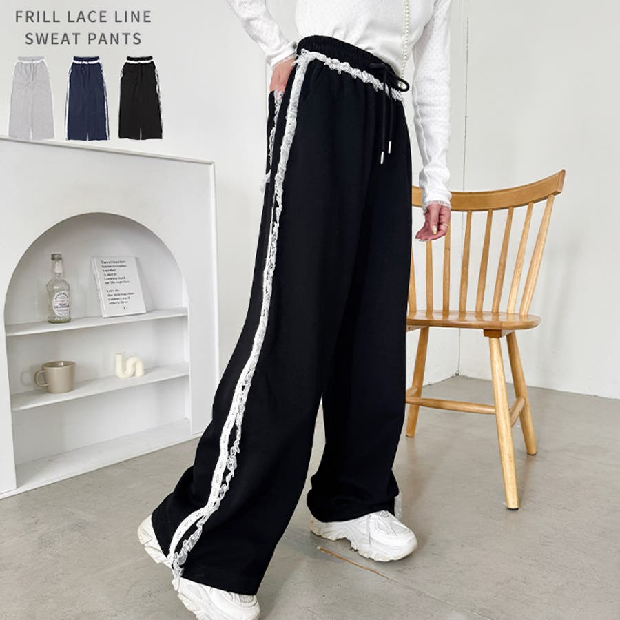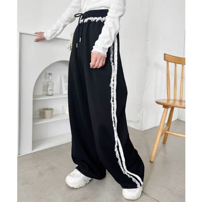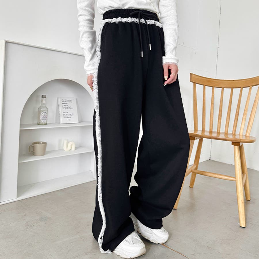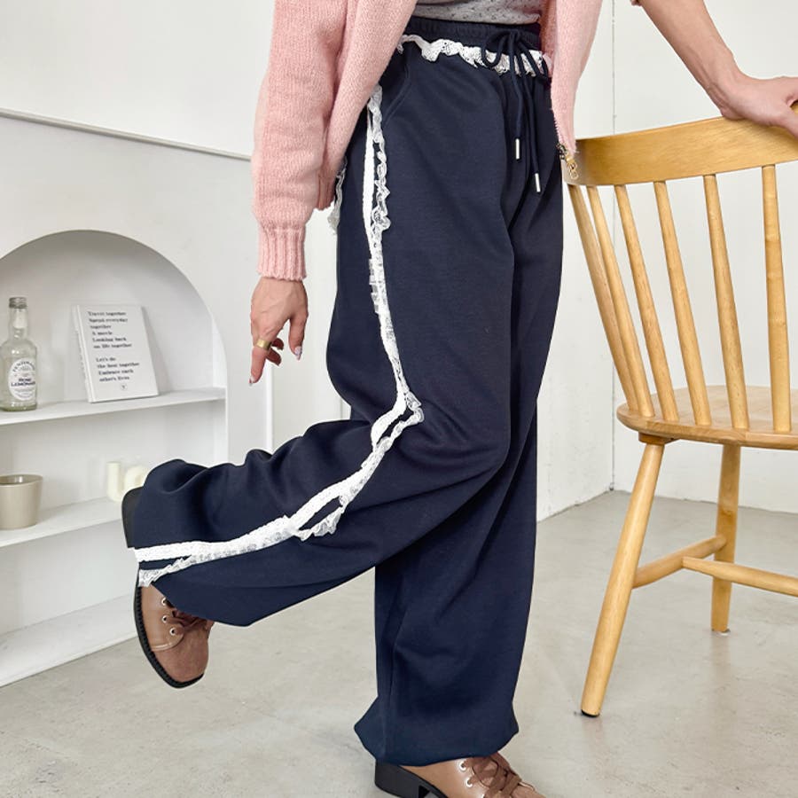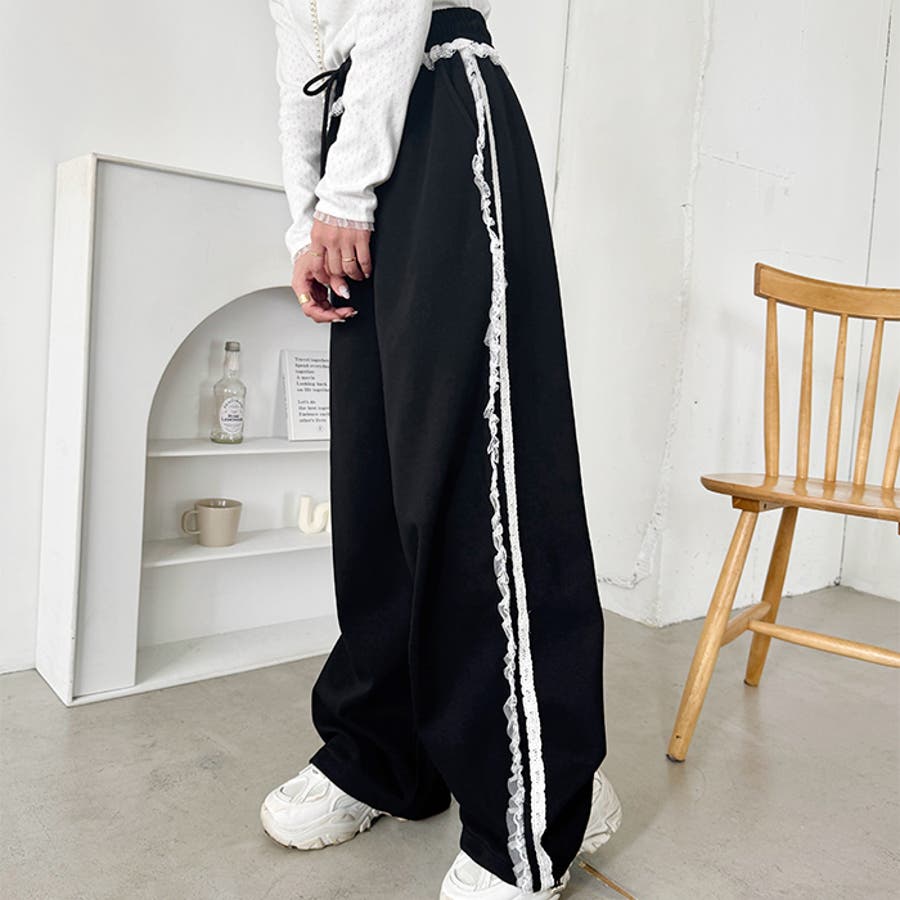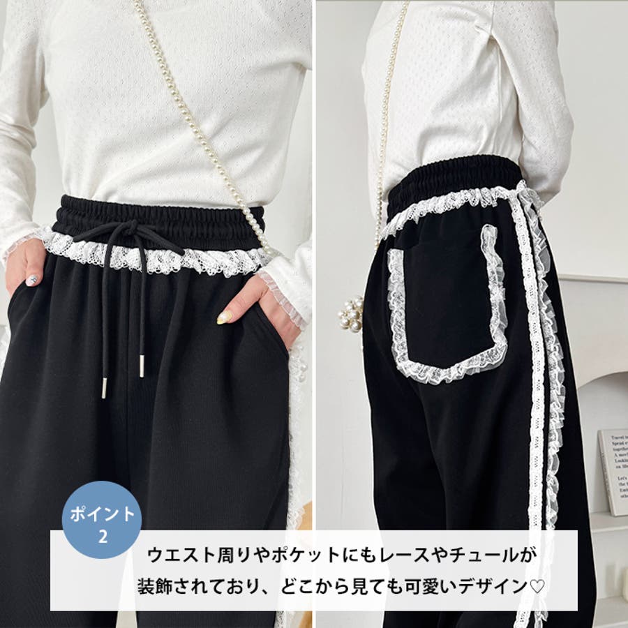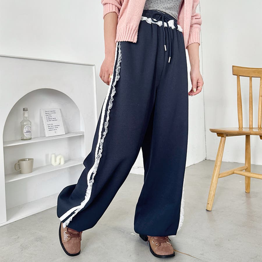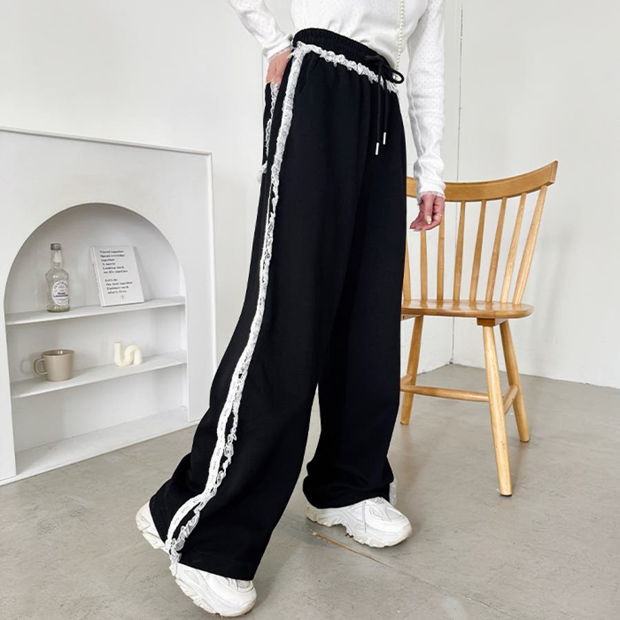 ・トラックパンツなが、チュールやレースのサイドラインになっており、ガーリーにも着こなせるアイテムです。