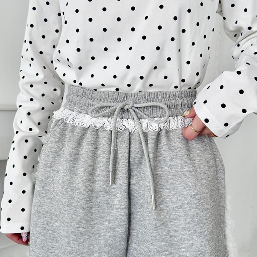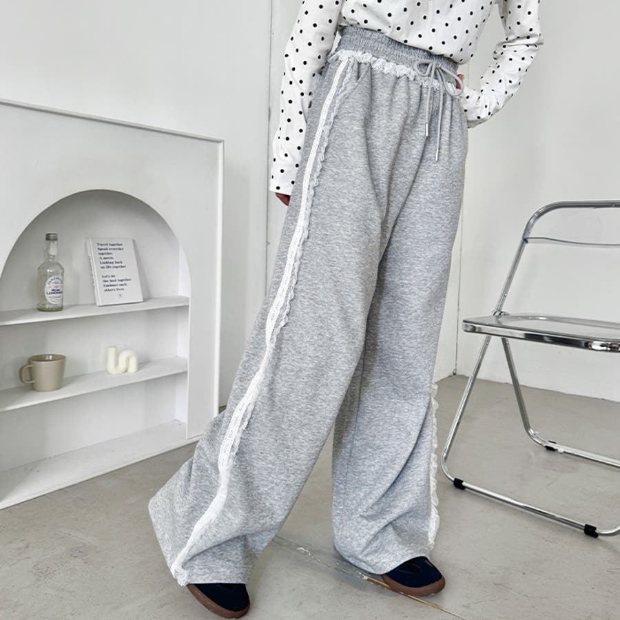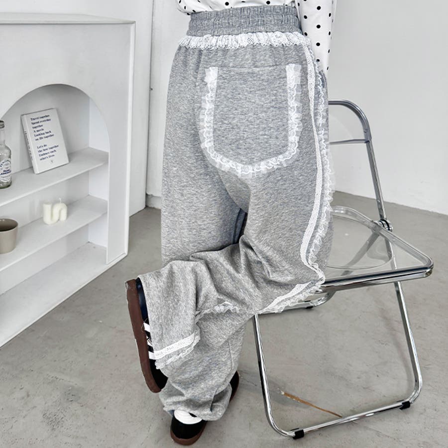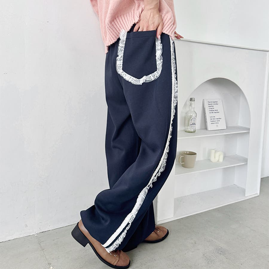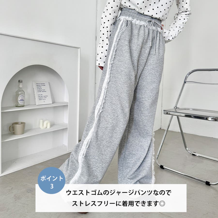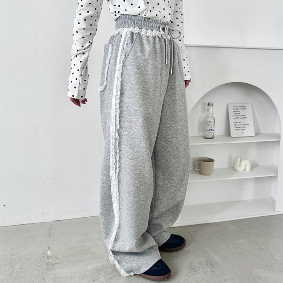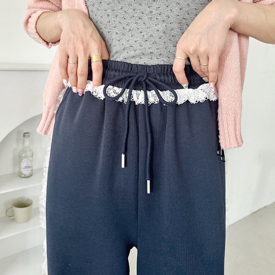 ・トラックパンツなが、チュールやレースのサイドラインになっており、ガーリーにも着こなせるアイテムです。