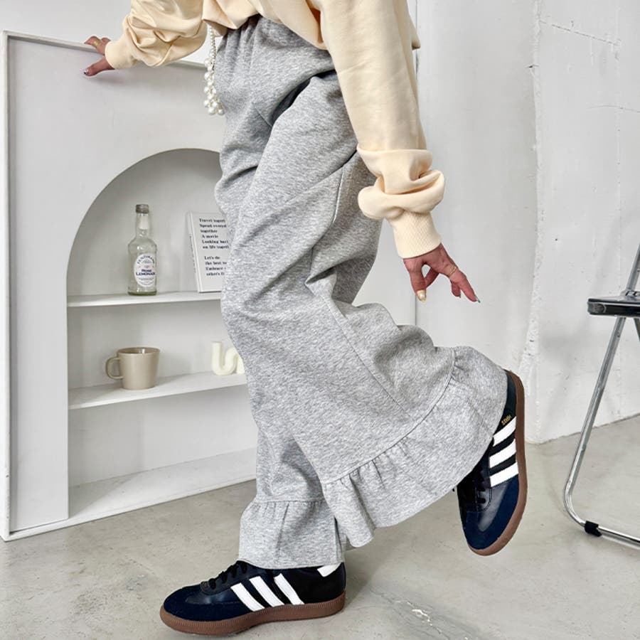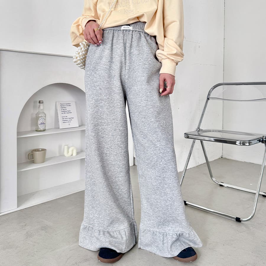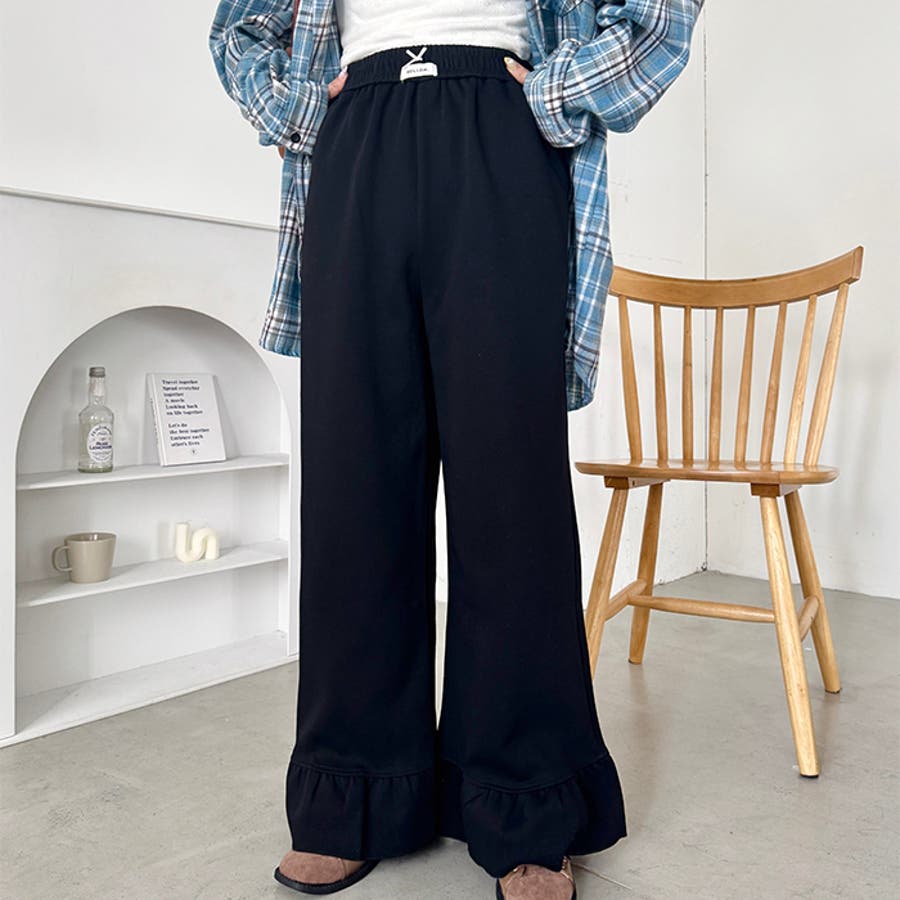 ワンポイントロゴ裾フリルパンツ