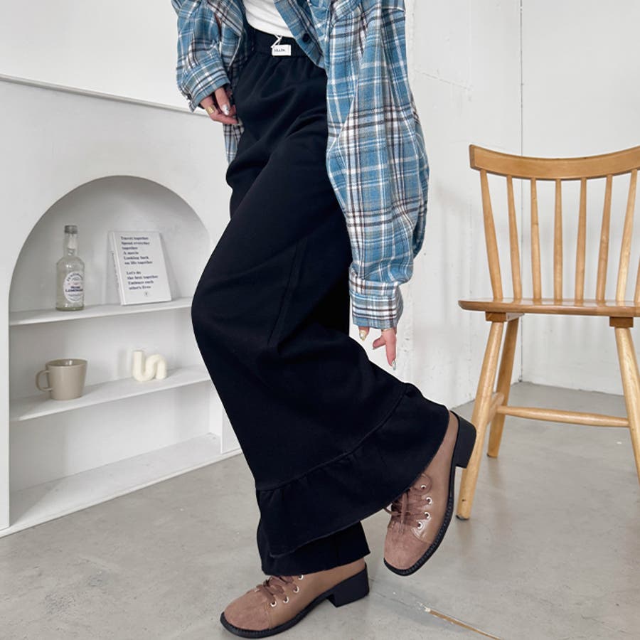 ・フリルヘムデザインがPOINTのワイドパンツ