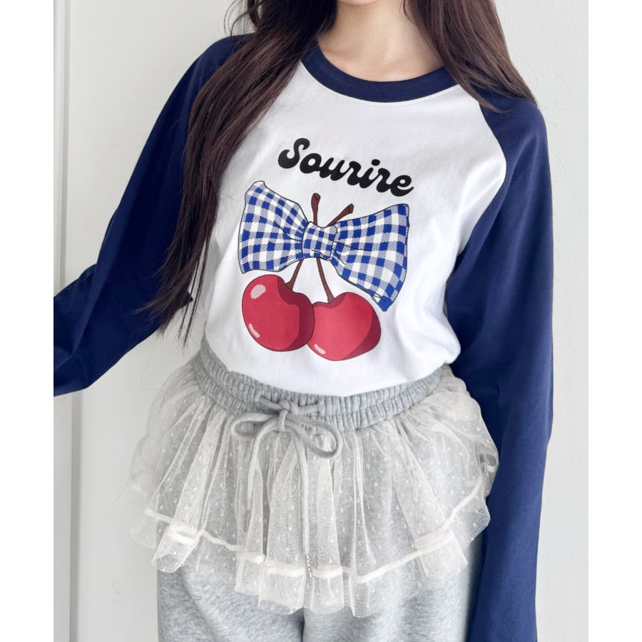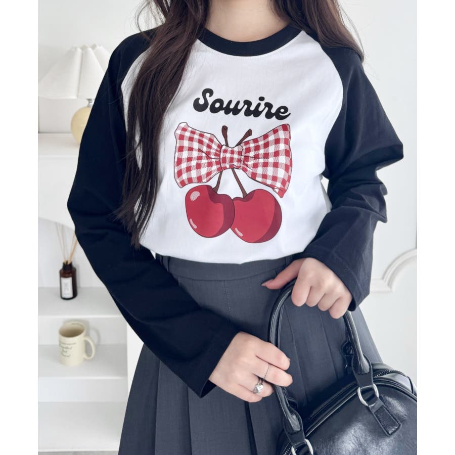 チェリーリボンラグランTシャツ