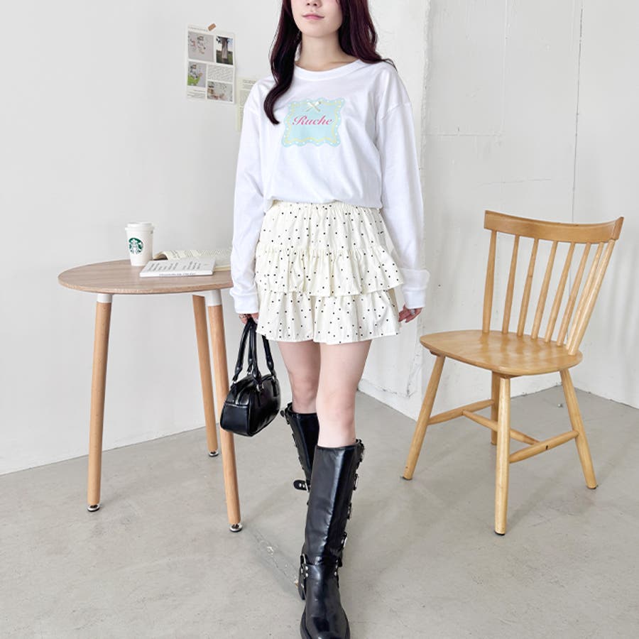 ・ドット×ウェーブラインにロゴ×リボンと可愛い要素たっぷりのプリントTシャツ