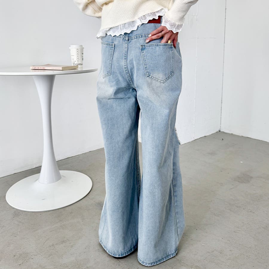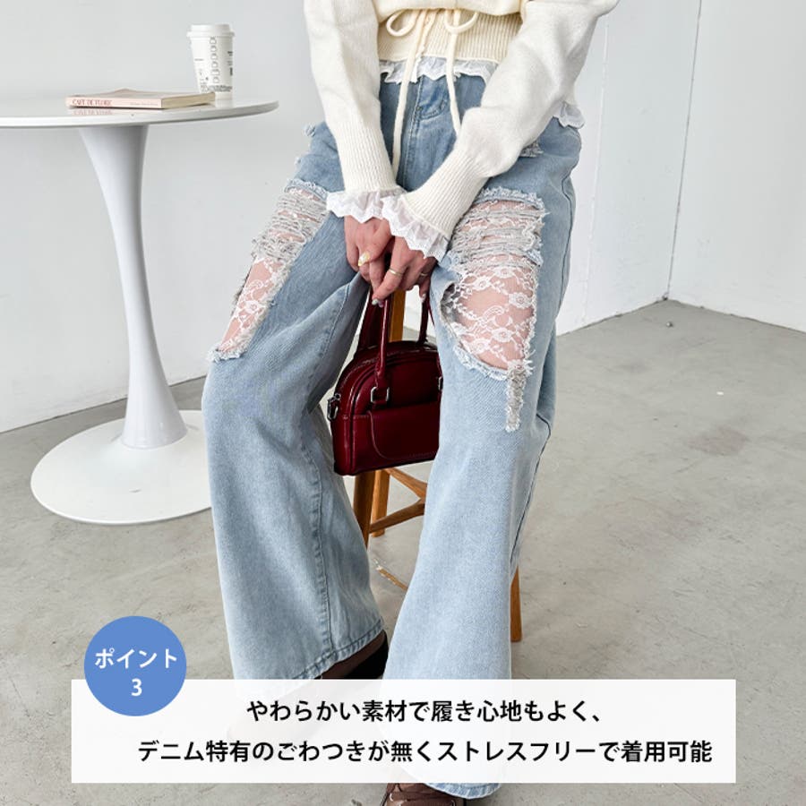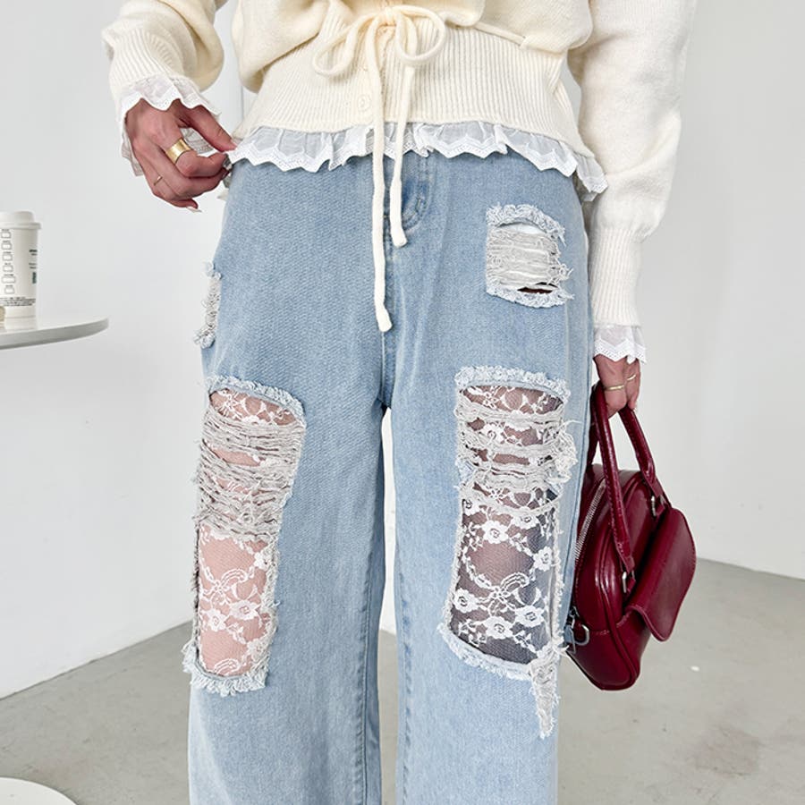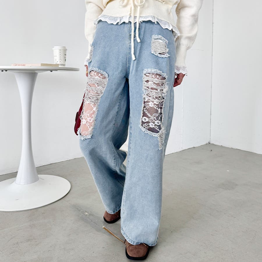 レースダメージデニムパンツ