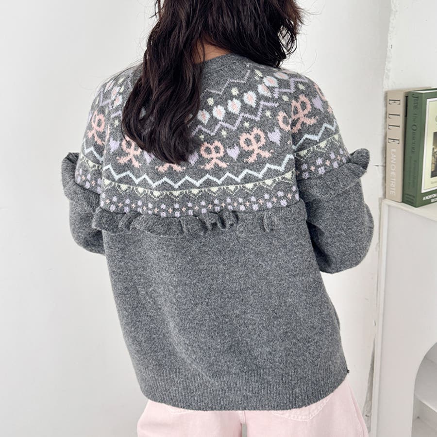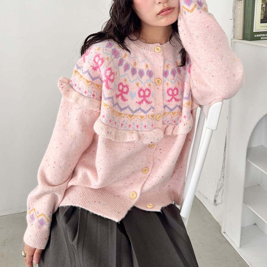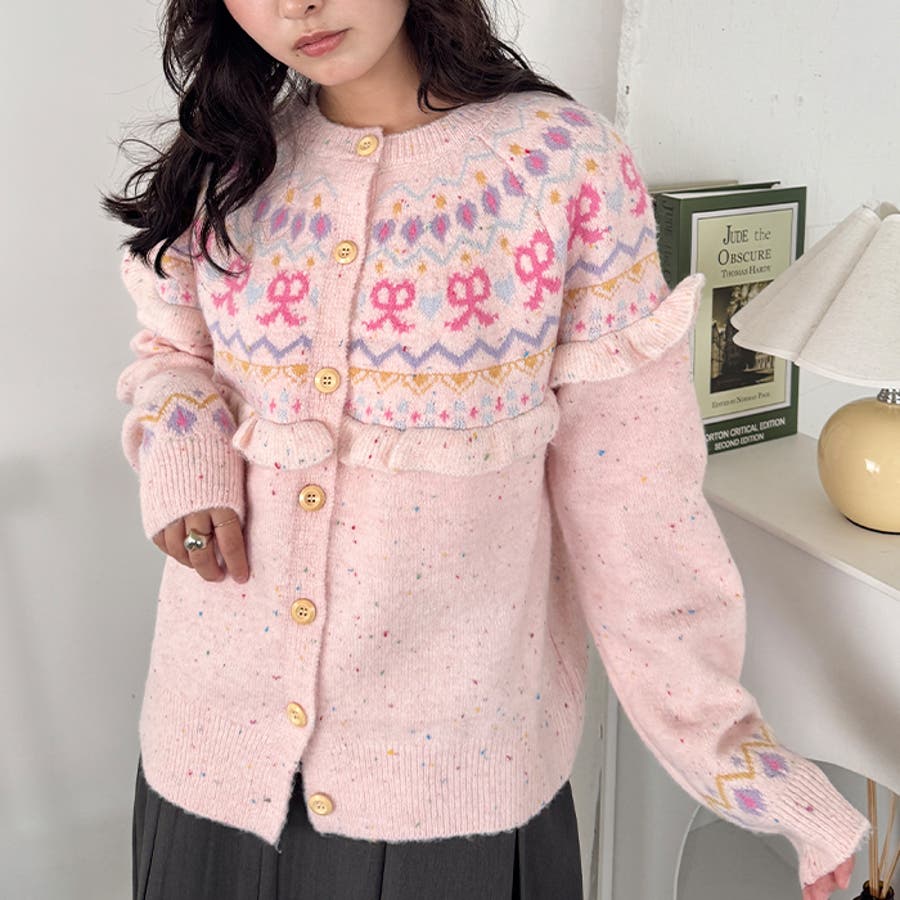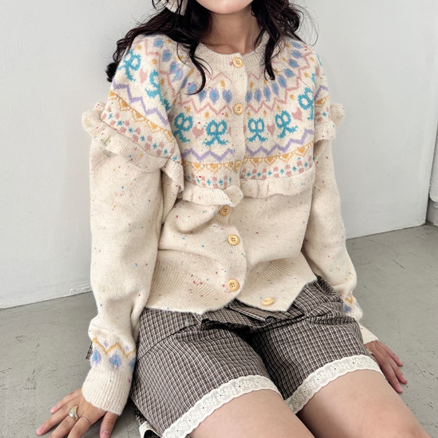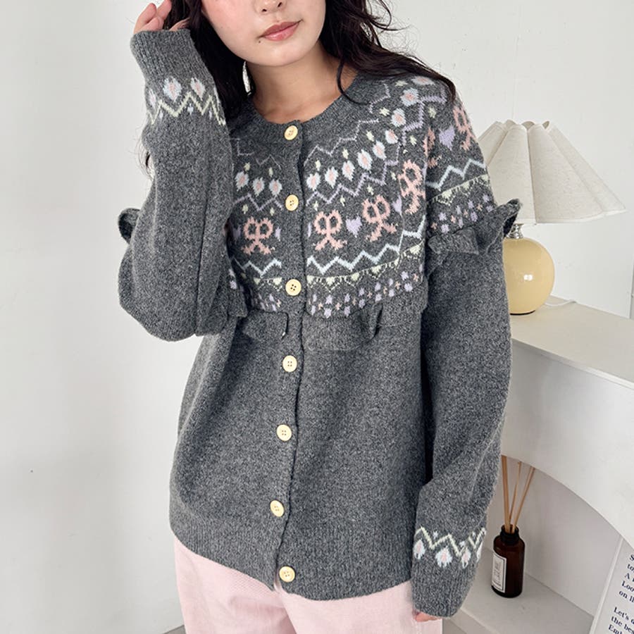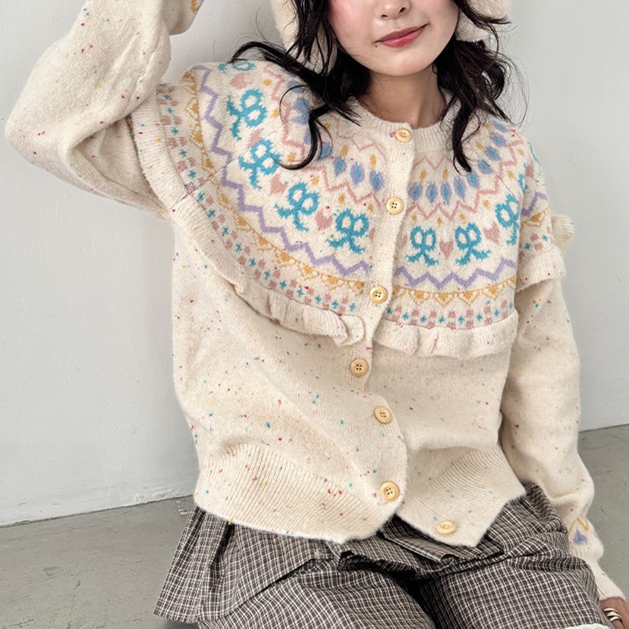 ・冬の定番のノルディック柄が目を惹くカーディガン