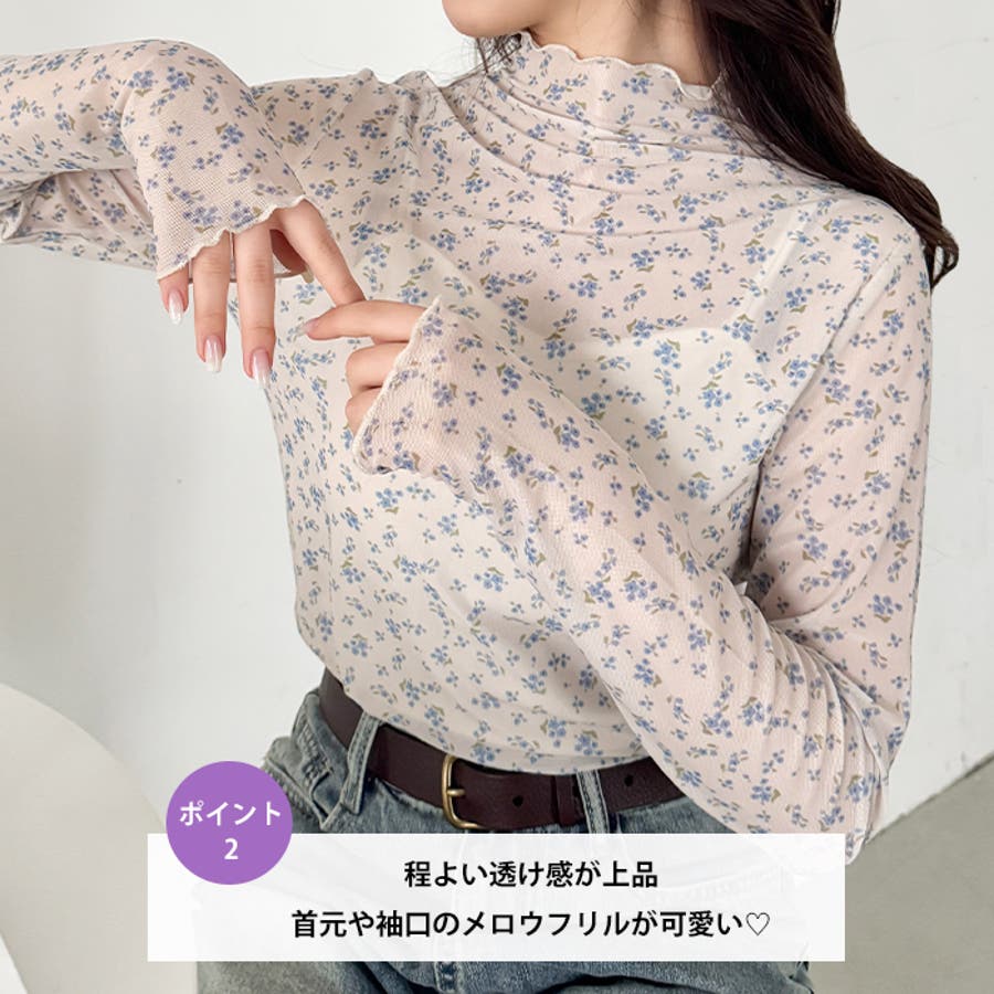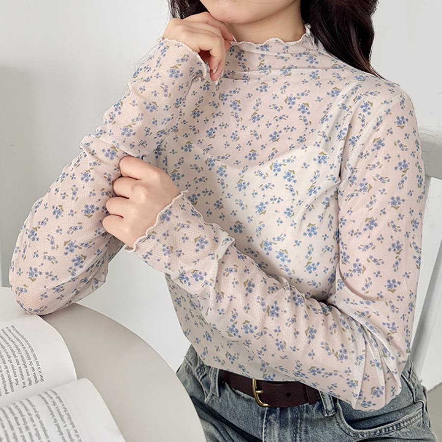 花柄シアーハイネックトップス