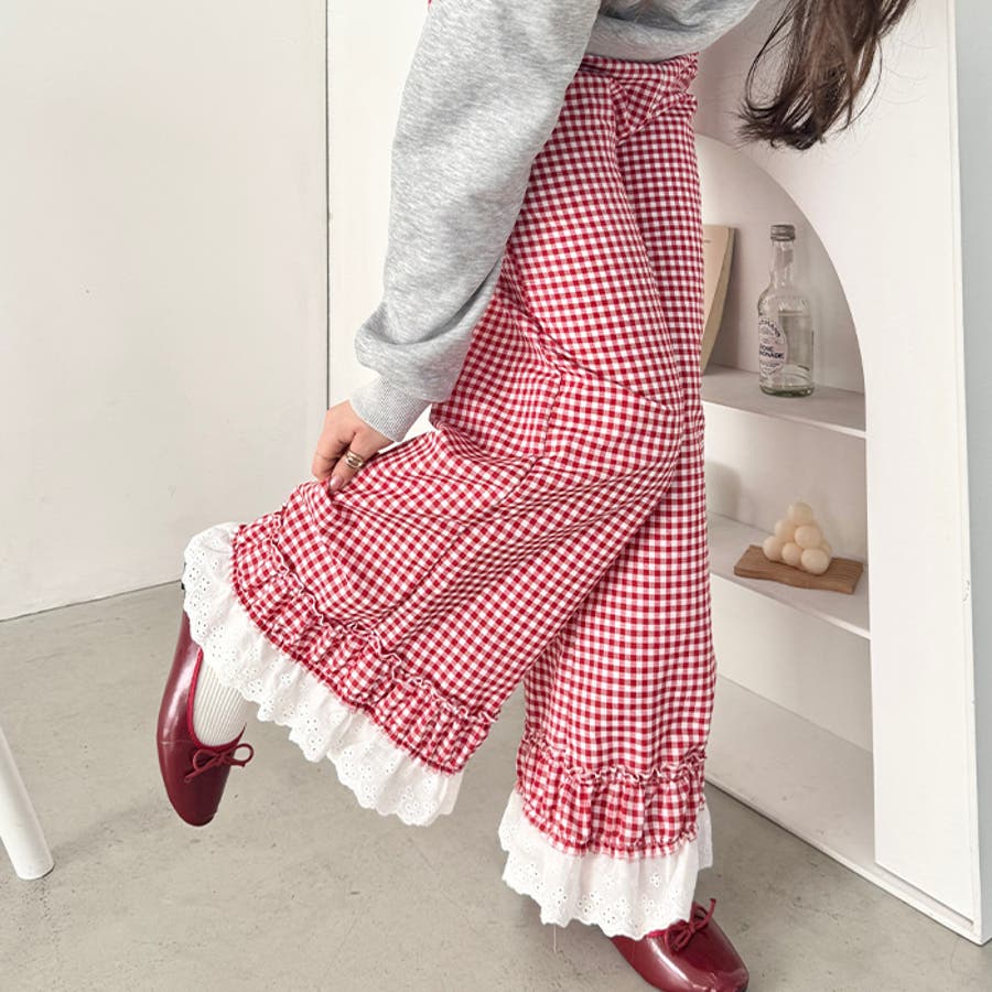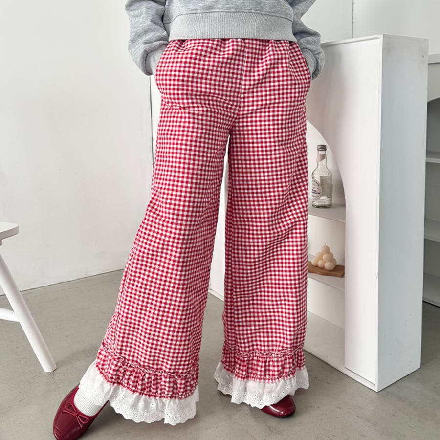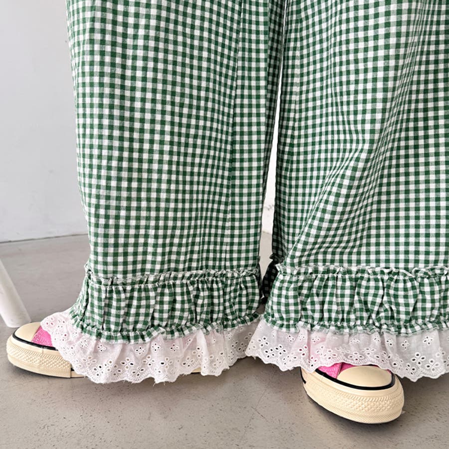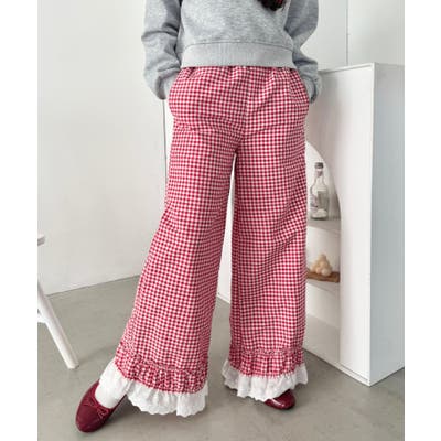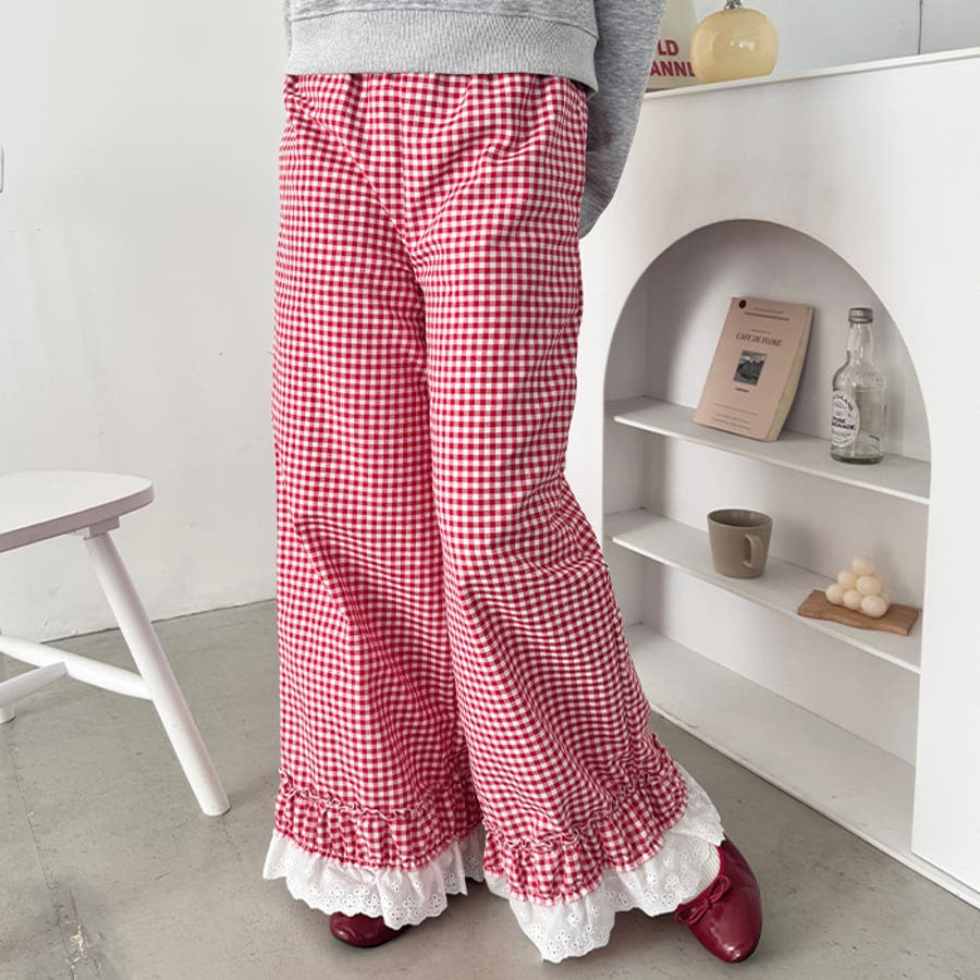 コットンフリルギンガムチェックパンツ