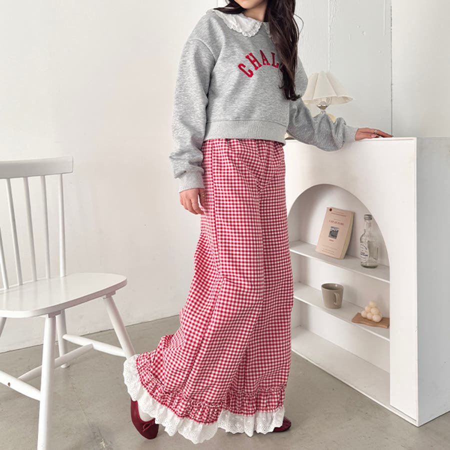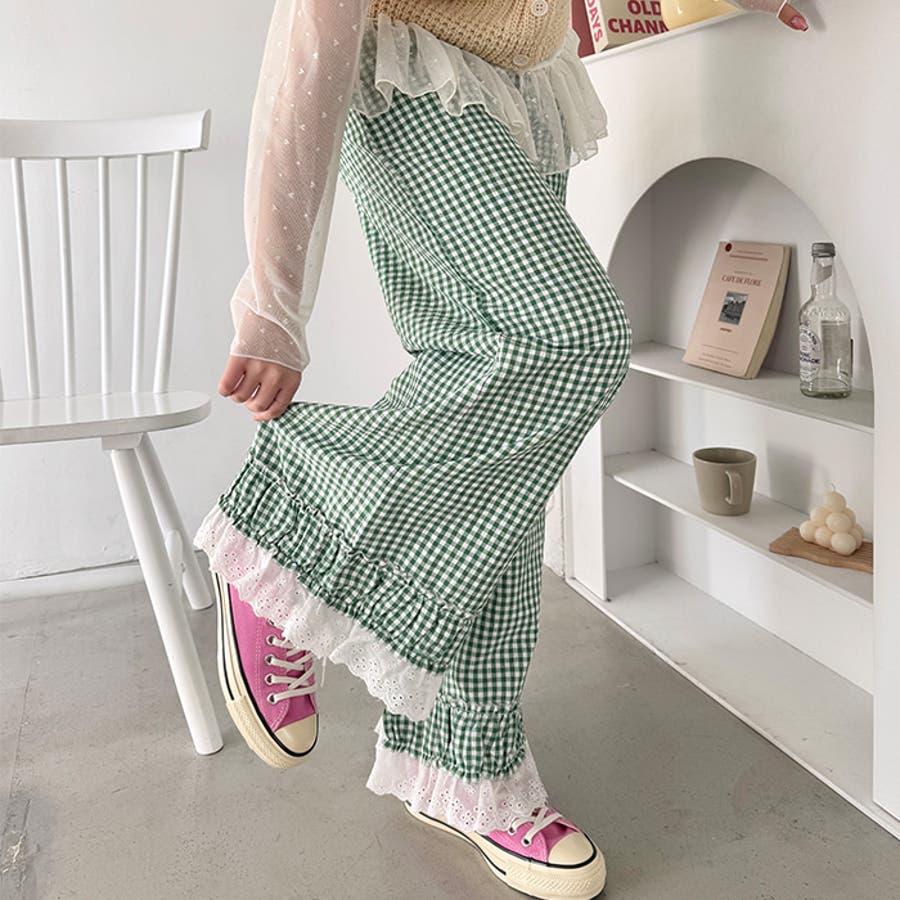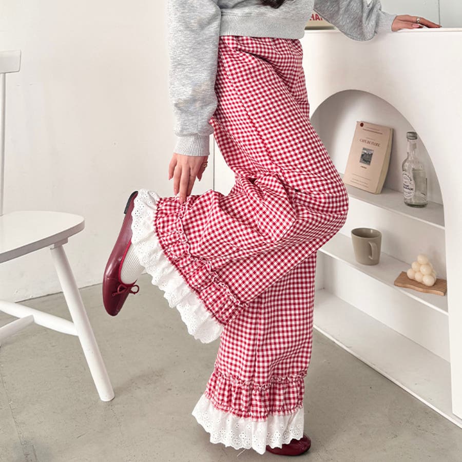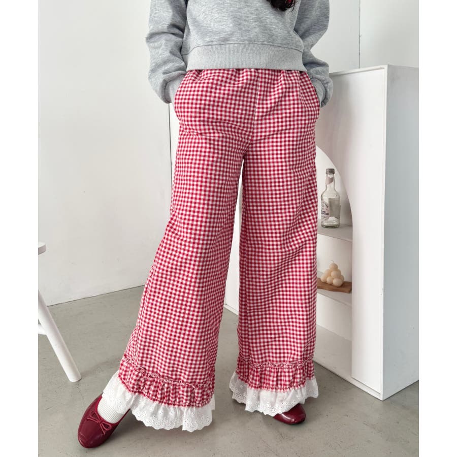 コットンフリルギンガムチェックパンツ