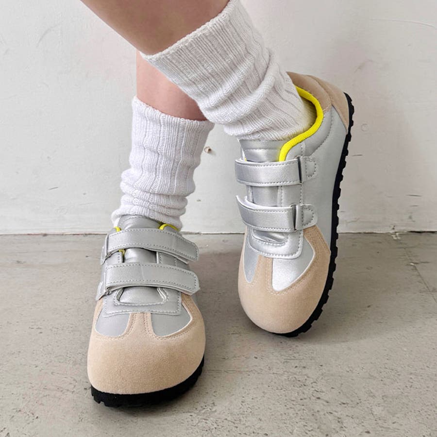 ・どんなコーデにも合わせやすいホワイトと、履いてるだけでコーデのPOINTになるシルバーの2色展開♪