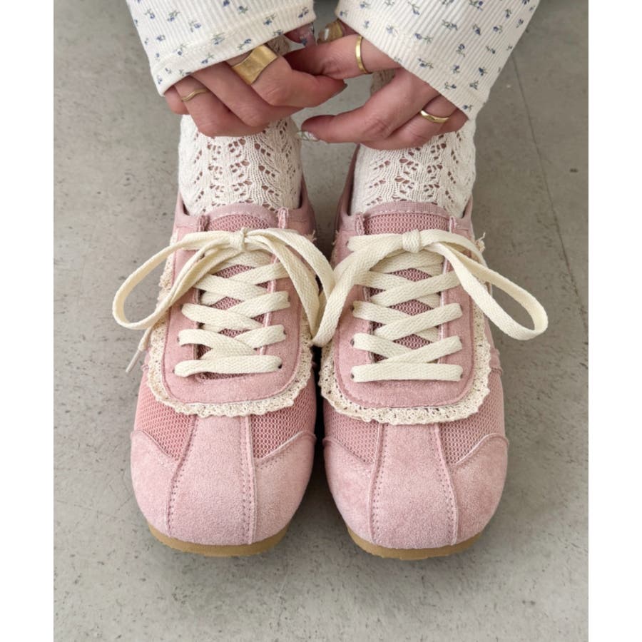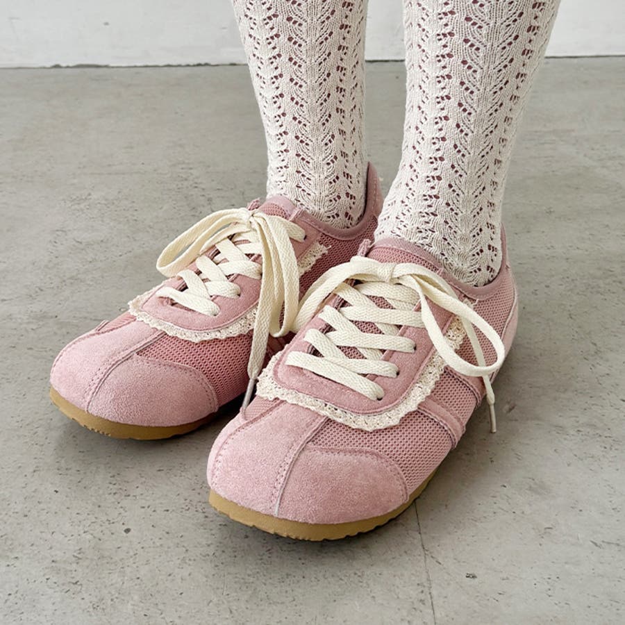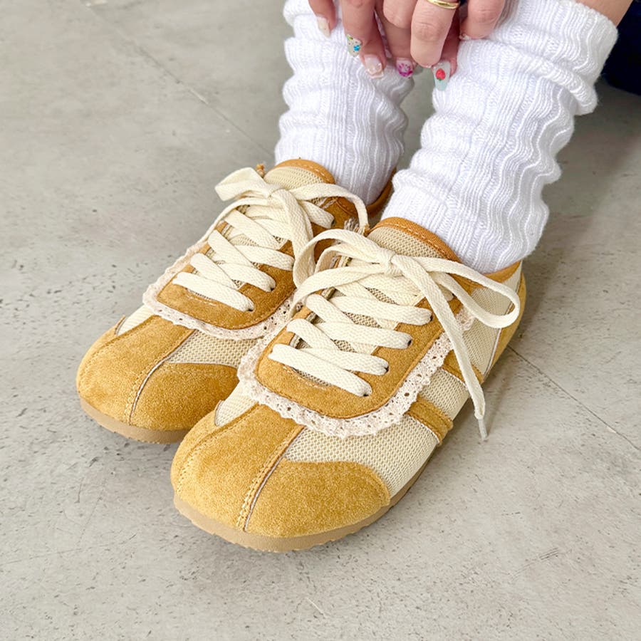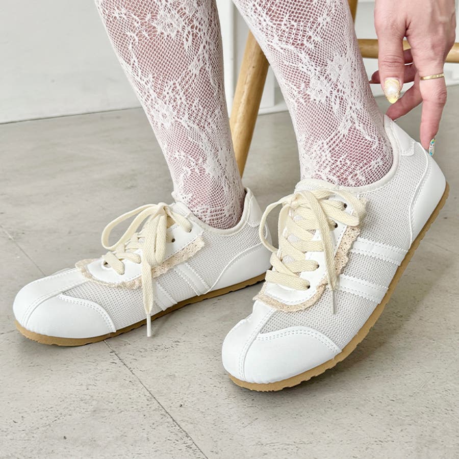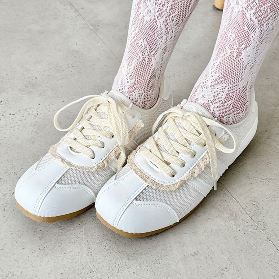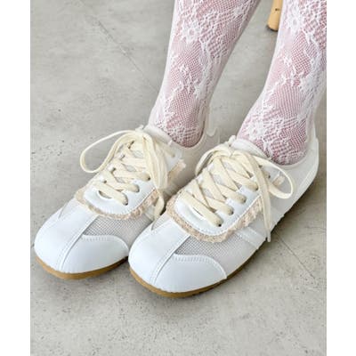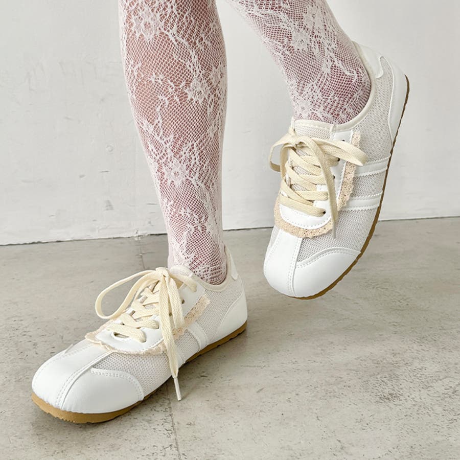 ・サイドラインデザインがスポーティーな印象を醸し出しつつ、レースが女の子らしい雰囲気に仕上げてくれる