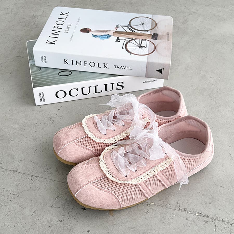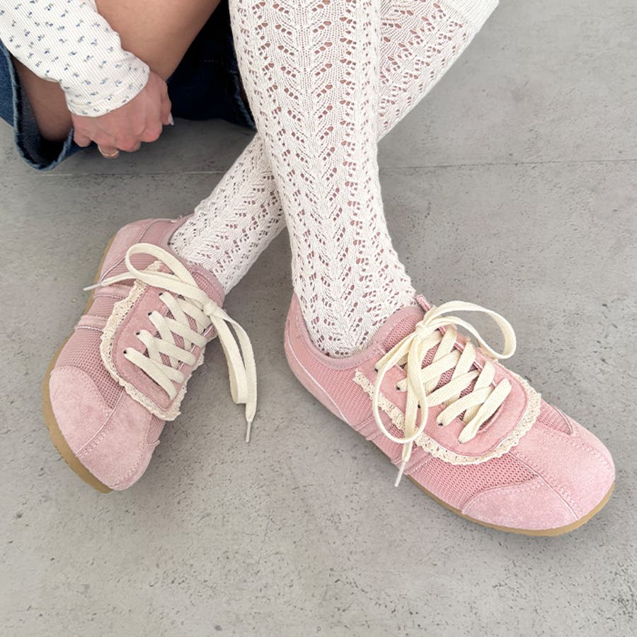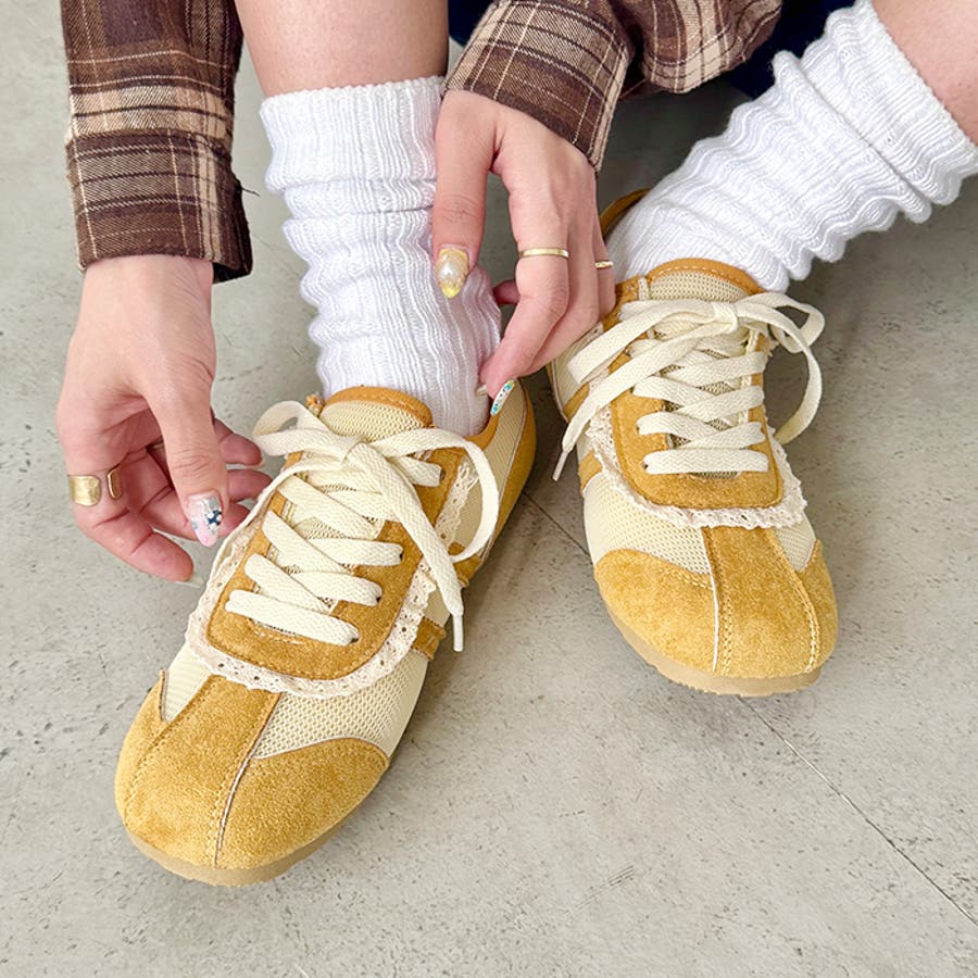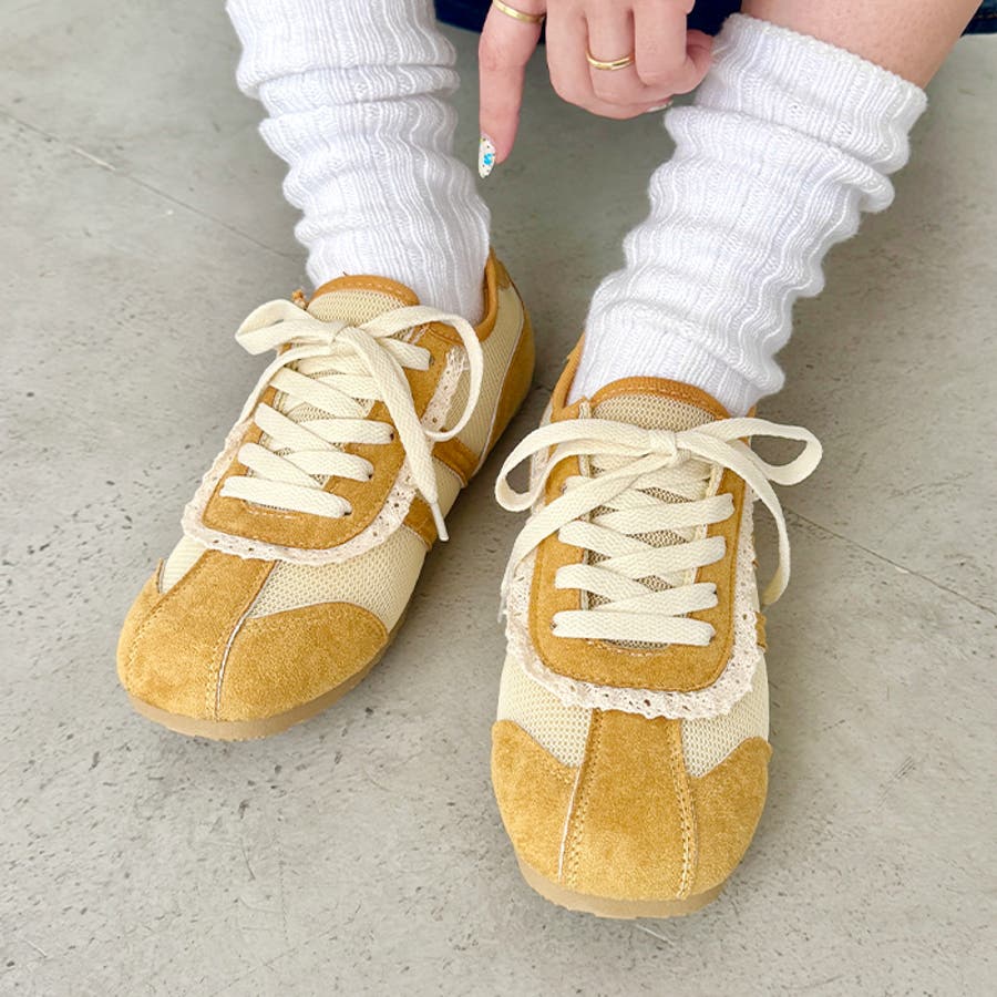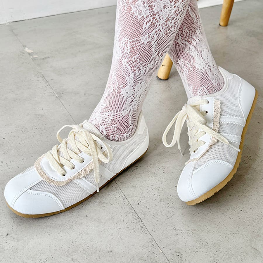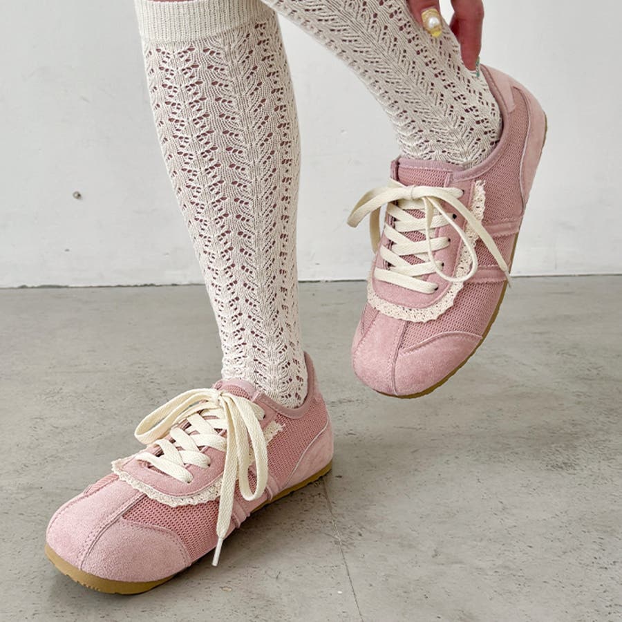 ・サイドラインデザインがスポーティーな印象を醸し出しつつ、レースが女の子らしい雰囲気に仕上げてくれる