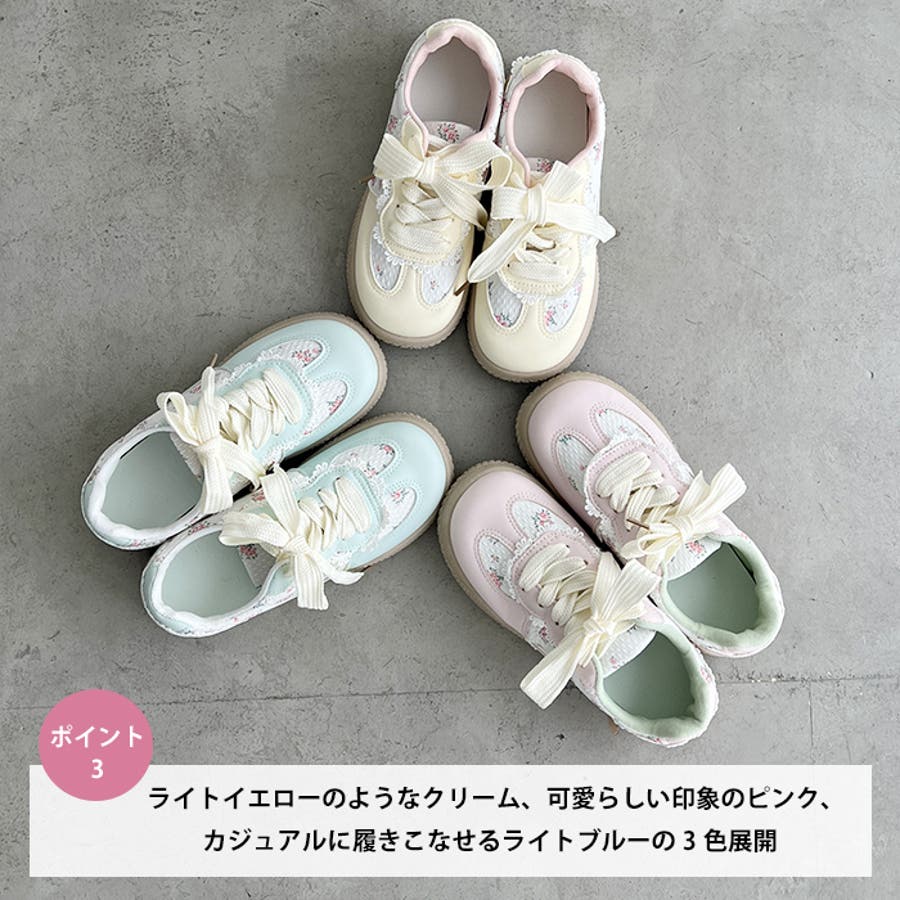 ・ライトイエローのようなクリーム、可愛らしい印象のピンク、カジュアルに履きこなせるライトブルーの3色展開