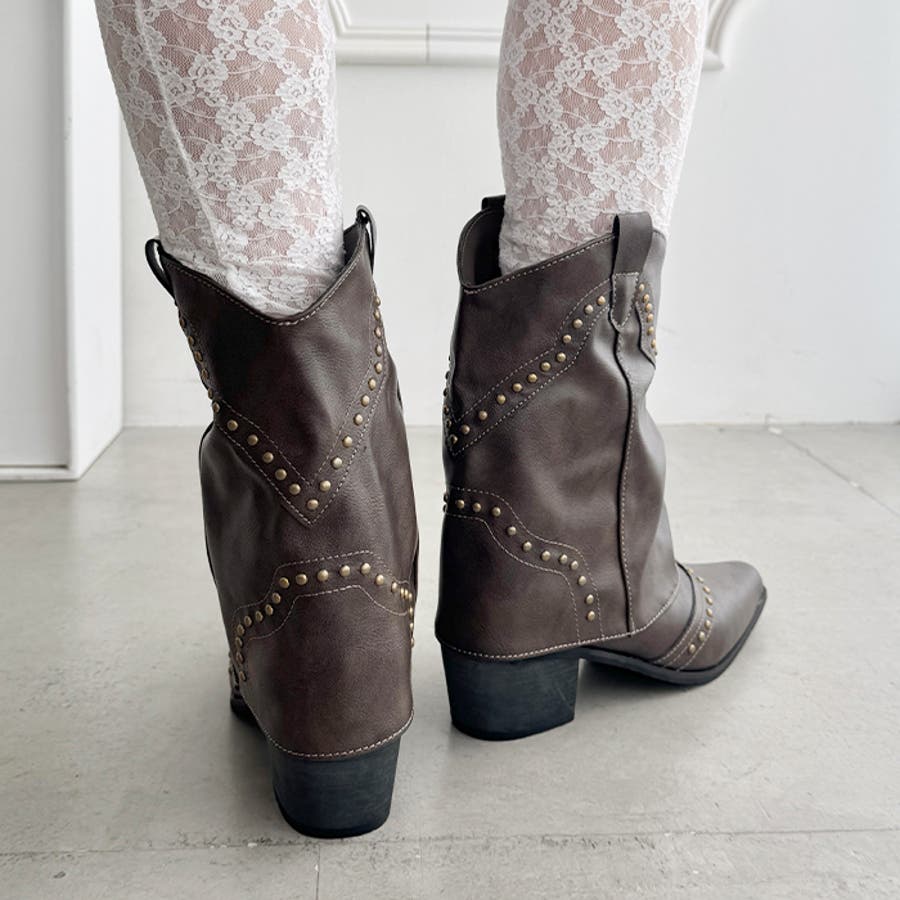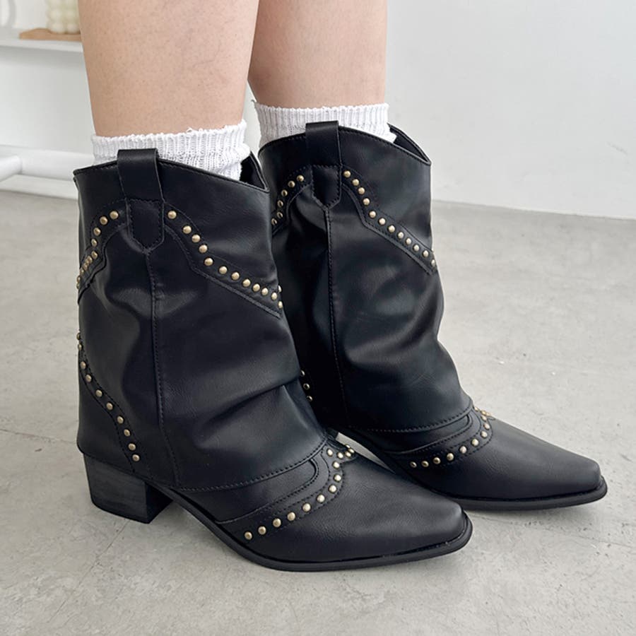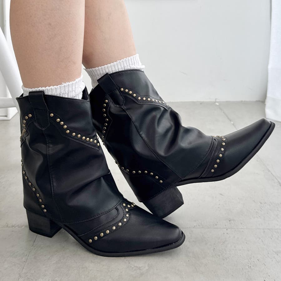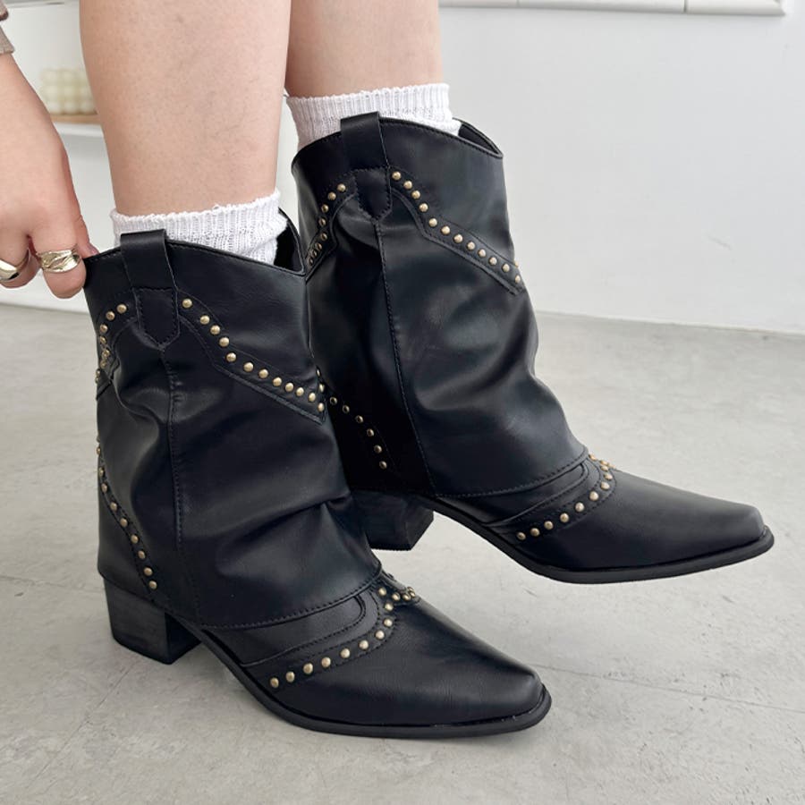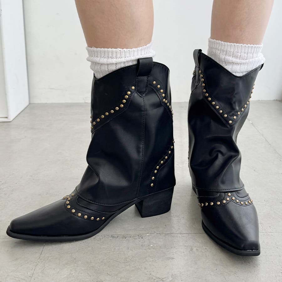 ・存在感のあるライン上のスタッズデザインが目を惹くカバーブーツ